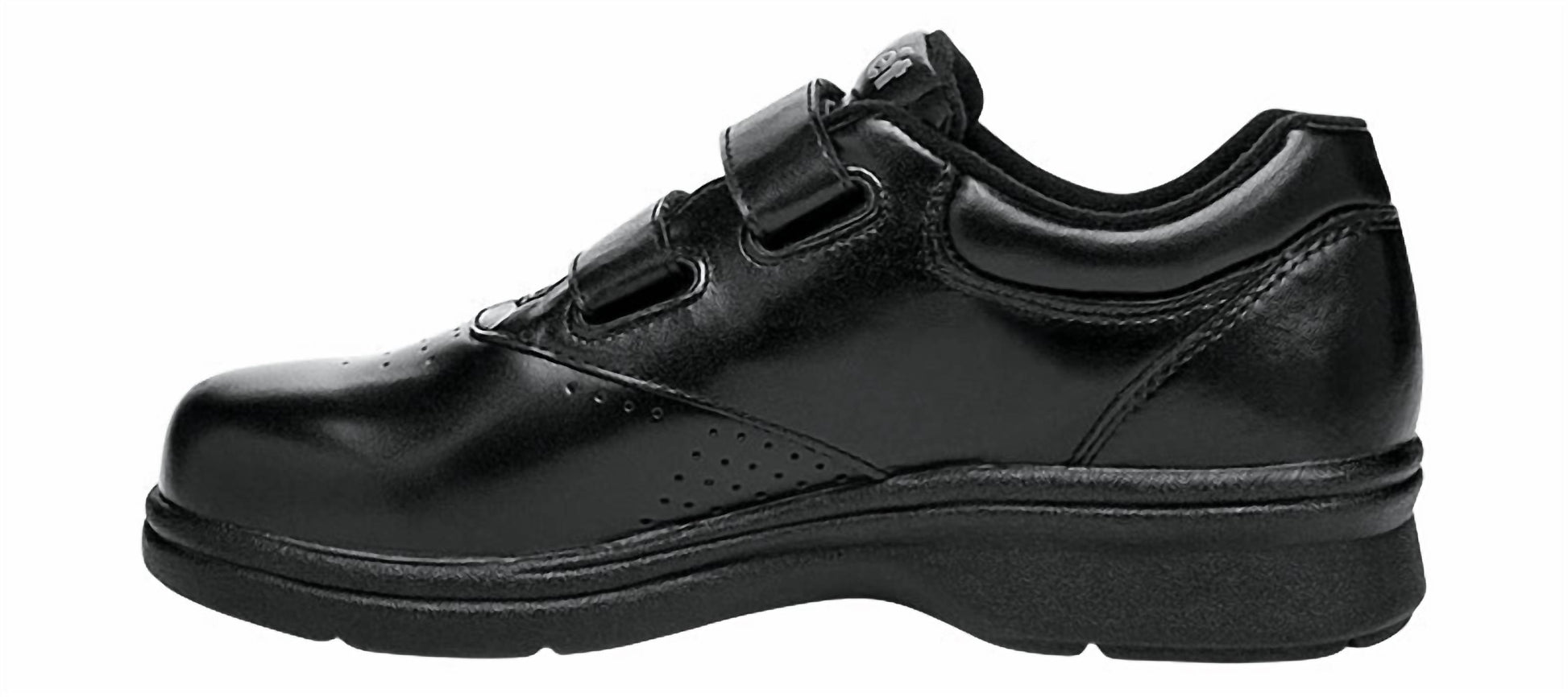 When fashion and function come together seamlessly. Introducing the Women's Vista Strap Shoe by Propet, a stylish choice for streetwear-inspired spring looks. Featuring a sleek black design with a round toe and chunky low heel measuring between 1 1/4" to 2", these sneakers offer both style and comfort. Ideal for vacation wear, this shoe effortlessly combines practicality with trend-conscious design. Perfect for women seeking a versatile addition to their spring wardrobe.