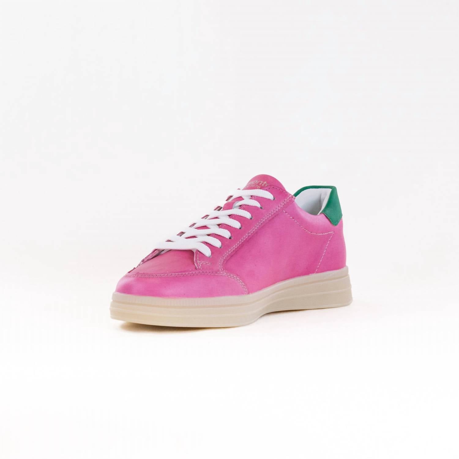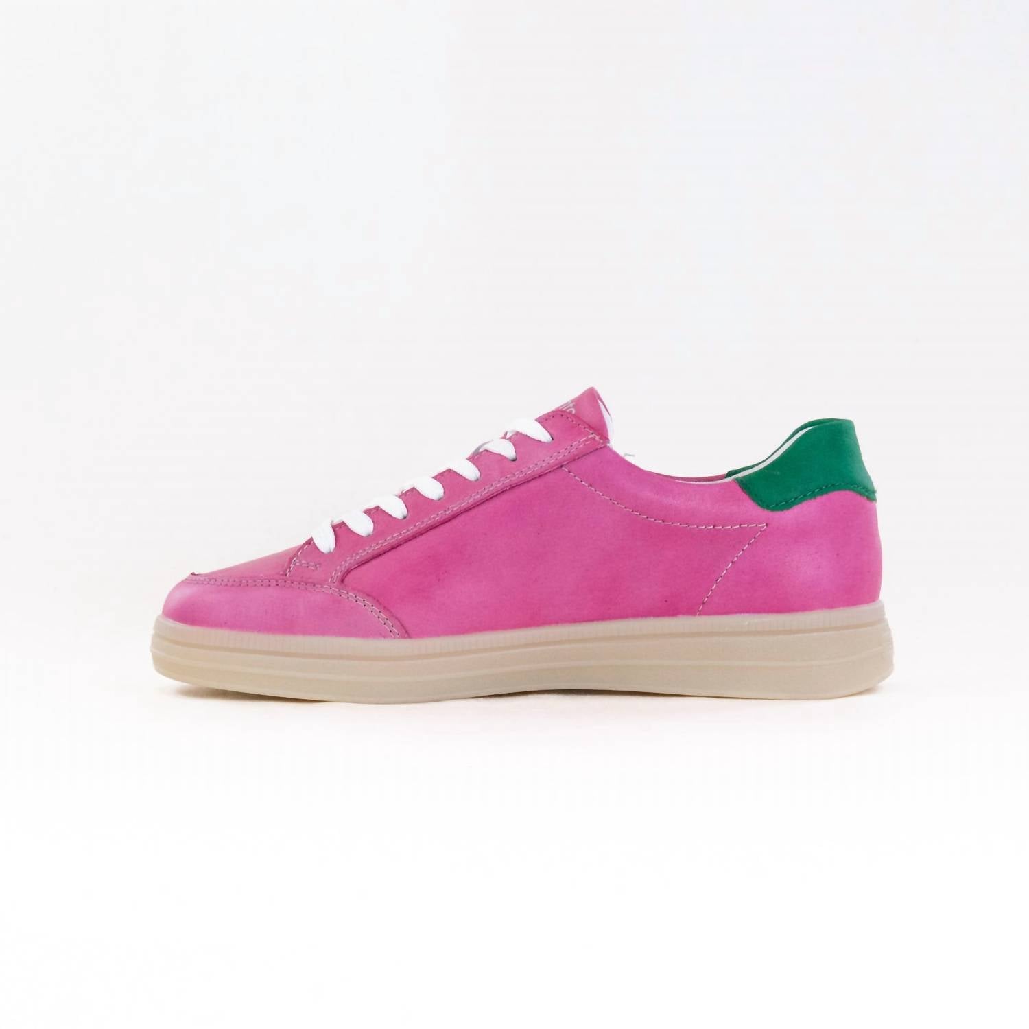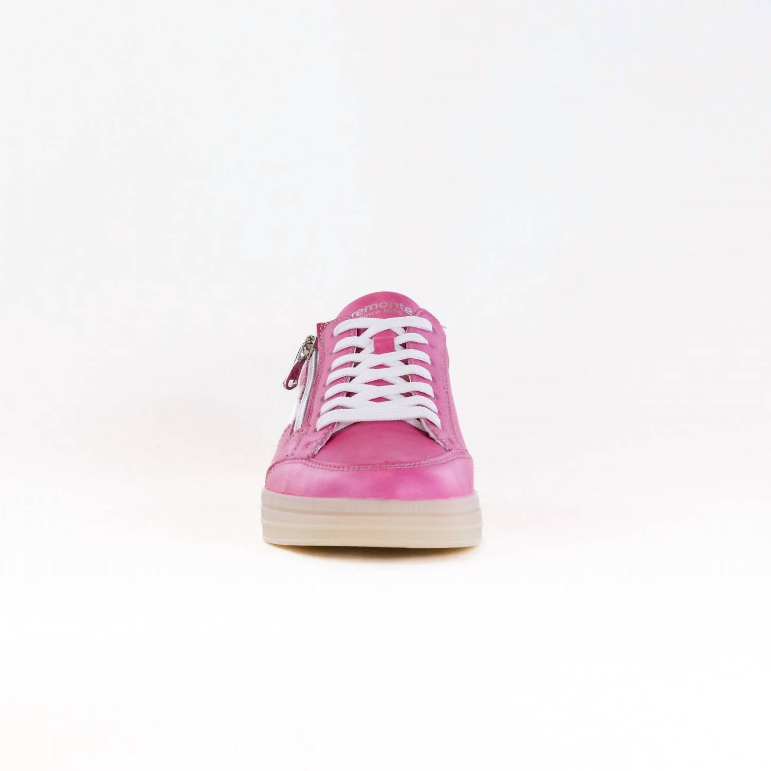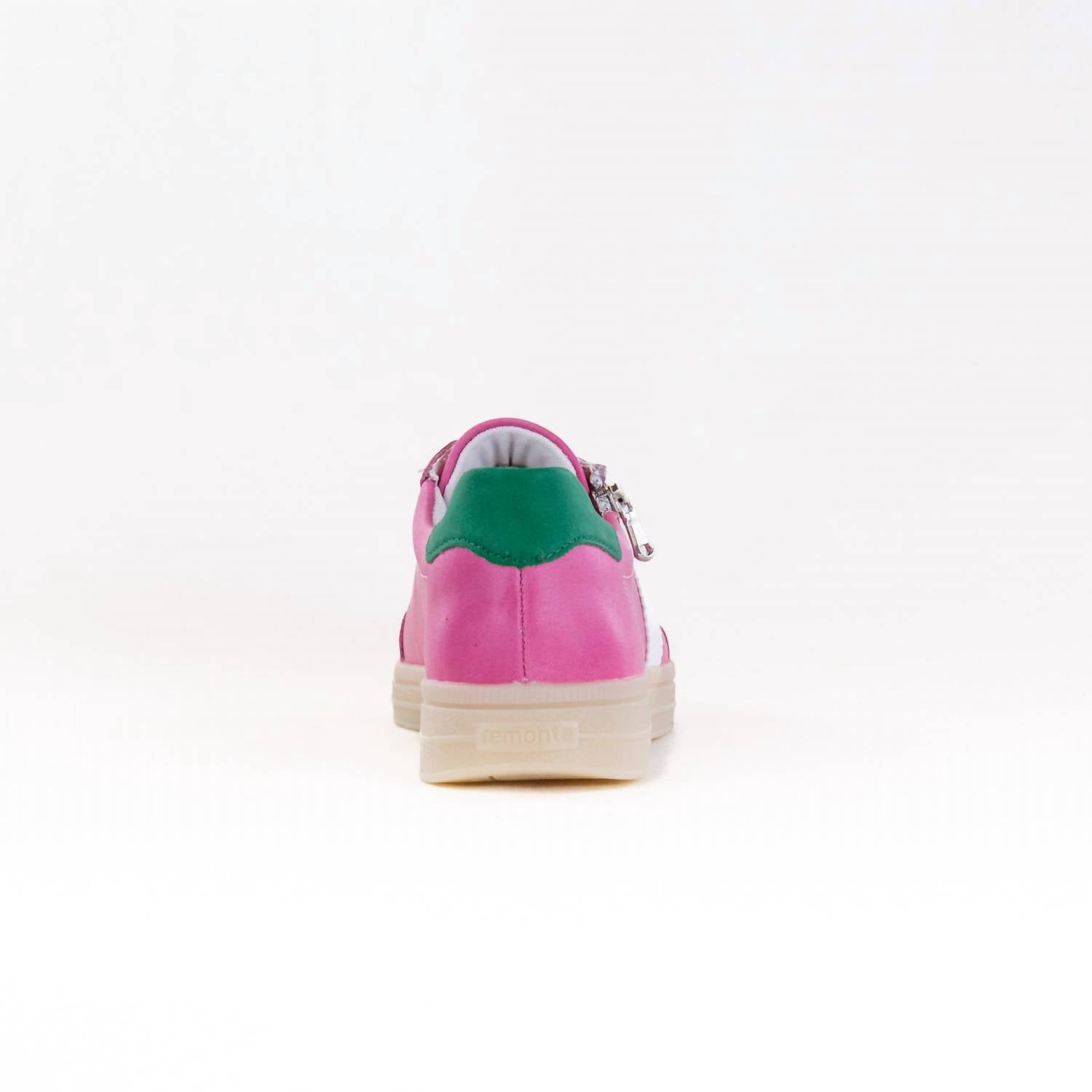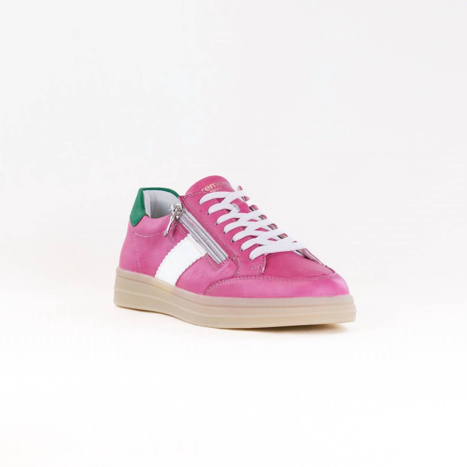 When fashion and function come together seamlessly. Slip into the Women's D2c02 Demi Sneaker by Remonte, crafted from smooth leather in a chic fuchsia and white colorway. Designed with a clever combination of lacing and a zipper for easy on and off, these sneakers feature a flexible thermoplastic elastomer sole and a comfortable flat heel with a 1.2" height. For your comfort, they include a light microvelour lining and a padded, removable insole. Perfect for a spring dinner party, these sneakers offer both minimalist style and practical versatility.