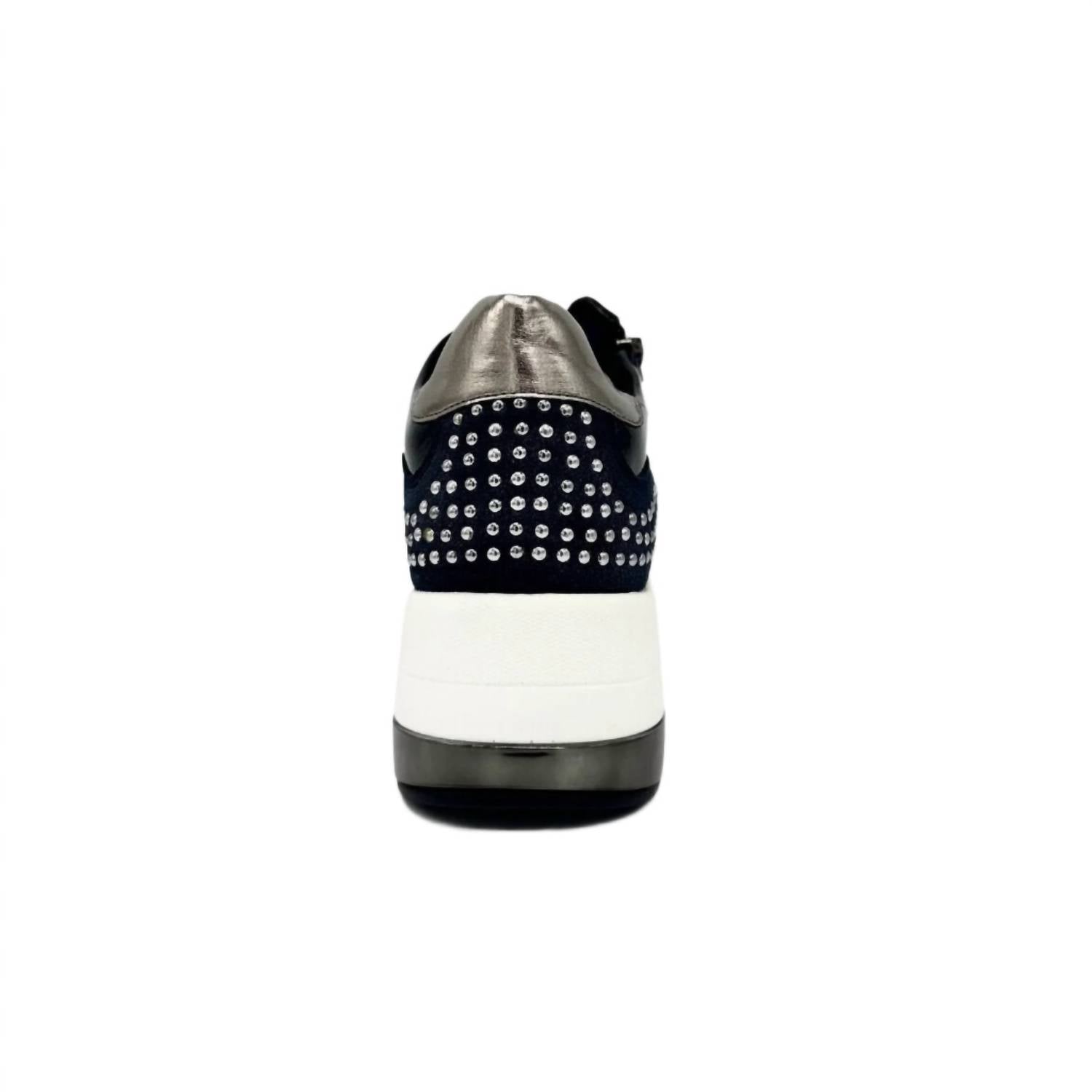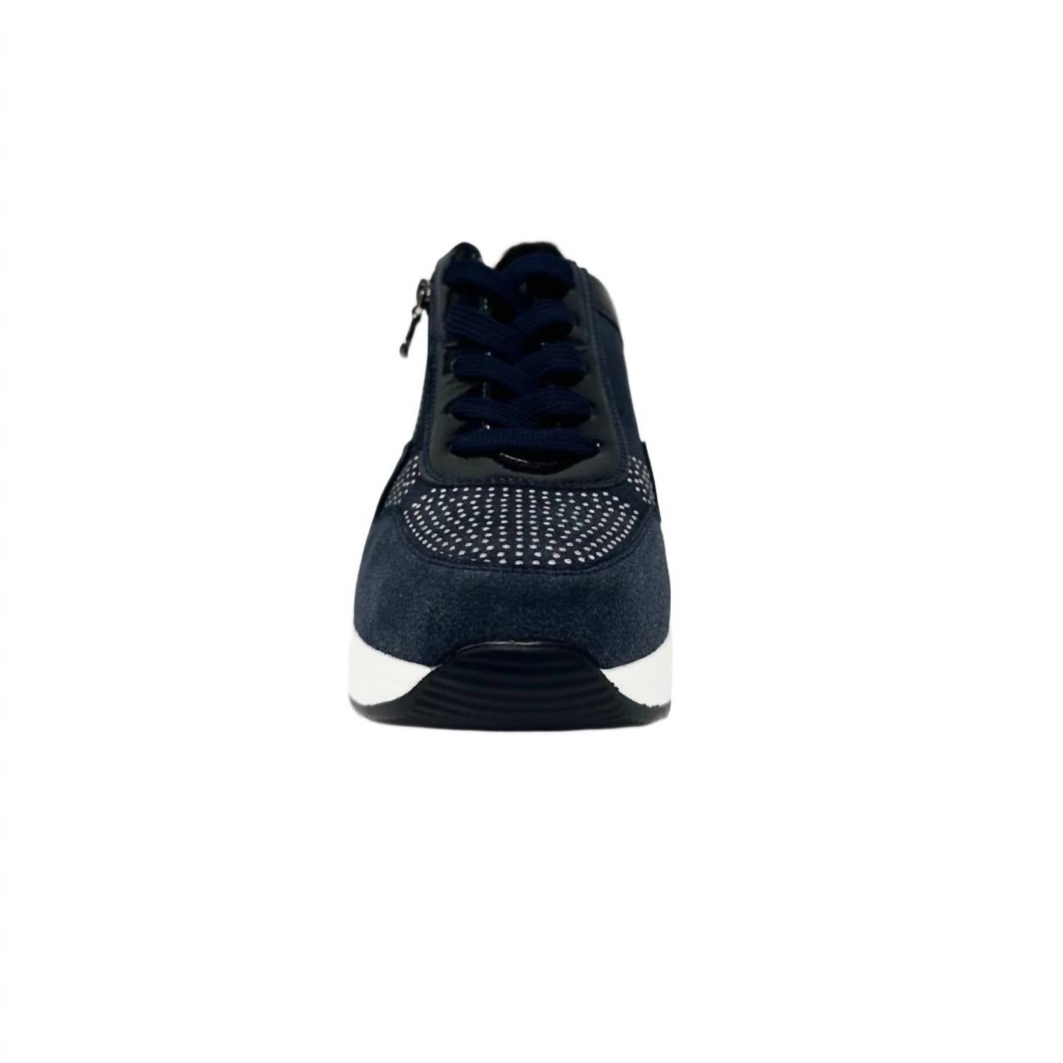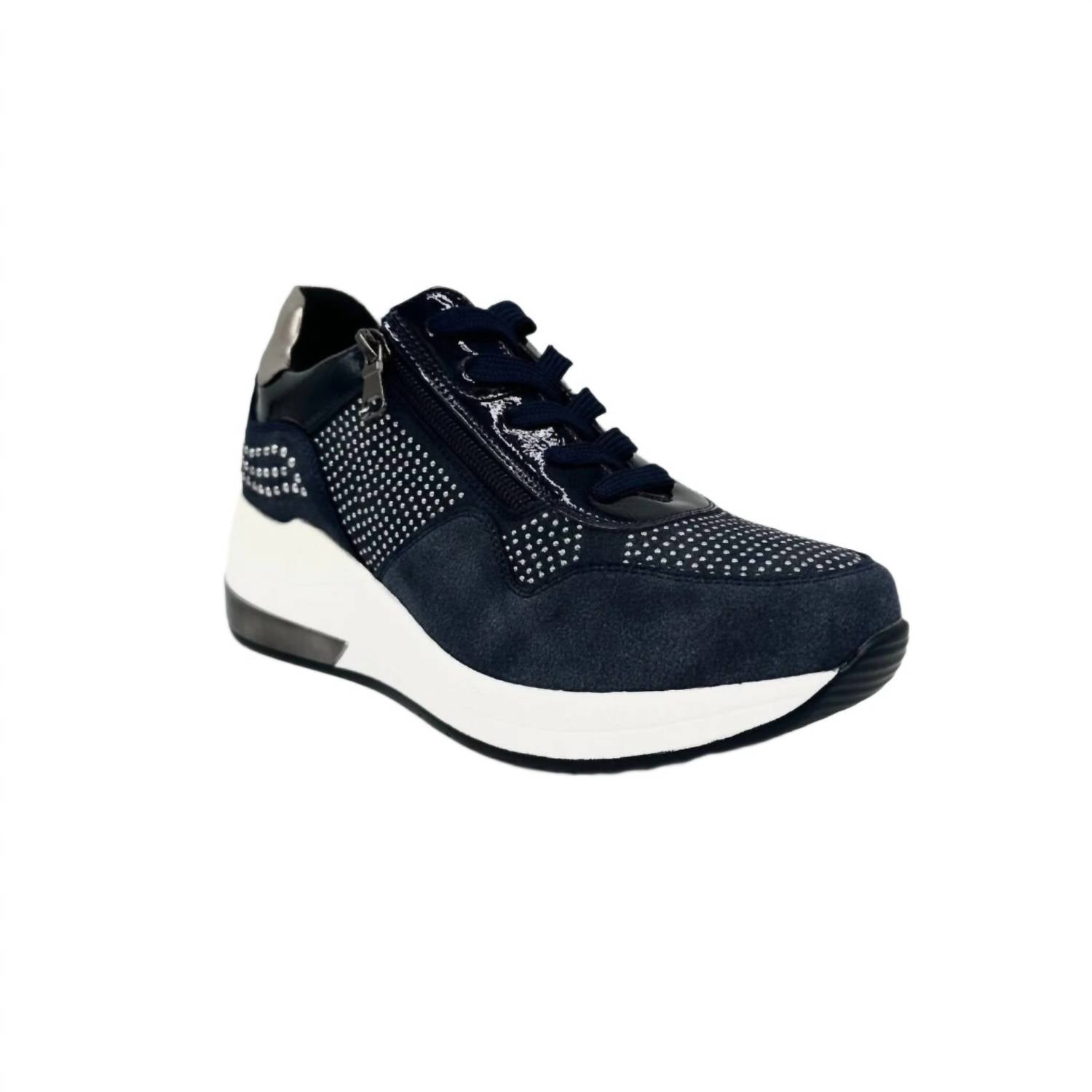 When fashion and function come together seamlessly. Elevate your street style with the Women's Lace Zip Fashion Sneaker by Renato Garini, crafted for travel and spring outings. These sneakers feature a chic wedge heel at a mid-height of 2.75 inches, making them both stylish and comfortable. With a blue suede material and almond toe shape, they are perfect for adding a trendy touch to any outfit. Designed in Greece, they offer a soft insole for day-long wearability, ideal for Easter celebrations and beyond.
