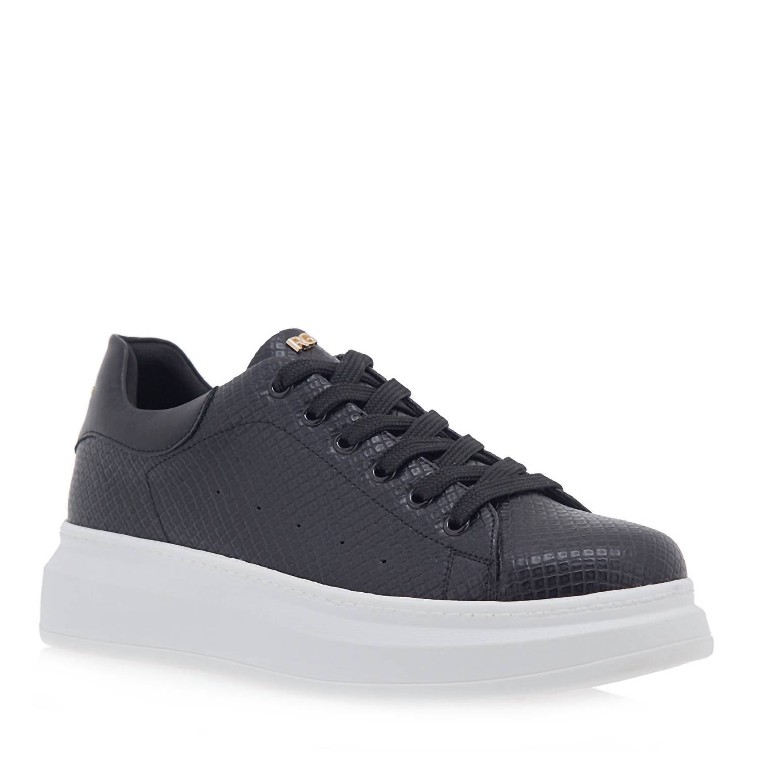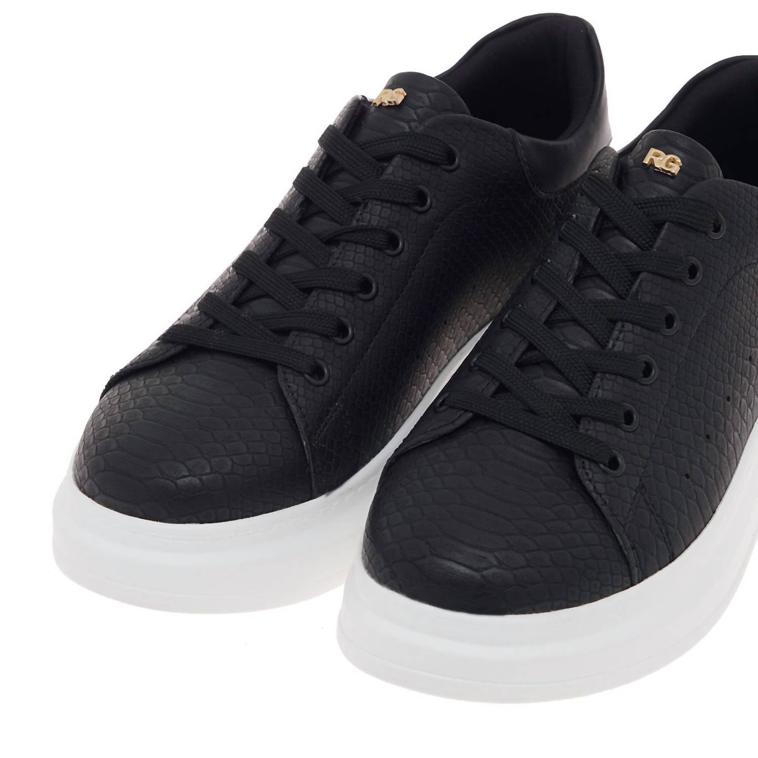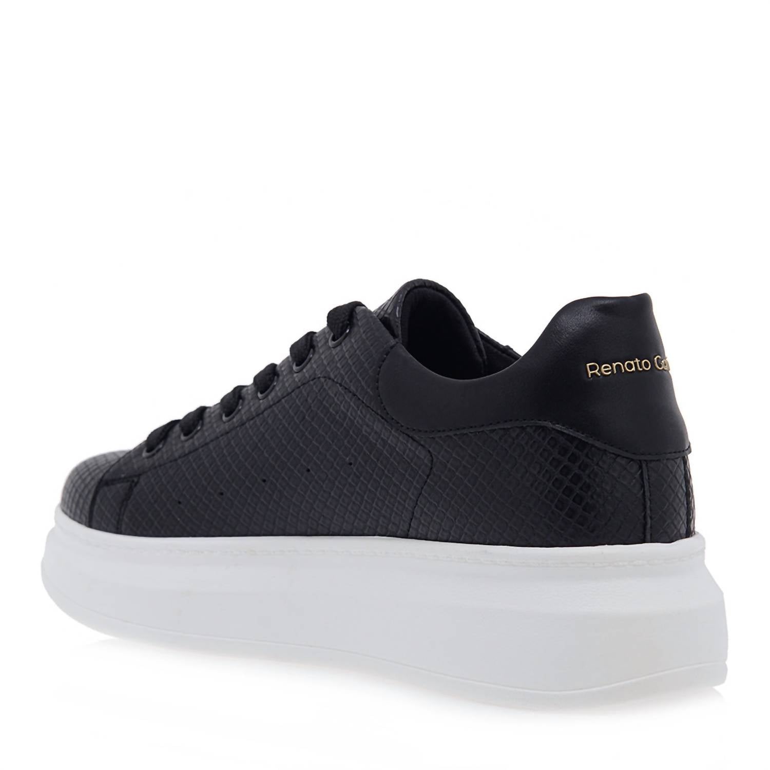 When fashion and function come together seamlessly. Step into effortless style with the RG 2101 Platform Sneaker by Renato Garini, crafted from smooth leather for a chic appearance. Designed with a low 1.57-inch platform heel, this sneaker offers the perfect blend of height and stability. Featuring a clean silhouette with subtle heel details and a round toe shape, these lace-up sneakers are available in White/Gold. Ideal for travel and streetwear trends, these sneakers adapt seamlessly to both casual and smart-casual looks, especially during spring.