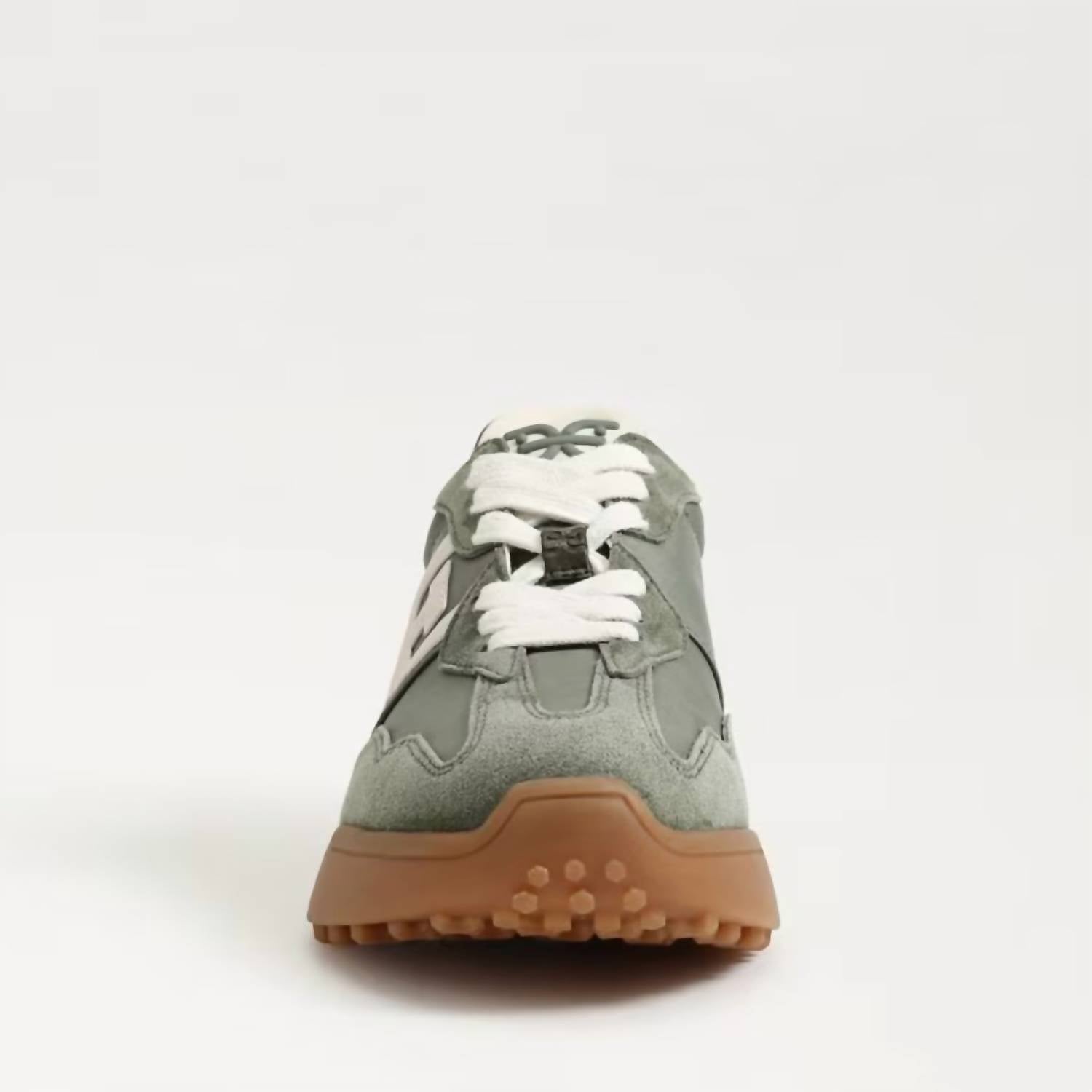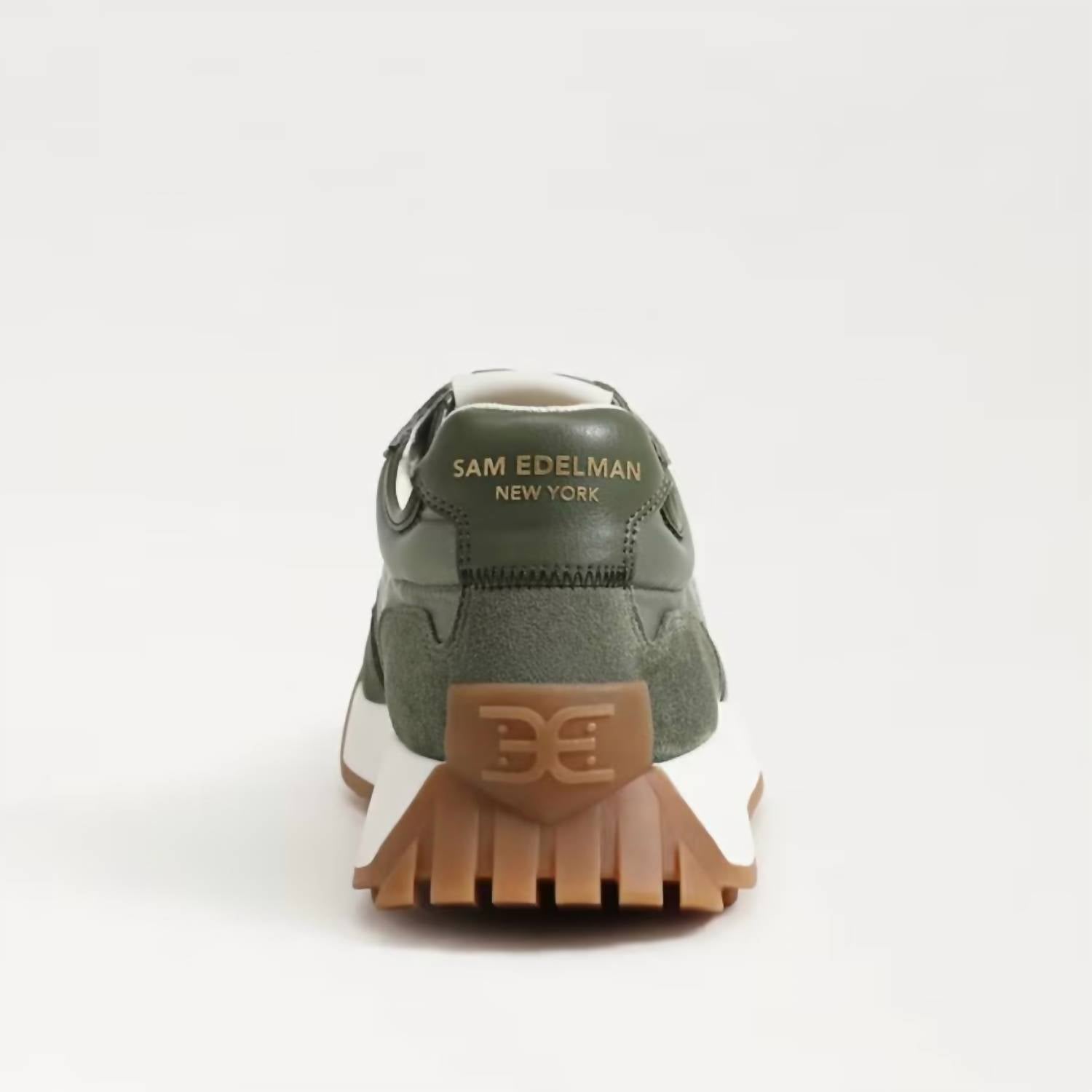 Cute, functional, and comfortable. These sneakers check all the boxes. Introducing the Women's Langley Lace Up Sneakers by Sam Edelman, a chic blend of modern comfort and vintage flair. These sneakers boast a soft suede upper in rich olive green with a 1.5-inch heel and a 1-inch platform for a stylish lift. The round toe and cushy fabric footbed enhance comfort, while the durable synthetic outsole ensures long-lasting wear. Avoid contact with water and light fabrics to maintain the vibrant custom-dyed color.