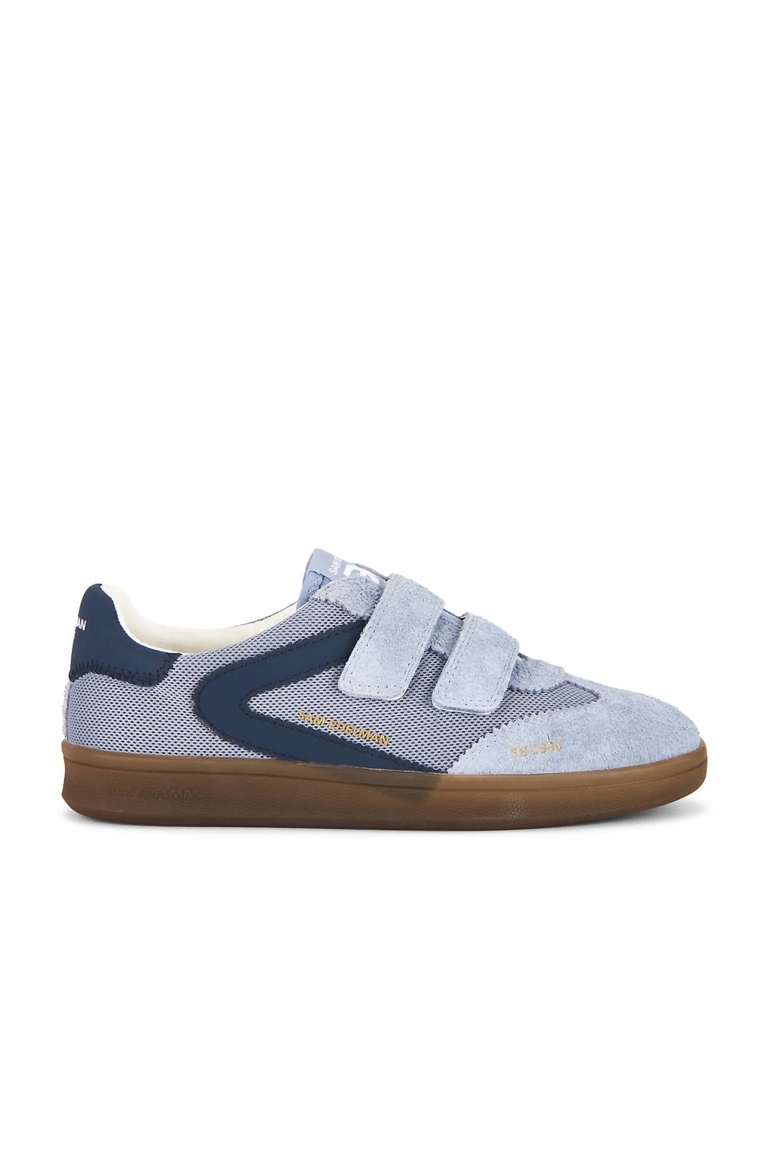 Get your daily steps in with these adorable sneakers. Elevate your streetwear style with the Women's Talia Sneakers by Sam Edelman in the cool Billow Blue colorway. Featuring a double Velcro strap closure, these sneakers offer a modern touch with their rounded toe design and are constructed from leather and synthetic materials. The Talia provides a perfect mix of sporty edge and casual comfort, with a 1.1-inch heel and a 0.87-inch platform. Enjoy all-day wear with the fabric insole and durable synthetic outsole.