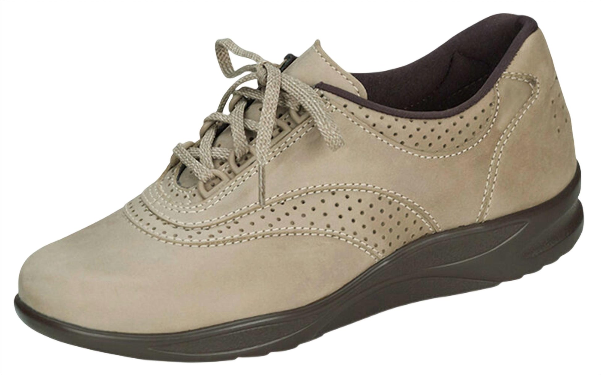 Get your daily steps in with these adorable sneakers. Step into comfort with the Women's Walk Easy Walking Shoe by SAS, offered in a chic sage hue. Ideal for travel, these sneakers are designed with a minimalist trend and a practical low heel height of 1.375 inches. They feature a classic round toe shape, ensuring ease with every step. Perfect for your summer adventures, add this stylish and comfortable pair to your wardrobe essentials.