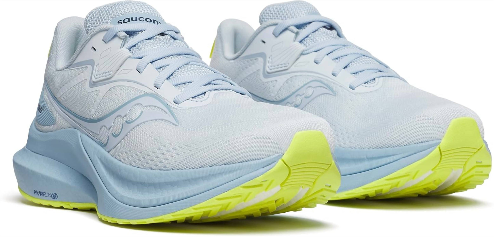 When fashion and function come together seamlessly. Introducing the SAUCONY Women's Tempus 2 Running Shoes, expertly designed for athletic performance and style. These sneakers feature a durable rubber sole, a breathable mesh outer material, and a comfortable fabric inner material, all complemented by a classic lace-up closure. Ideal for fitness enthusiasts, they boast our advanced PWRRUN PB cushioning for superior energy return and an adaptive guidance system for smooth transitions. Perfect for spring workouts, these shoes have a low heel with a flat style, round toe, and an 8mm offset for optimal performance.