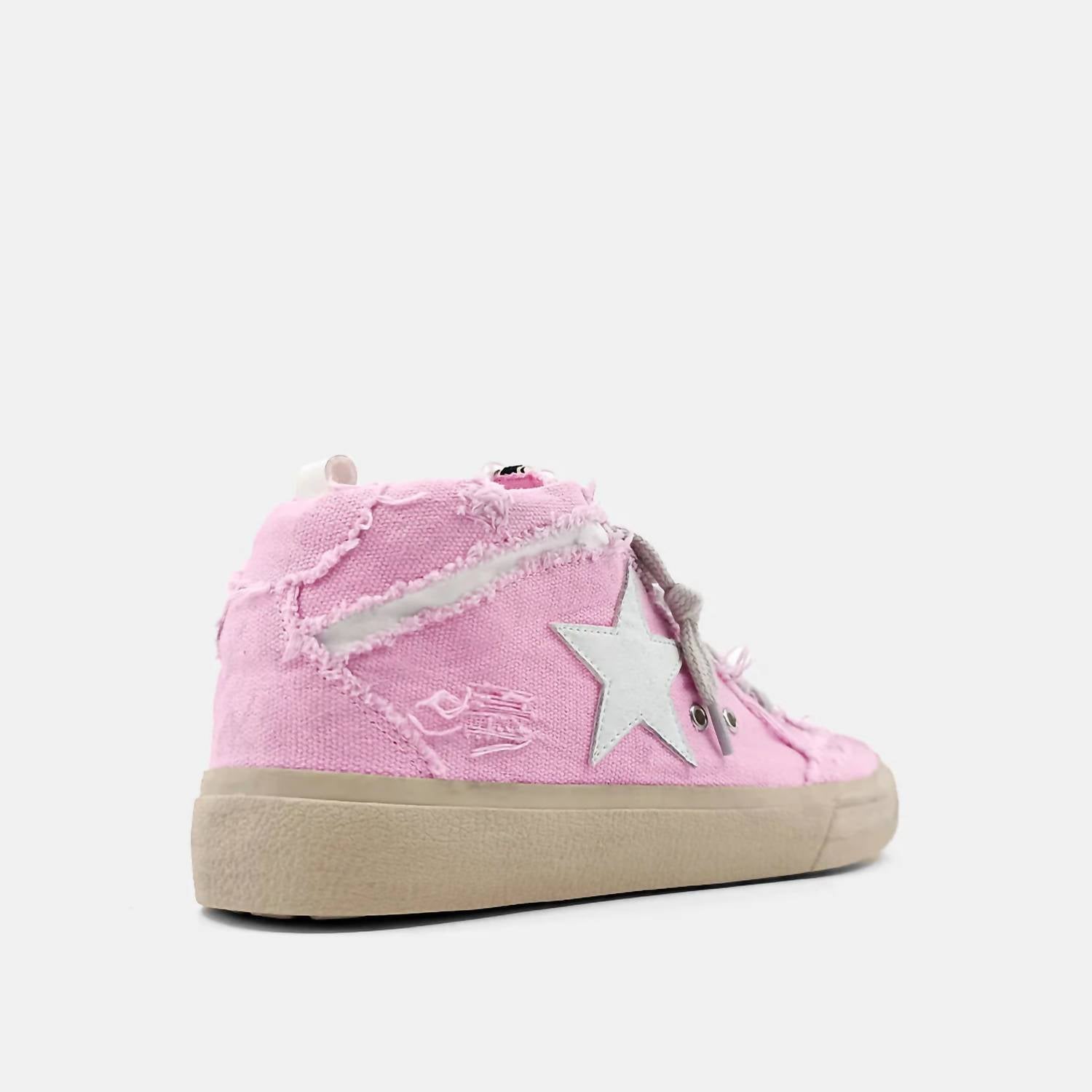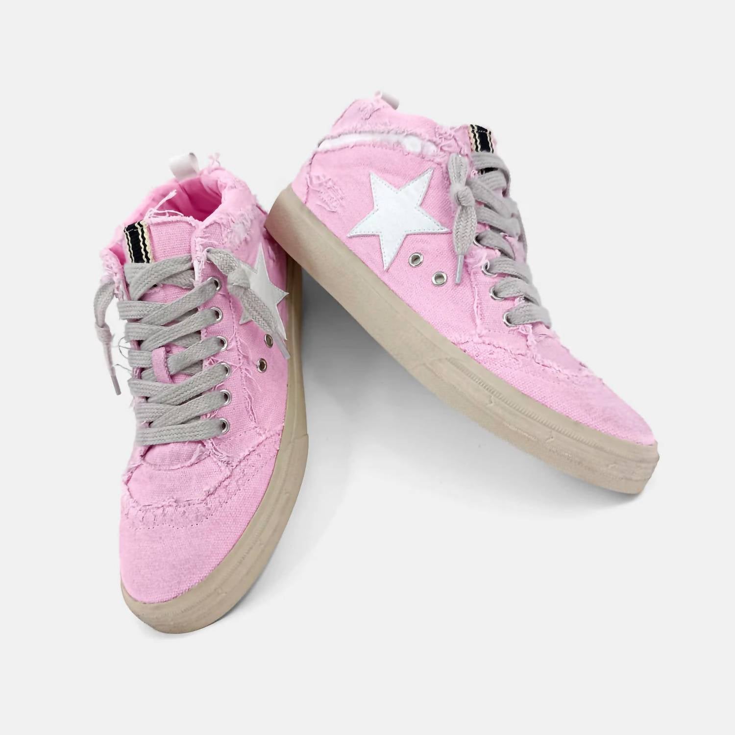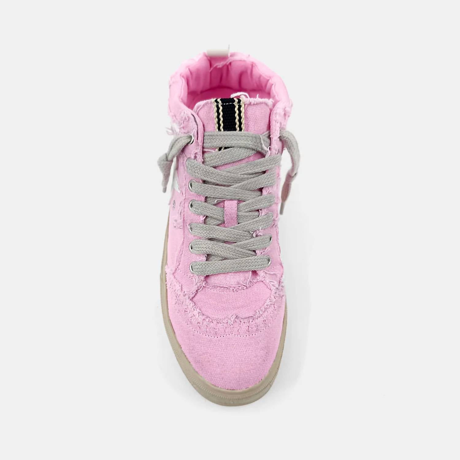 Get your daily steps in with these adorable sneakers. Step up your streetwear game with the Women's Paulina Mid-top Sneakers by SHU SHOP, designed for a fresh take on vintage basketball style. Crafted from canvas, these sneakers boast a vibrant pink hue perfect for making a statement at any holiday party. Featuring a round toe and flat heel, they offer both comfort and style for the modern woman. Ideal for the spring season or your Thanksgiving outfit, they'll quickly become your go-to pair for a trendy finish.