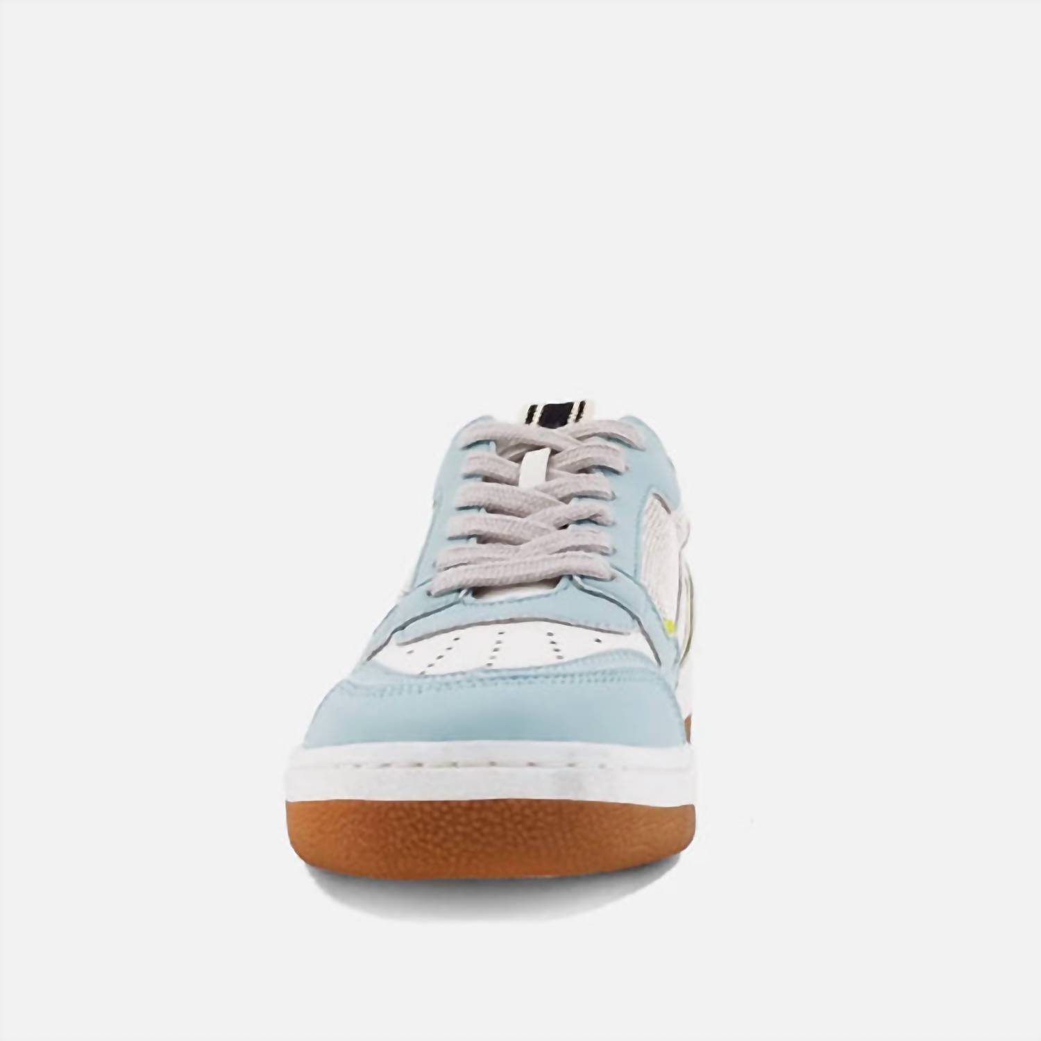 Cute, functional, and comfortable. These sneakers check all the boxes. Step into retro flair with the Women's Romi Sneakers by SHU SHOP, a bold addition to your streetwear collection. Featuring supple faux leather accented with colored suede and mesh uppers, these sneakers boast a round toe and platform heel for a comfortable yet stylish fit. Perfect for spring occasions like holiday parties, these aqua sneakers will keep you on-trend. Elevate your ensemble with these fashion-forward sneakers that capture the essence of '80s style.