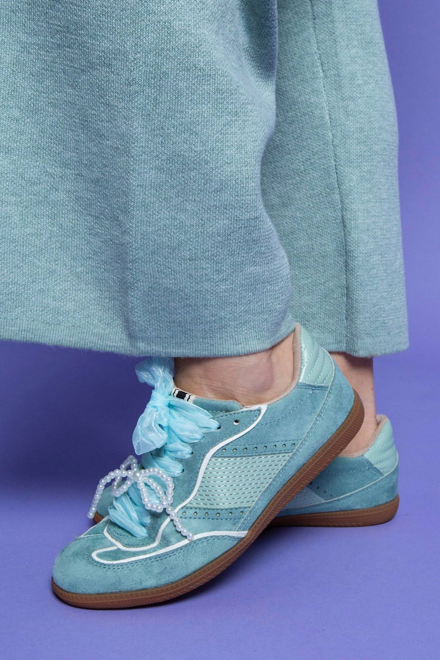 Get your daily steps in with these adorable sneakers. Step into style with the Women's Sophie Sneaker by SHU SHOP, a perfect blend of comfort and personality in a vibrant Aqua hue. Featuring a classic lace-up closure and a round toe shape, these sneakers are designed for the fashionable woman seeking streetwear flair. The detachable pearl bow allows you to switch up your look, while the included basic laces offer versatility for everyday wear. Ideal for back-to-school occasions and beyond.