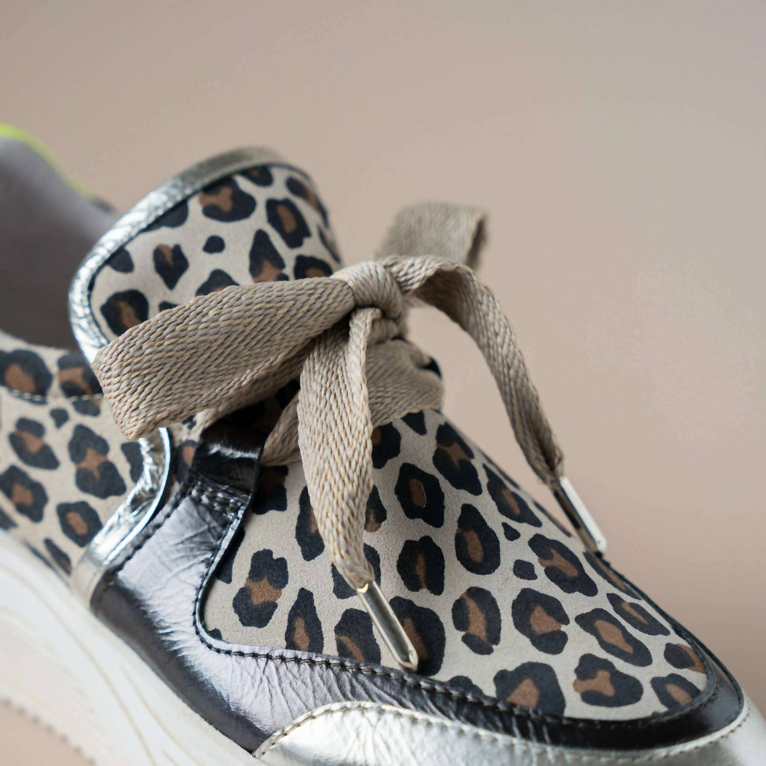 Get your daily steps in with these adorable sneakers. Introducing the Women's Bikini Sneaker by Vaddia, a stylish addition to your wardrobe in a playful taupe leopard and lime combination. Crafted from high-quality faux leather, these sneakers feature a classic round toe and flat heel, perfect for fall streetwear and travel occasions. Ideal for those with narrower feet, these sneakers can be paired with a fit pack for a snugger fit. Elevate your outfit effortlessly with these trendy kicks.