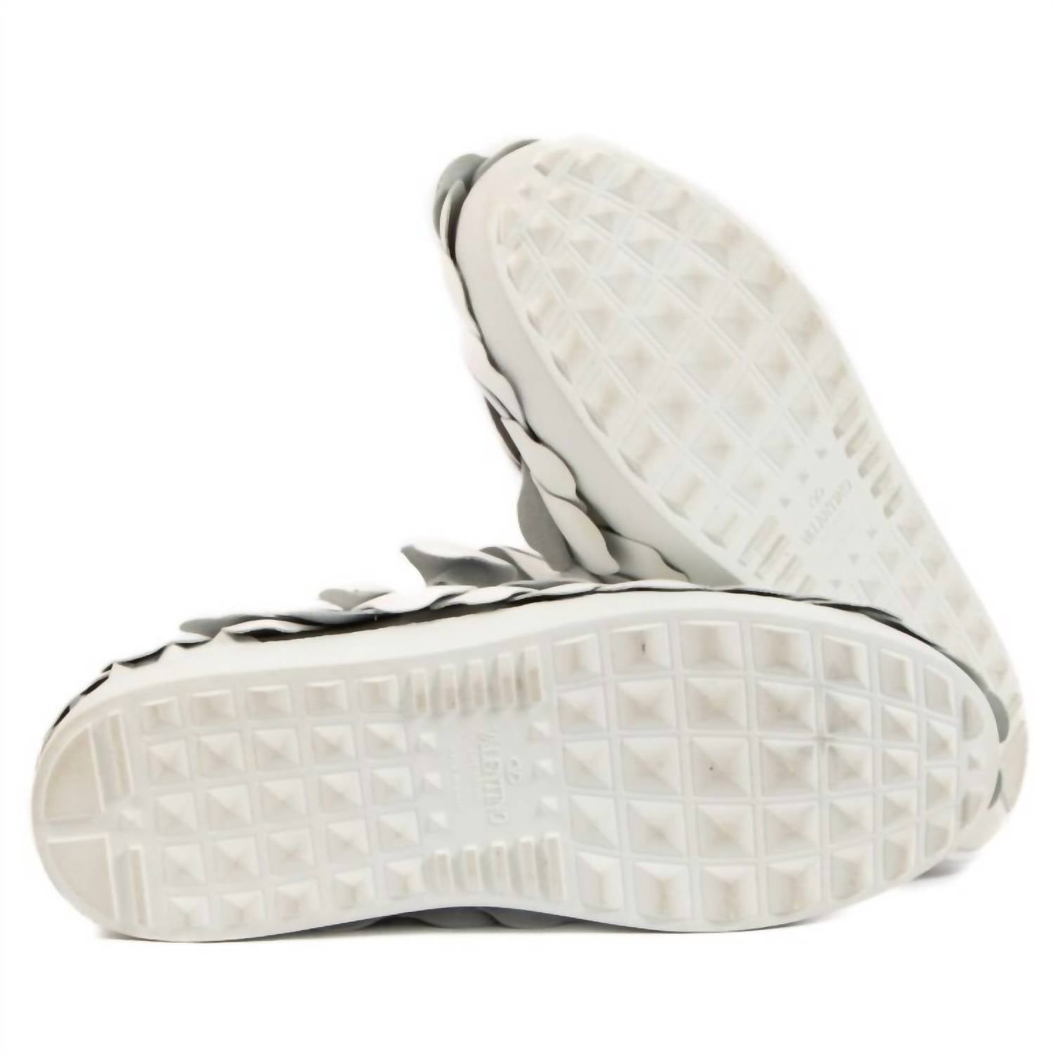 When fashion and function come together seamlessly. Elevate your sneaker collection with the Women's Atelier 03 Rose Petal Sneakers by Valentino Garavani. Expertly crafted in Italy, these white calf leather sneakers feature stunning sculpted rose petals adorning the uppers for a truly unique aesthetic. Designed with a round toe and a flat heel under 1 inch, they offer both style and comfort.