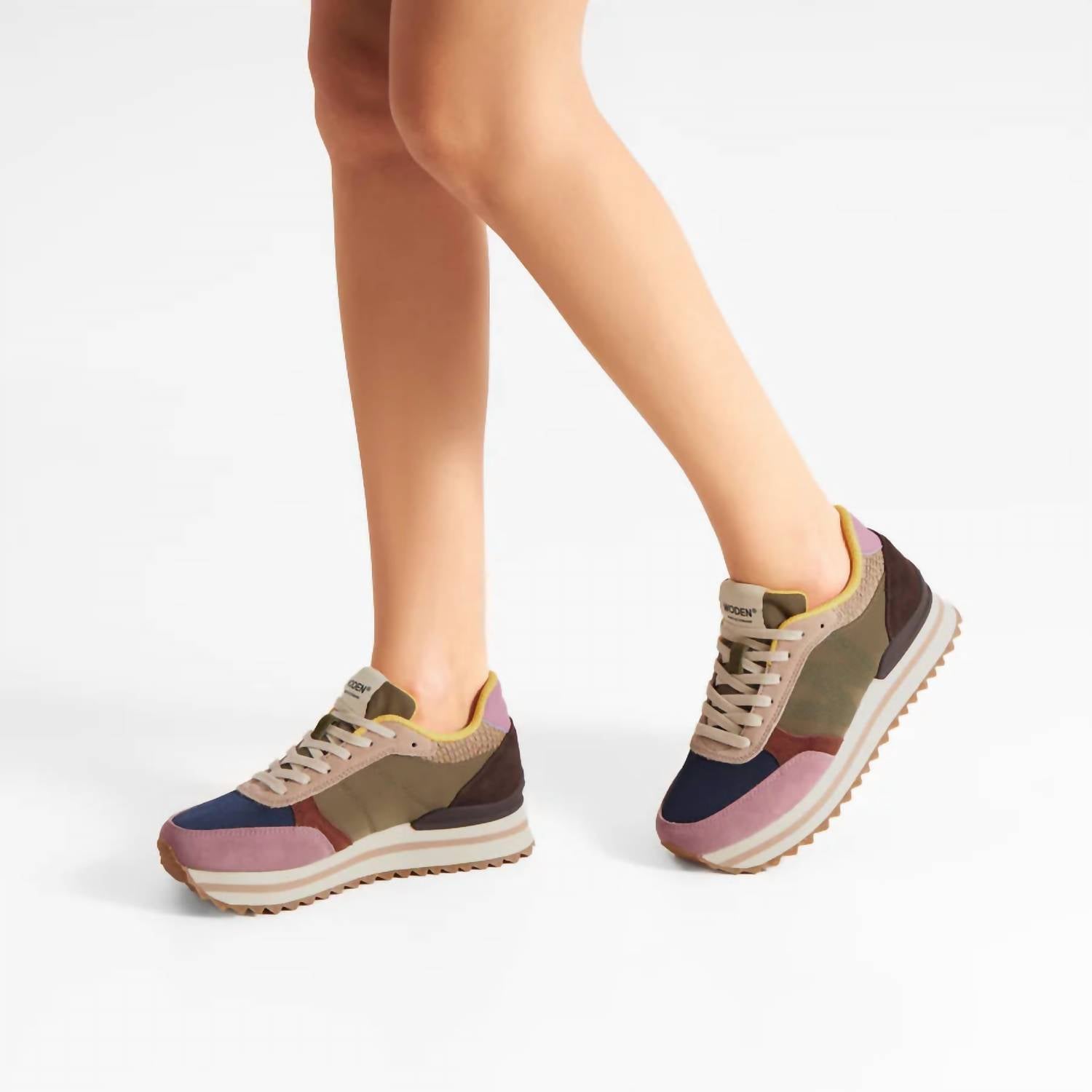 Cute, functional, and comfortable. These sneakers check all the boxes. Step into stylish comfort with Woden's Women's Ronja Plateau Sneaker in Dark Algae, a luxurious twist on a brand favorite. Featuring a 3 cm plateau height, the shoe is made with a clever mix of suede, textile, and unique fish leather accents, resulting in a sophisticated yet sporty look. It boasts a round toe design and is built with a rubber outsole that includes 10% recycled rubber, backed by Woden's innovative air flow systemâ„¢ for optimal comfort. Ideal for summer travels, these sneakers are as supportive as they are chic.
