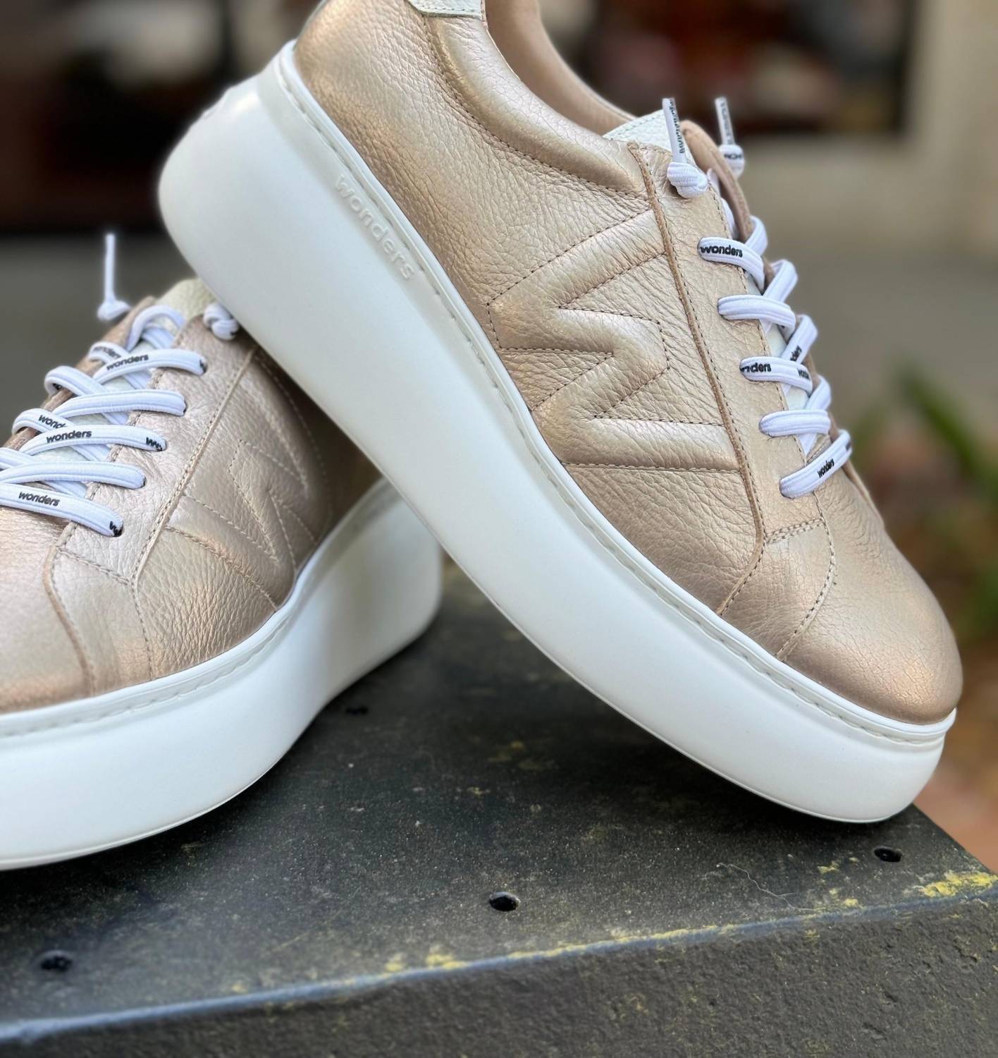 When fashion and function come together seamlessly. Experience unmatched comfort and style with the Women's Platform Dorita Sneaker by Wonders, crafted from premium leather. Featuring a round toe design and lace-up closure, these trainers offer a trendy look ideal for versatile street style ensembles. The lightweight Maxi sole, equipped with WondersFly technology and a removable MemoryGel insole, ensures personalized support and all-day ease. These sneakers, made in Spain, boast a 2" platform heel perfect for summer fashion.