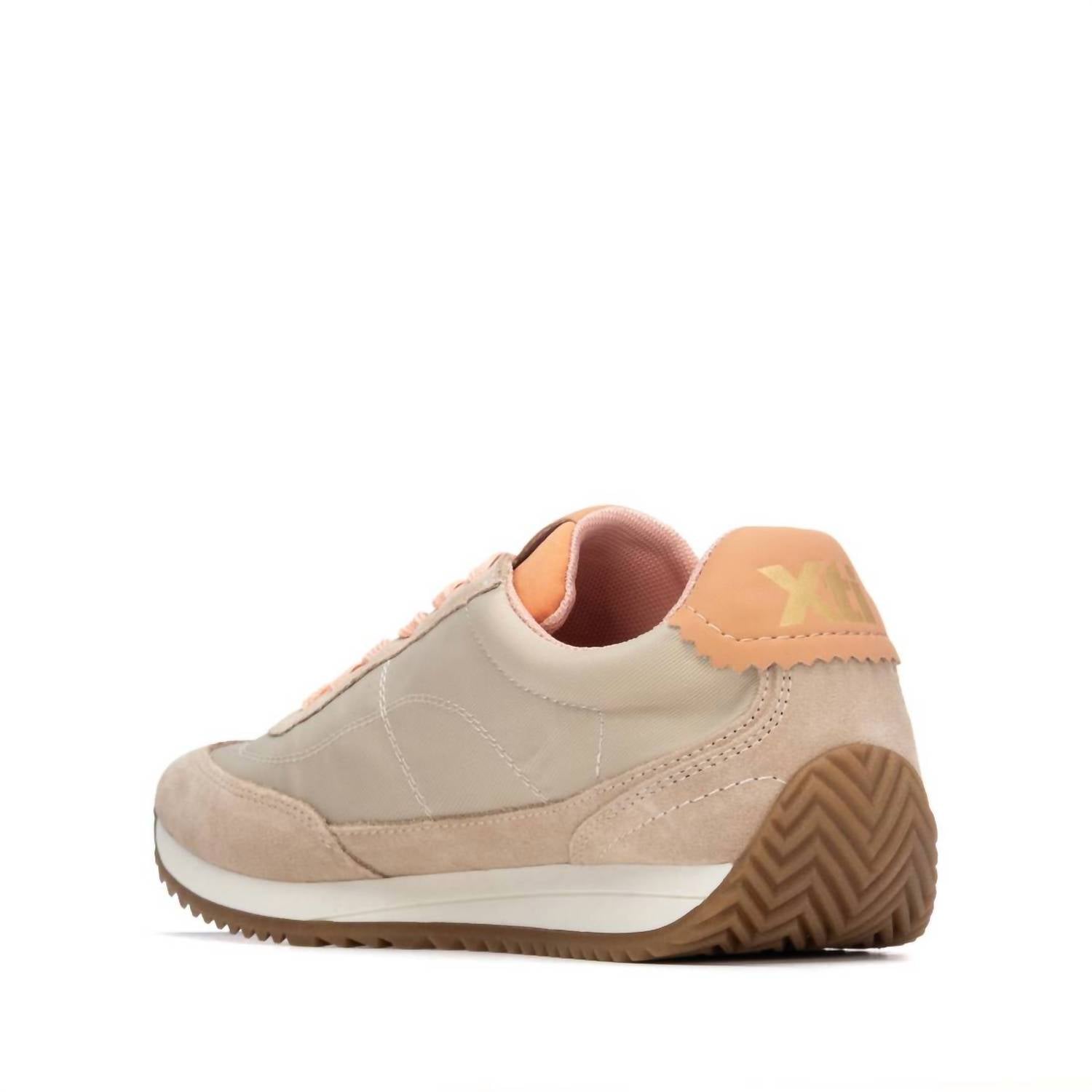 When fashion and function come together seamlessly. Introducing the Women's 14520904 Sneaker by Xti, a perfect blend of style and comfort. Made of textile material. These beige sneakers feature a memory foam insole, ensuring your feet are cushioned all day long. With a round toe and a flat heel height of 0.78 inches, they're ideal for both casual outings and holiday parties. Versatile enough for summer athleisure trends, they effortlessly complement a variety of outfits.
