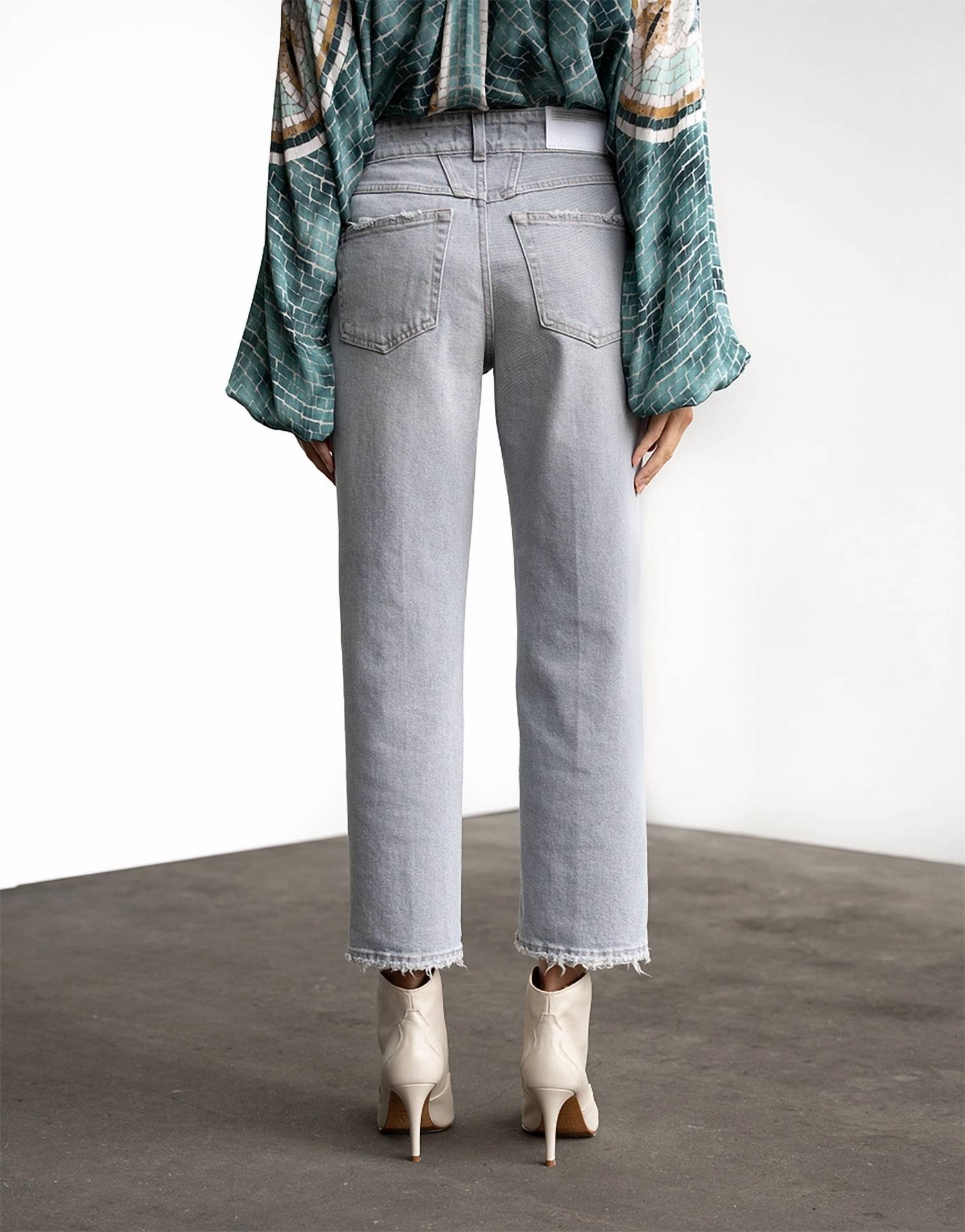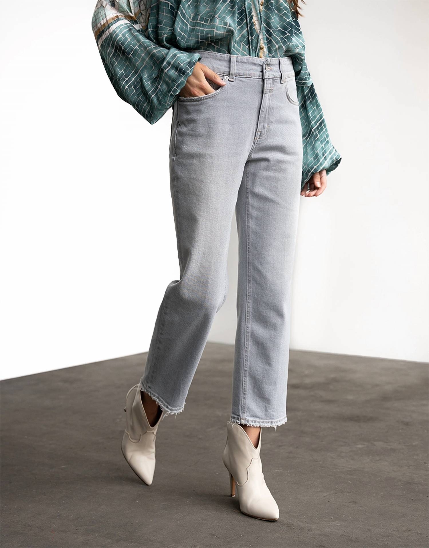 These must-have jeans are fit to perfection. Discover the Milo Jeans by CLOSED, a stylish addition to your wardrobe in a vintage-inspired light grey wash. Designed with a mid-rise waist, these jeans feature a straight leg with a slightly shortened length and a chic frayed hem. Crafted from 99% organic cotton and 1% elastane, they offer comfort and a perfect fit. Closure: Zip closure. Care: Machine wash.