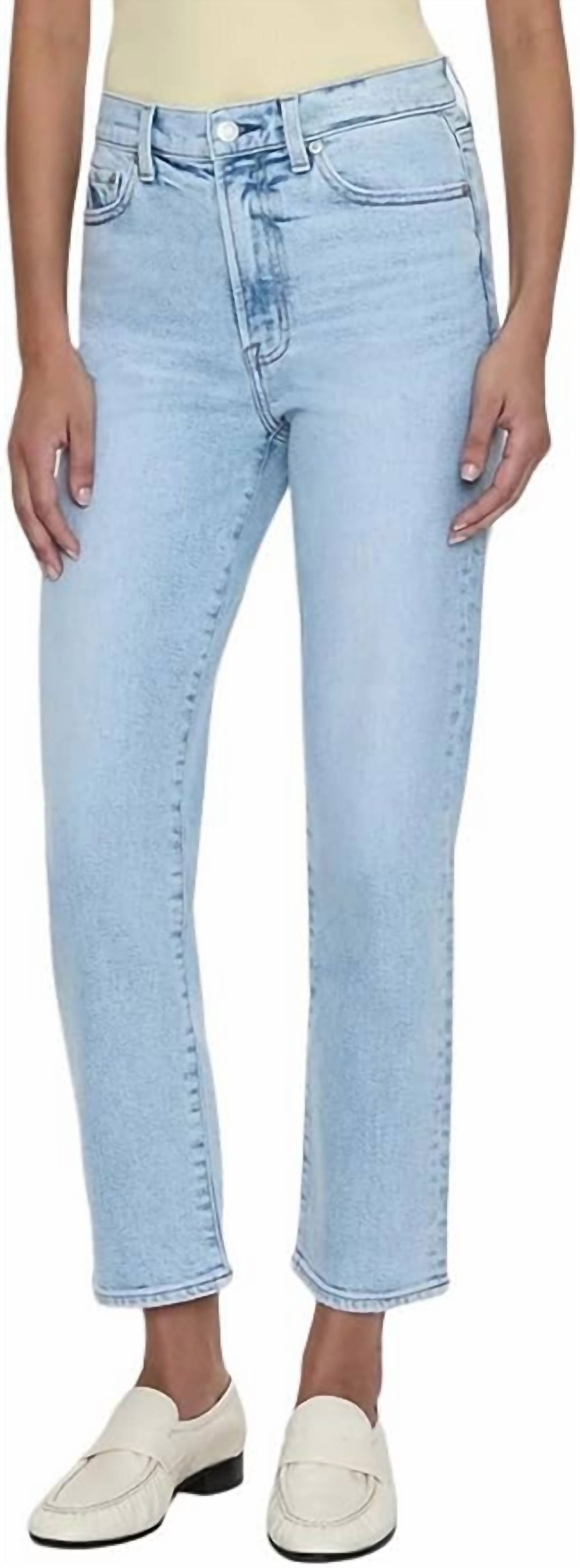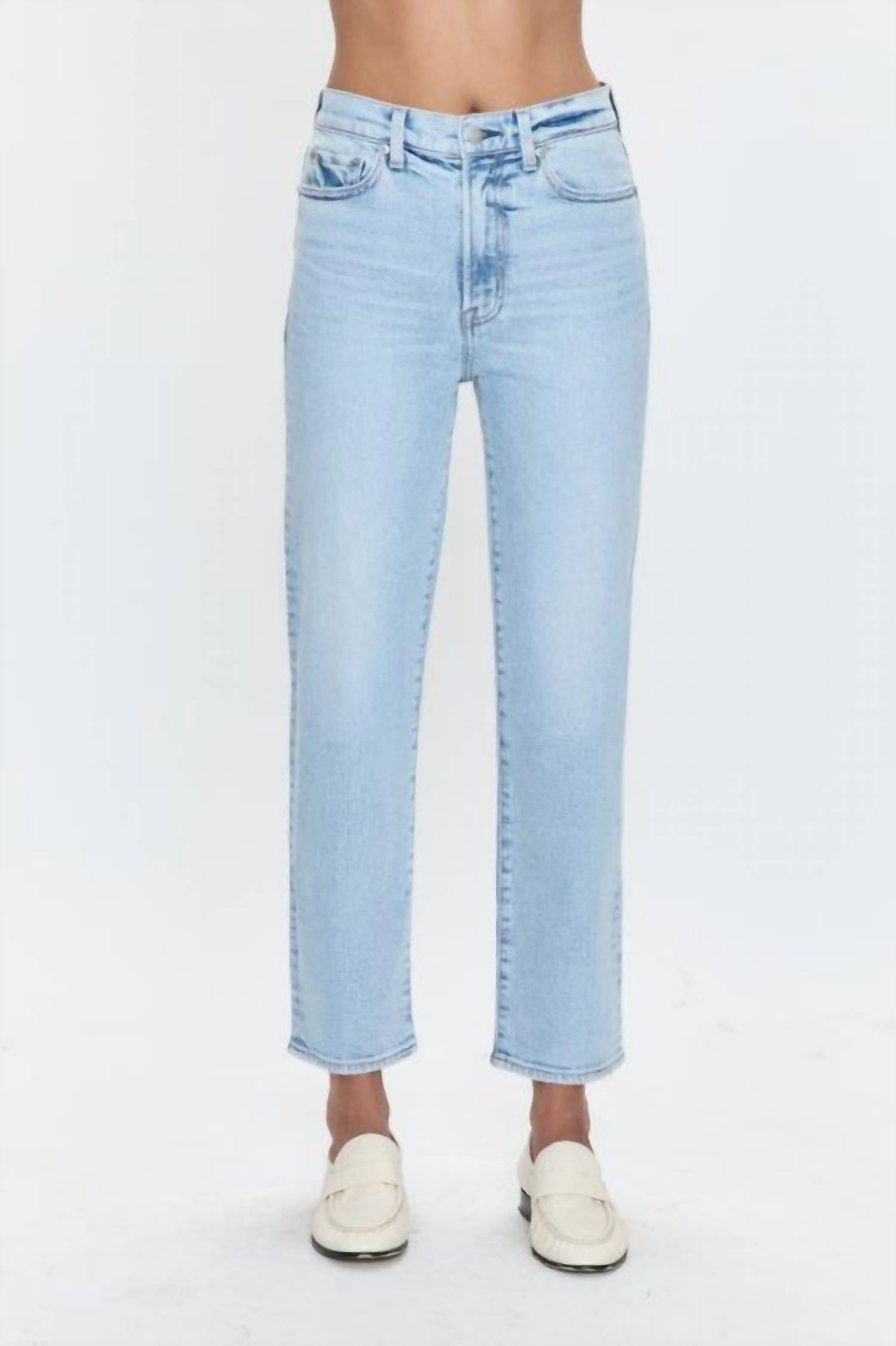 Discover the Charlie Straight Leg Jeans by PISTOLA, offering an ideal blend of timeless and contemporary streetwear in a sun-kissed hue. These women's high-rise jeans feature a light wash and are tailored from cotton, designed with a straight leg and ankle length for regular fit comfort. They come with a convenient zip closure and no pockets for a sleek, modern look. Care is a breeze with machine wash and tumble dry instructions, making them perfect for summer travel or 4th of July outings.
