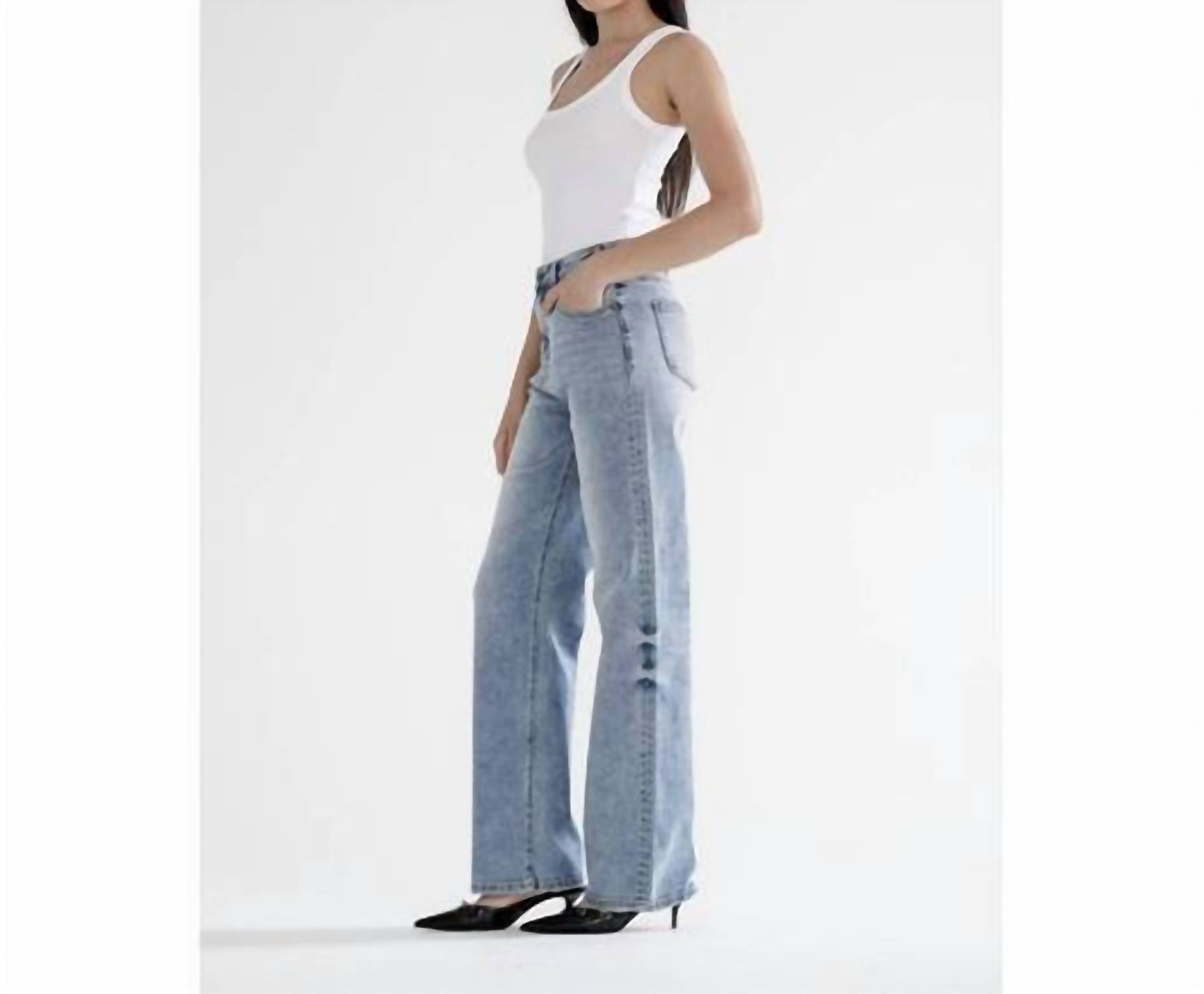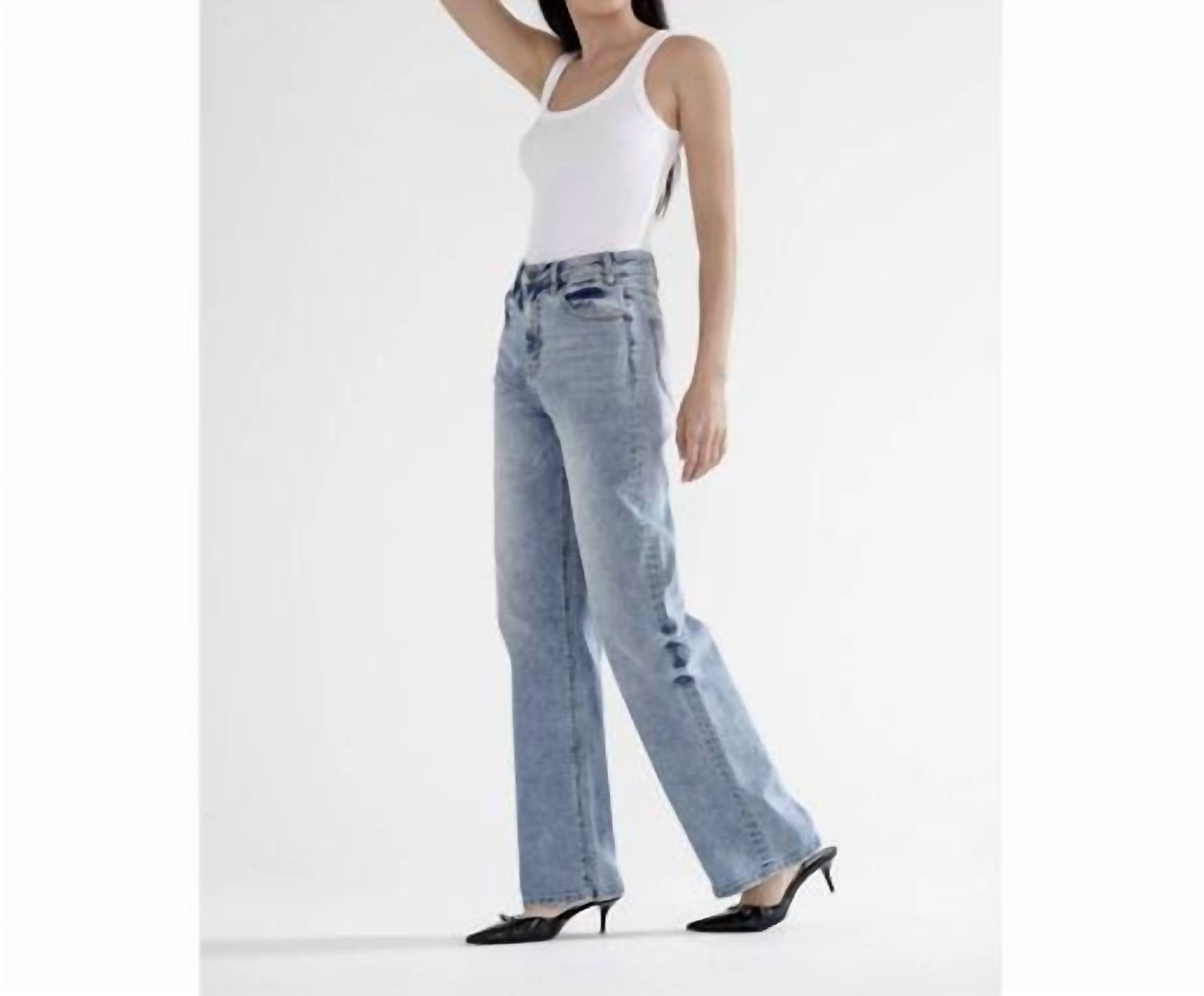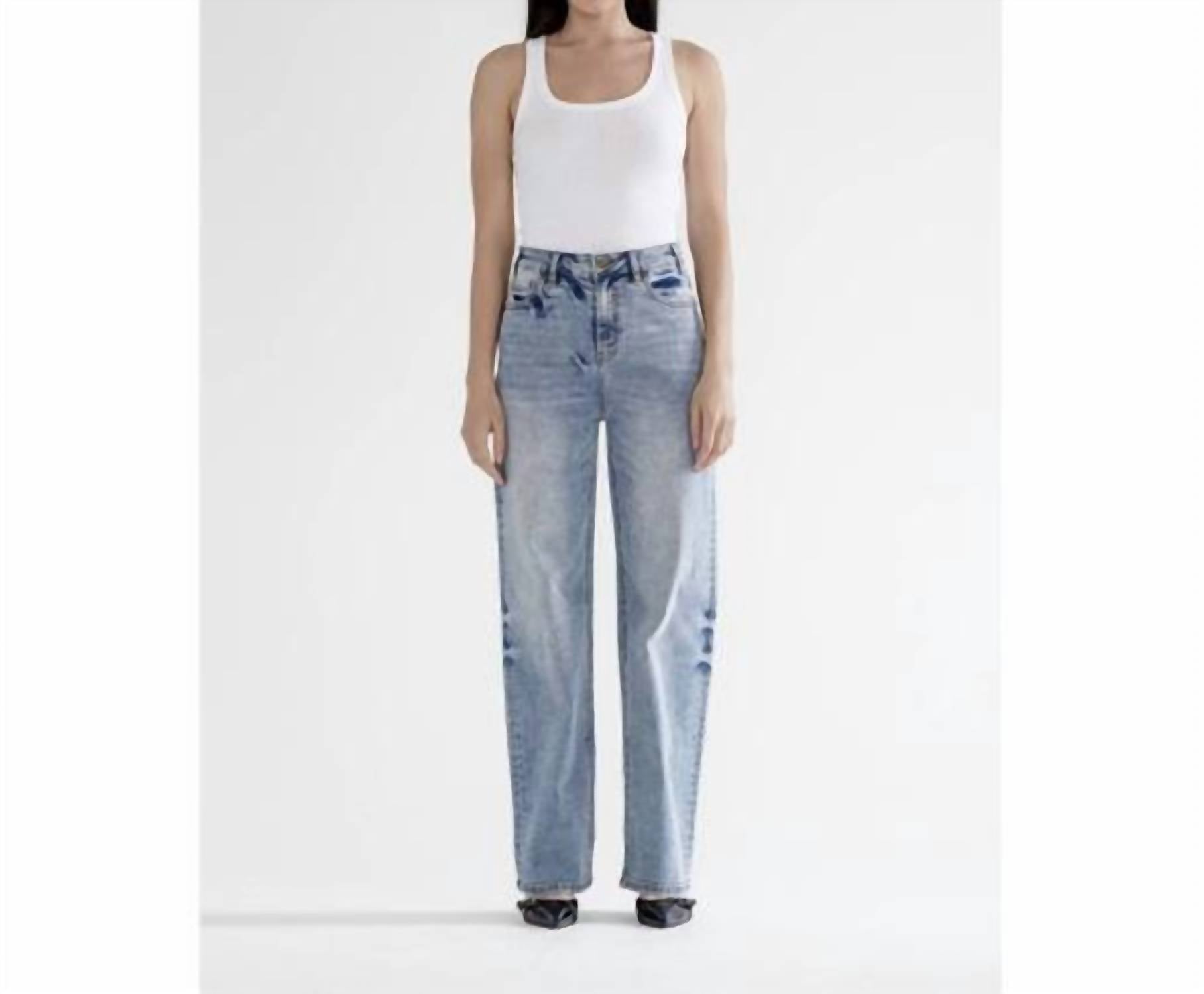 These must-have jeans are fit to perfection. Introducing the Mica Denim Straight Leg Jeans, a stylish choice for women seeking both comfort and a modern edge in every outfit. These blue/gray jeans feature a super high rise with a 12" front rise, a straight leg cut, and a relaxed fit with a textured pattern. Crafted from a blend of 90.5% Cotton, 7% Polyester, and 2.5% Spandex, they offer breathability and a little stretch, making them perfect for any occasion. Equipped with pockets and a button closure, these imported jeans have an inseam of 32" and are easy to care for—just machine wash and tumble dry.