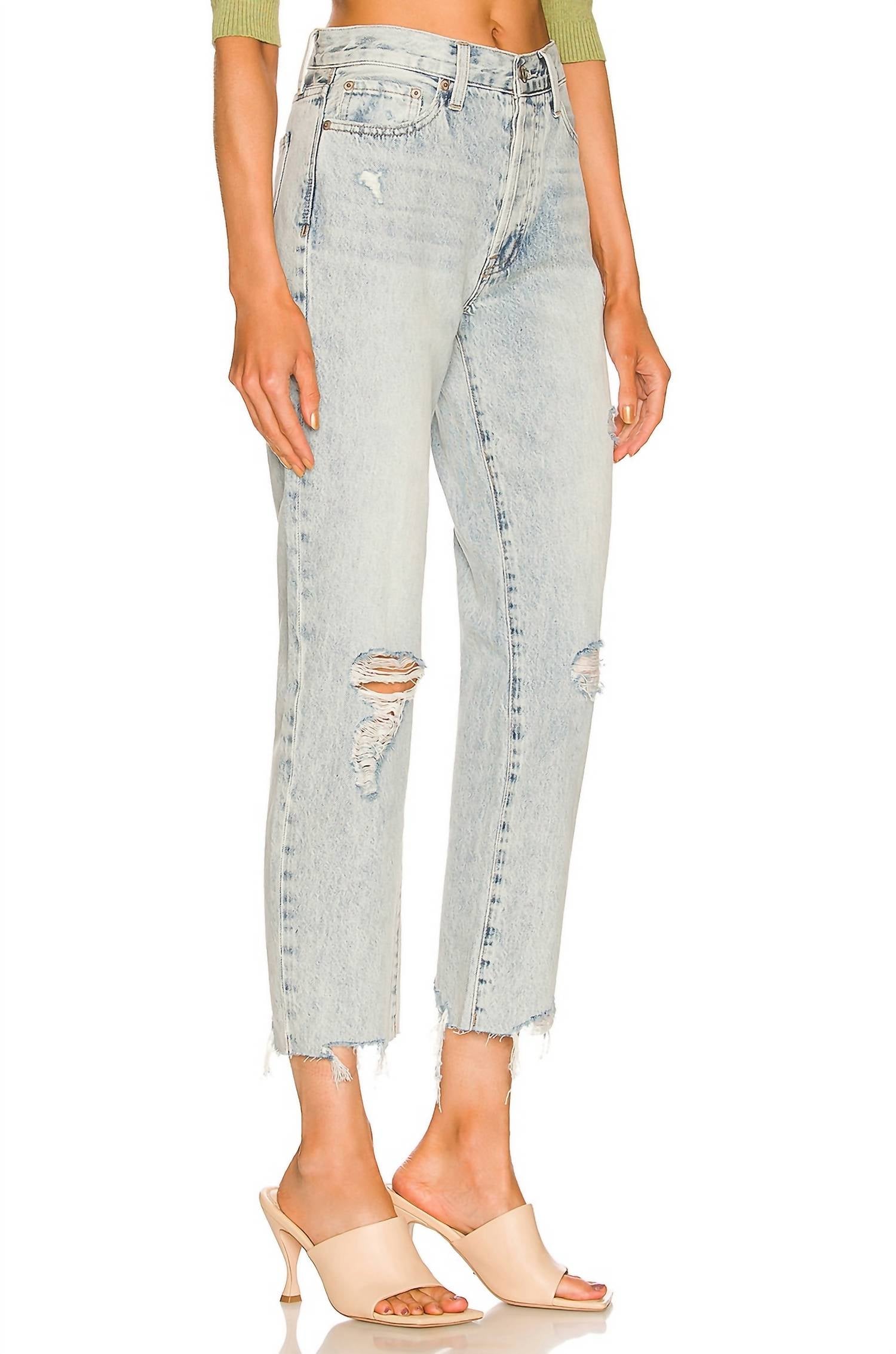 These must-have jeans are fit to perfection. Discover the Charlie High Rise Straight Jeans by PISTOLA, a staple for any wardrobe in the captivating Hysteria Distressed wash. These jeans feature a high-rise fit with a straight leg silhouette and stylish distressing at the knees and hems. Crafted from 100% cotton, they are equipped with a button fly closure. Made for comfort and style, these imported jeans are best cared for with cold machine wash and tumble drying. With dimensions of a 11" rise, 27" inseam, and 14.5" leg opening, they promise a perfect fit.