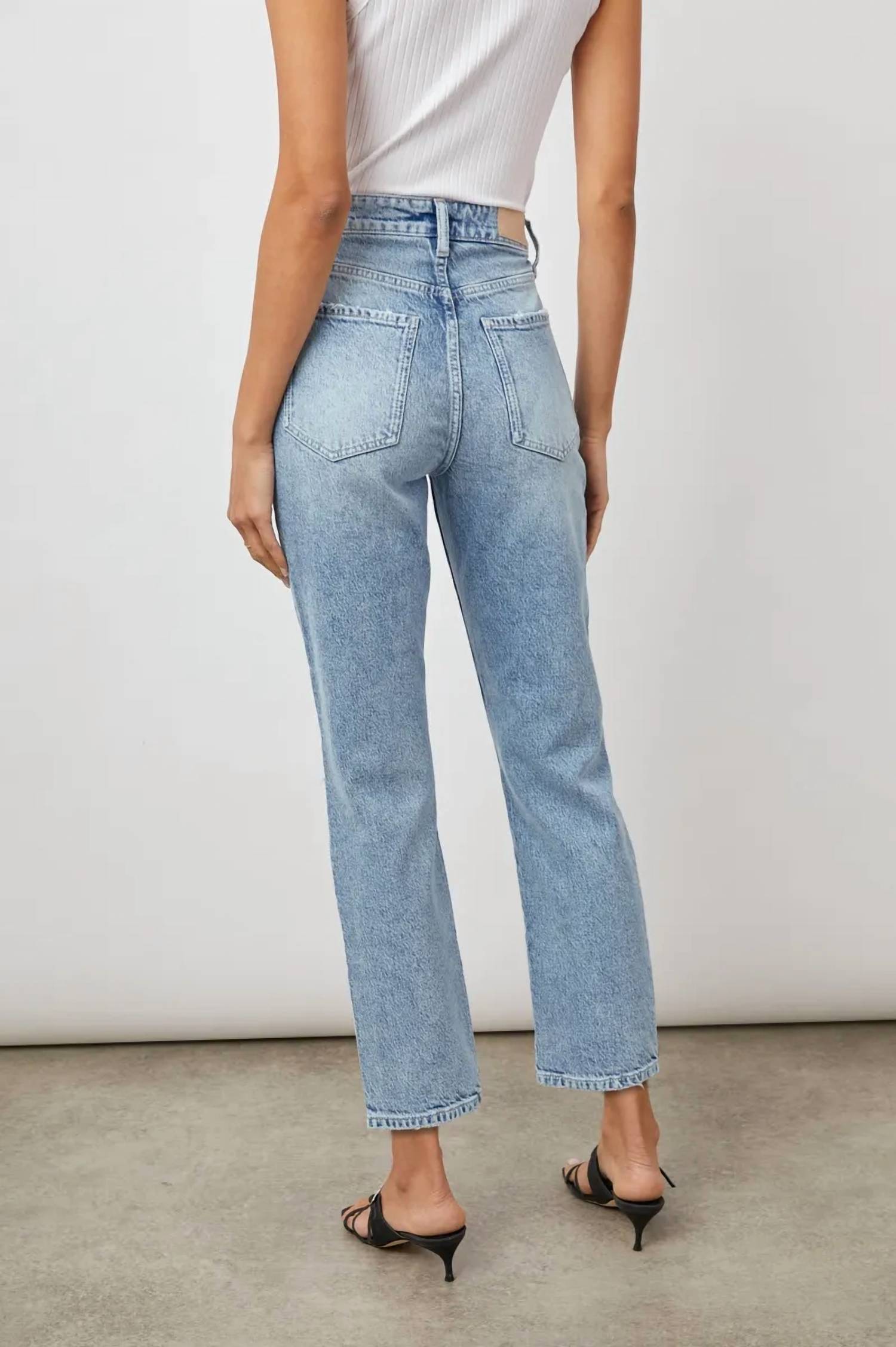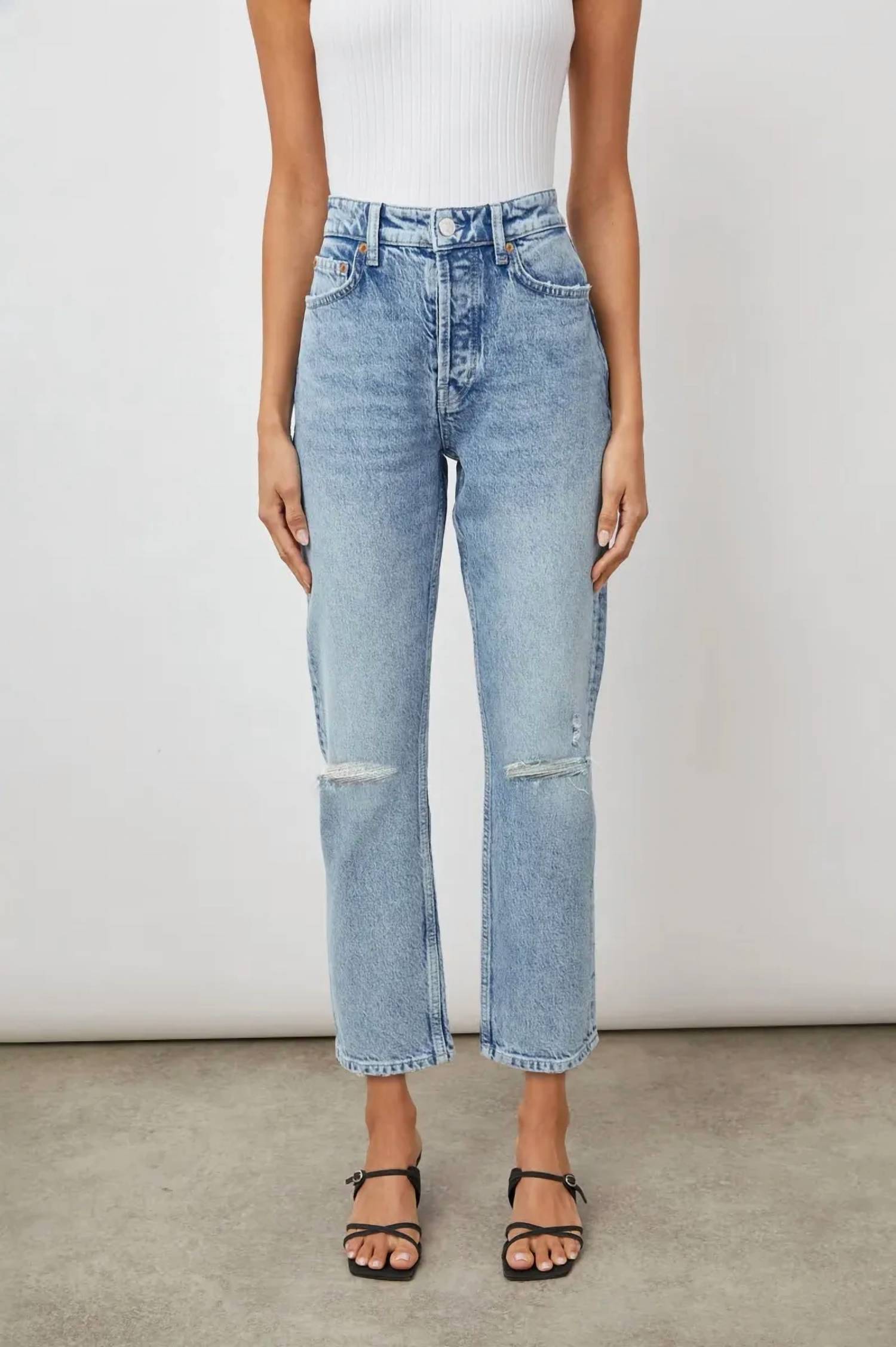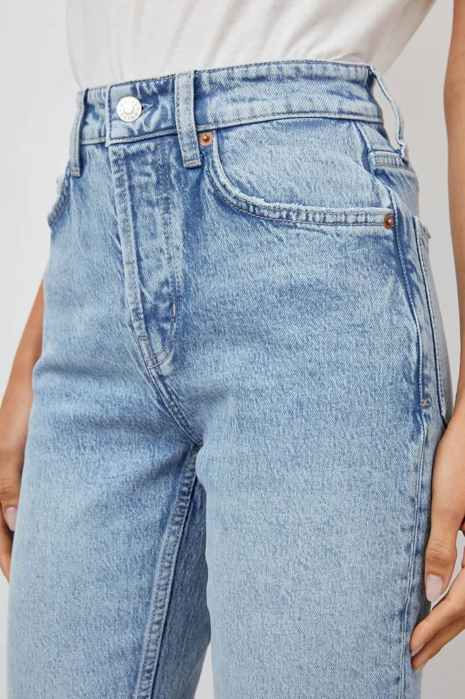 This classic straight leg jean has a perfect fit and goes with just about everything. Elevate your denim collection with the Culver Slim Straight Jeans by Rails, crafted for both style and comfort. These high-rise jeans in Snowbird Distressed offer a solid pattern with a trendy grunge appeal, highlighted by a bright light wash and distressed details. Composition includes 40% Recycled Cotton, 42% Lyocell, 17% Cotton, and 1% Elastane, providing a soft hand feel and ample stretch. Closure: Zip closure. Care: Machine wash. With each Rails Denim purchase, a year's worth of safe water access is provided to someone in need through Water.org.