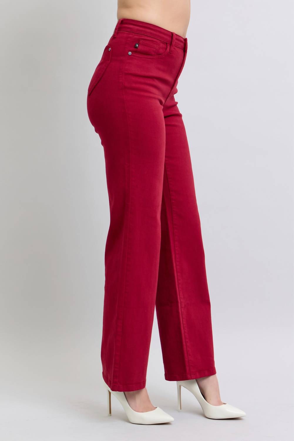 Discover the Judy Blue Scarlet Heart Pocket Straight Leg Jeans, your go-to for style and comfort. These high-rise jeans, crafted from a 93% Cotton, 6% Polyester, and 1% Spandex blend, boast a classic straight-leg fit and a charming heart pocket detail. With an inseam measuring 32.5" and a front rise of 11", they ensure a flattering silhouette. Closure: Button. Care: Machine wash and tumble dry for easy maintenance. Perfectly blending function and fashion, these jeans are designed for those who value quality and versatility.