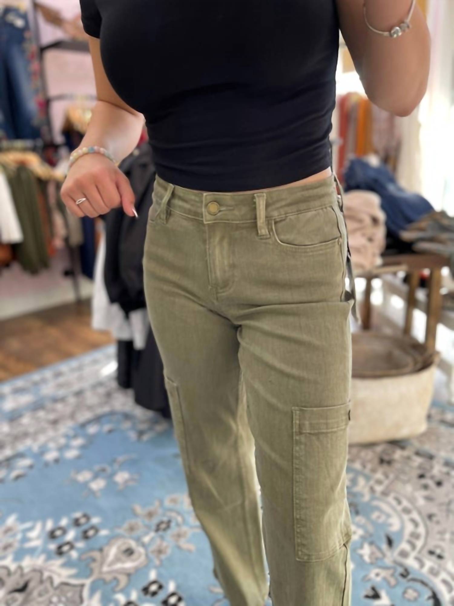 These are just as their name suggest a spin on the basic army green straight leg pant. They feature cute side pockets, non functional pockets on the back, pintuck waist on the back for a more flattering look, they are midrise but run about 9.5 inches which makes them perfect for high waist lovers as well as mid rise lovers alike. They have lots of stretch, Meghan is wearing a size 25 and is 5.2. These are suppose to be ankle pants but as you know, if we are petite they fit us as regular if you are tall, they will fit you like they were intended, either way they look great! Order down one size for a tighter fit or your usual for a comfortable no worries fit. By OAT New York.