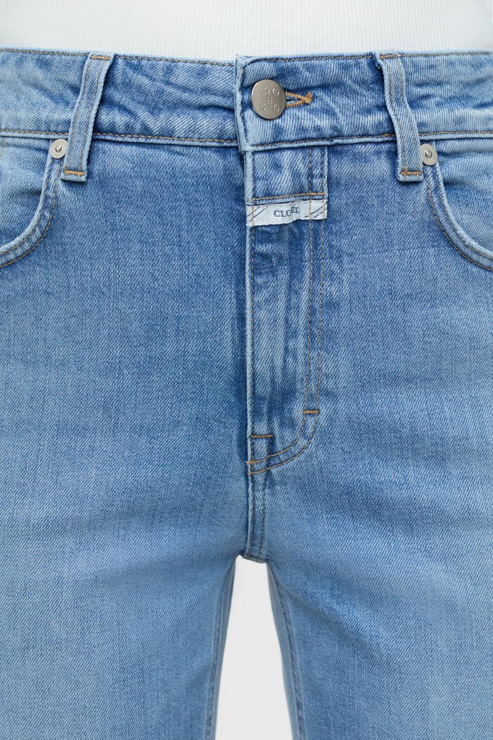 Pair these straight leg jeans with flats, sandals or even heels! You can't go wrong. Discover the CLOSED Milo Straight Jeans, a perfect addition for your streetwear-inspired wardrobe in light blue. Featuring a slim fit with a straight leg style, these mid-rise jeans offer a solid pattern crafted from a comfortable cotton blend. Originating from Italy, they come with functional pockets and a classic button closure. Measuring a rise of 10.03" and an inseam of 27/32, these jeans are machine washable for easy care.