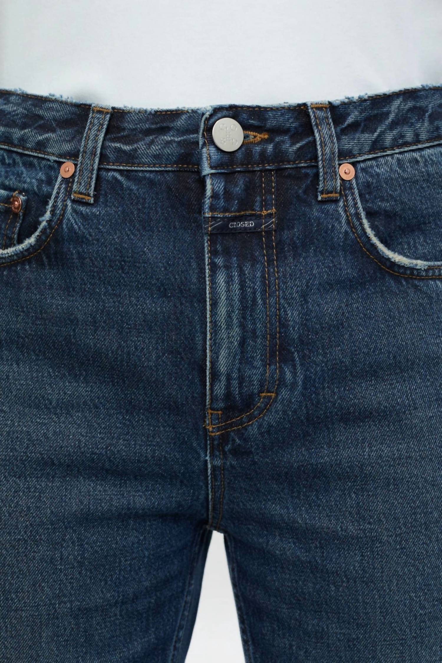These must-have jeans are fit to perfection. Meet the Closed Roan Jean by CLOSED, a chic dark blue staple for your denim collection. This solid, high-rise design features a classic straight-leg with a relaxed fit and button closure, crafted from 100% cotton. The jeans offer a tasteful salt-and-pepper effect with practical pockets, flaunting dimensions such as a 11" front rise, 29.9" inseam, and 7.5" leg opening. Care is made simple with machine washing and tumble drying, aligning perfectly with your busy lifestyle.