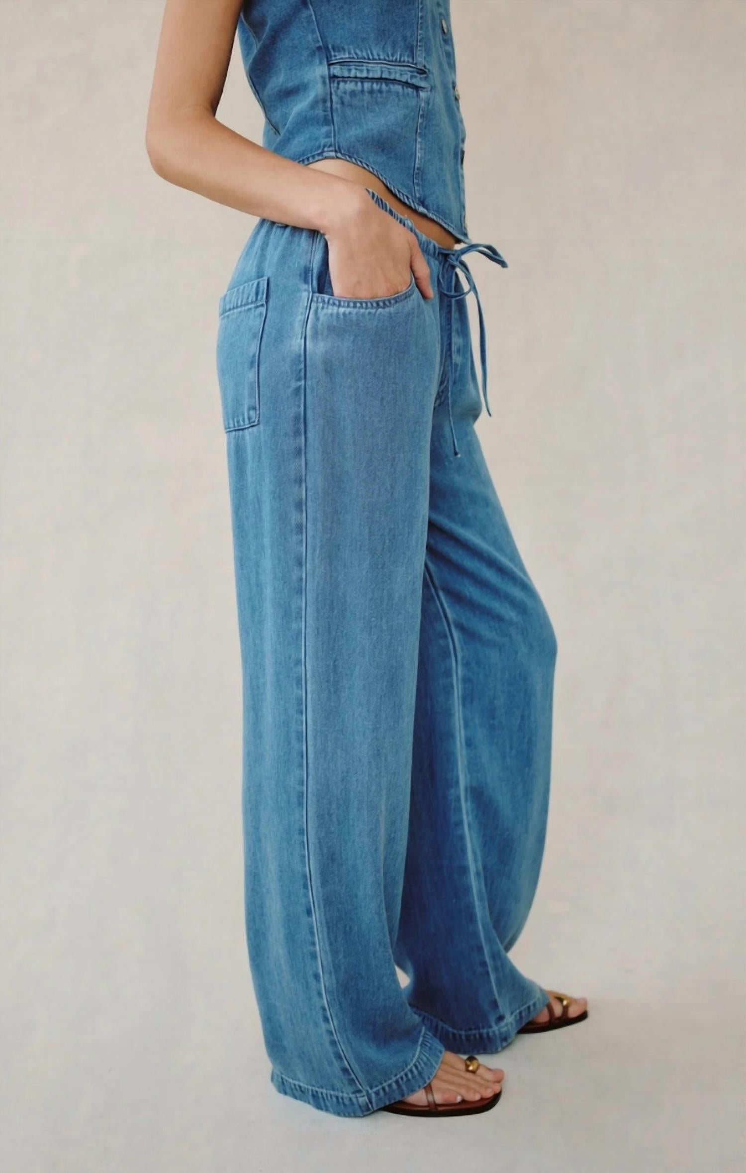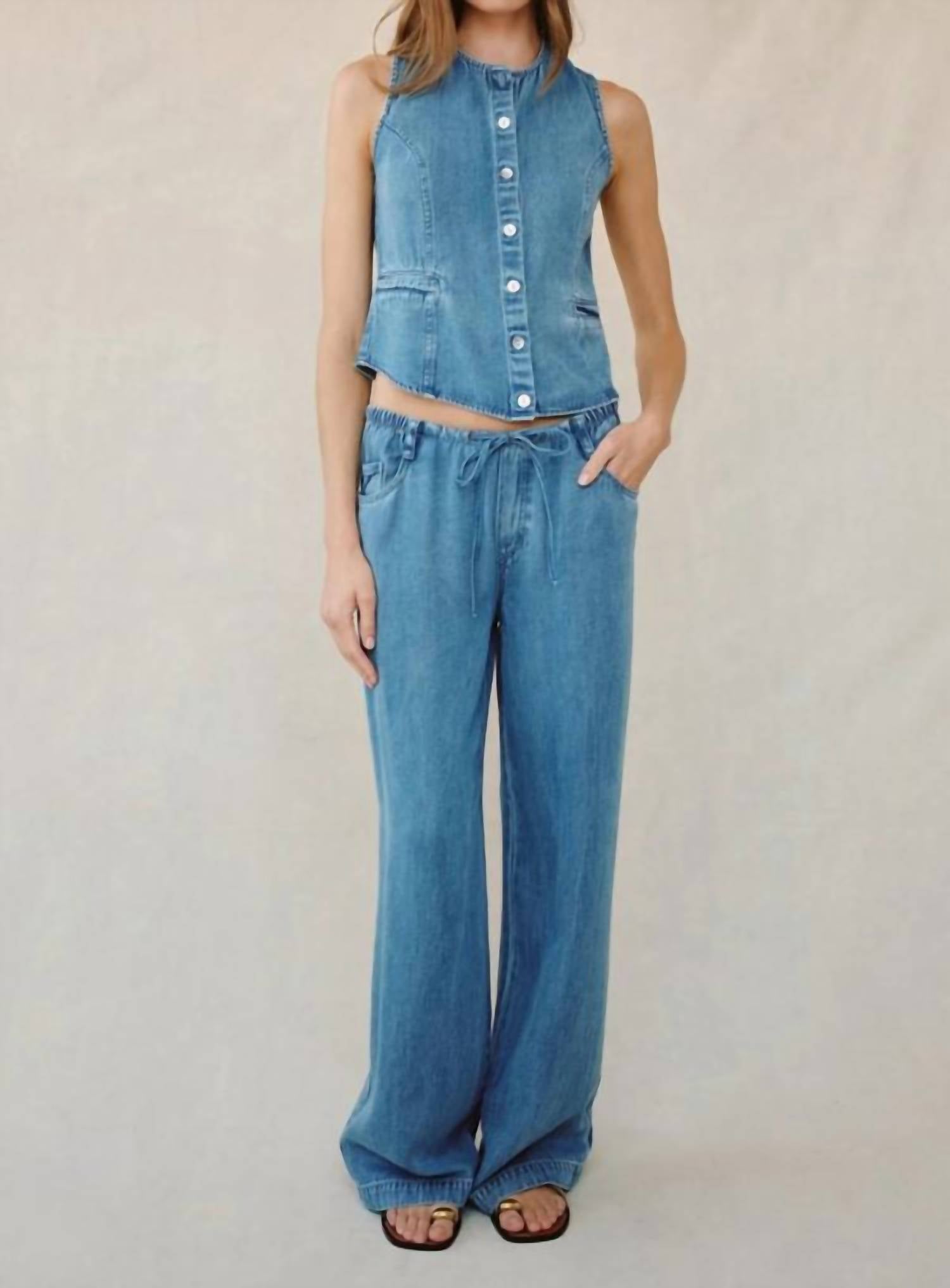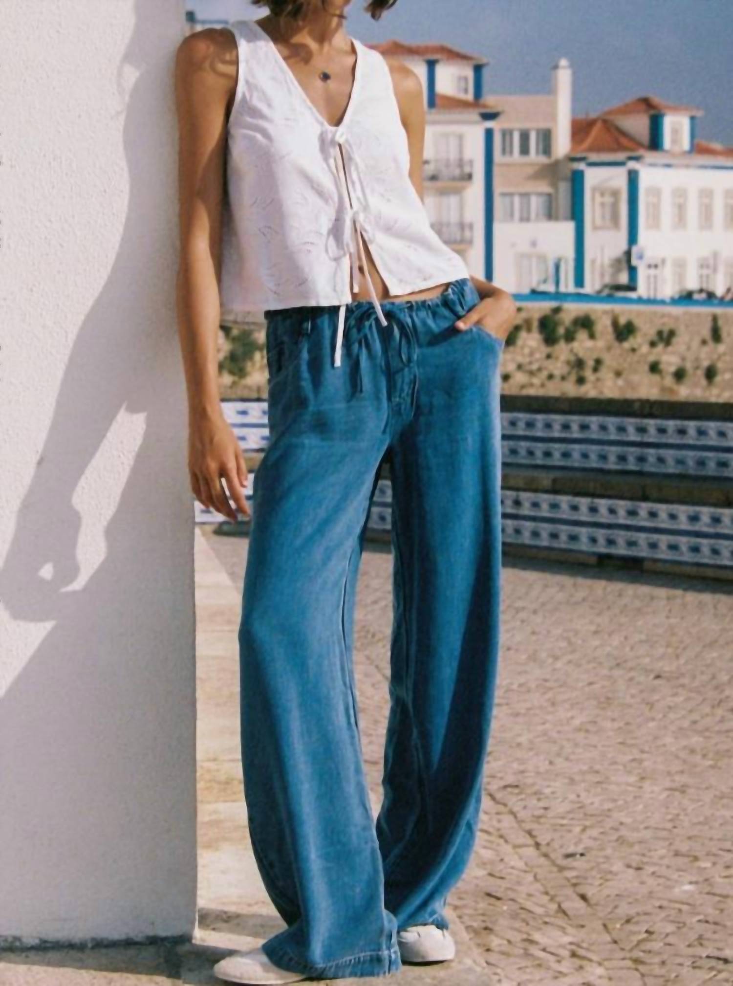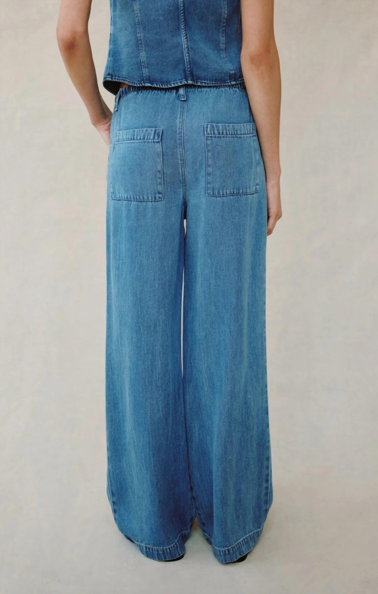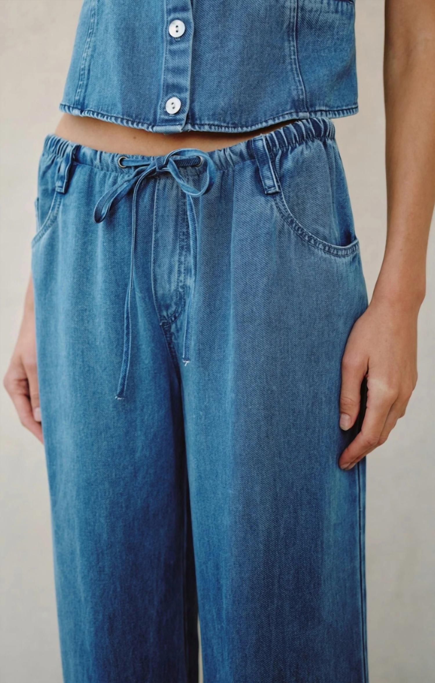 This classic straight leg jean has a perfect fit and goes with just about everything. Discover the comfort of Bella Dahl's Drawstring Relaxed Jean, designed in a solid, medium vintage wash for a timeless appeal. Crafted from 100% Lenzing Tencel Lyocell, these pants feature a relaxed fit with practical pockets and a convenient pull-on closure. The classic straight leg and mid-rise waist offer versatility for various occasions, from travel to workwear. Care: Machine wash and tumble dry for easy maintenance.