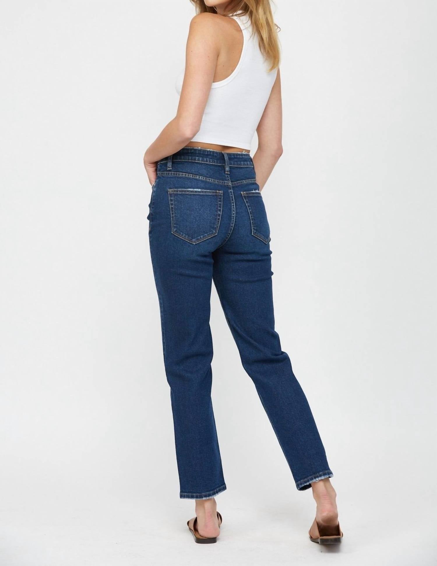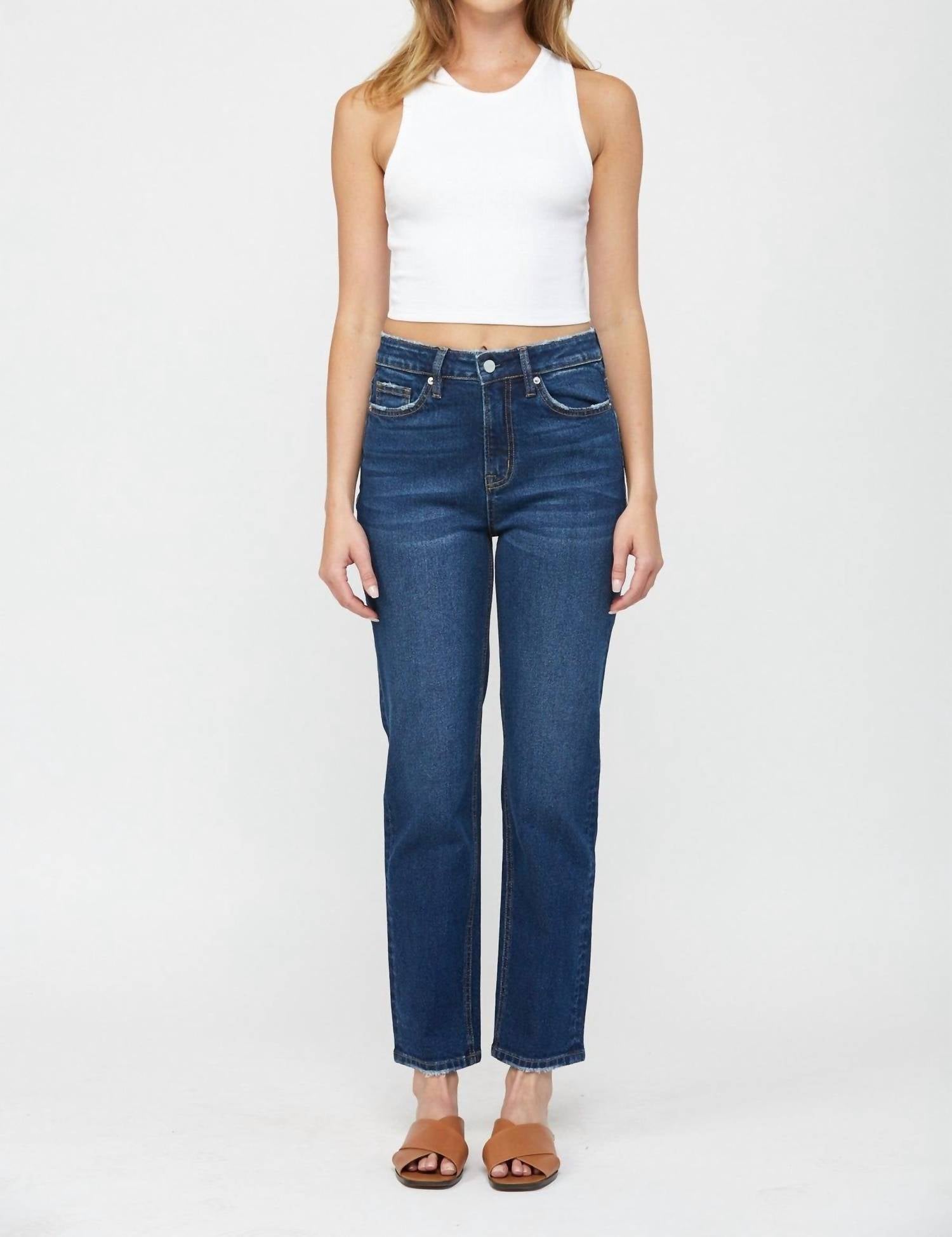 Introducing the MICA Denim Monfil Super High Wedgie Straight Leg Jeans, a dark wash staple for any wardrobe. These women's jeans boast a high-rise waist, offering a flattering fit that accentuates the shape with a regular fit and straight-leg style. Crafted from a cotton blend—94% cotton, 5% poly, and 1% spandex—they provide just the right amount of stretch for comfort and movement. Closure: Zip closure. Care: Machine wash and tumble dry. Perfect for a stylish 90s fashion look, ideal for summer occasions like dinner parties or holiday celebrations.