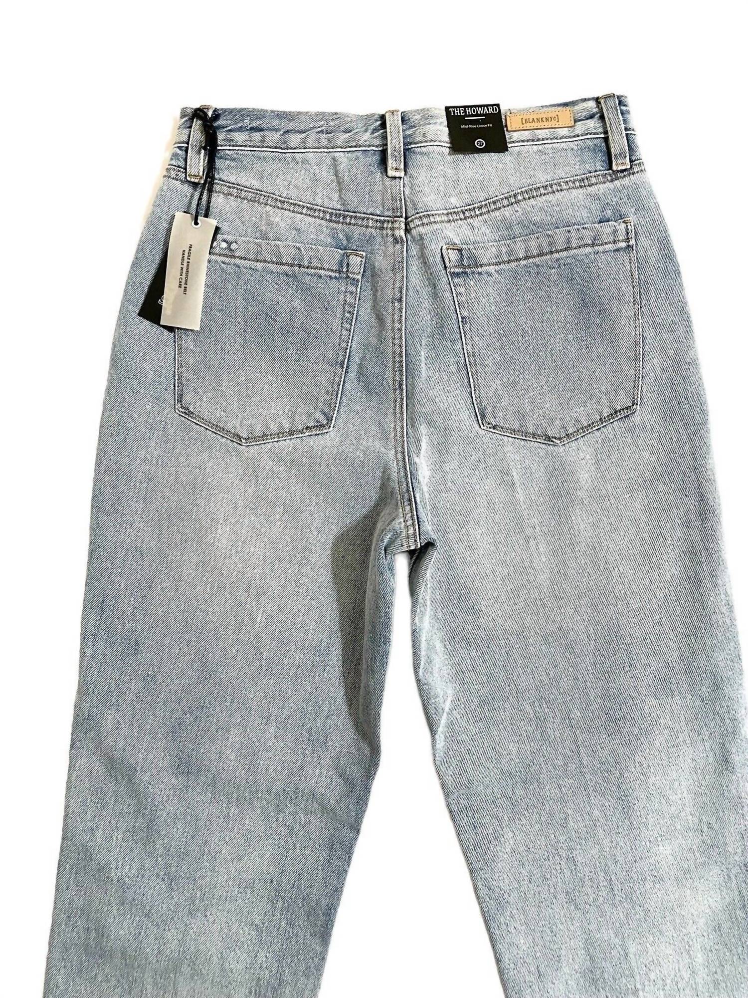 Experience timeless style with the Women's Howard High Rise Straight Leg Jean by BLANKNYC, crafted from 100% cotton denim. These classic blue jeans offer a relaxed, '90s-inspired fit with a flattering high rise of 12.5", making them perfect for effortless weekend wear. Featuring a convenient zip fly with button closure and a five-pocket construction, they provide both style and functionality. With an inseam of 28" and leg opening at the hip of 11.5", they offer a comfortable fit, while being easy to maintain with a machine wash cold care.