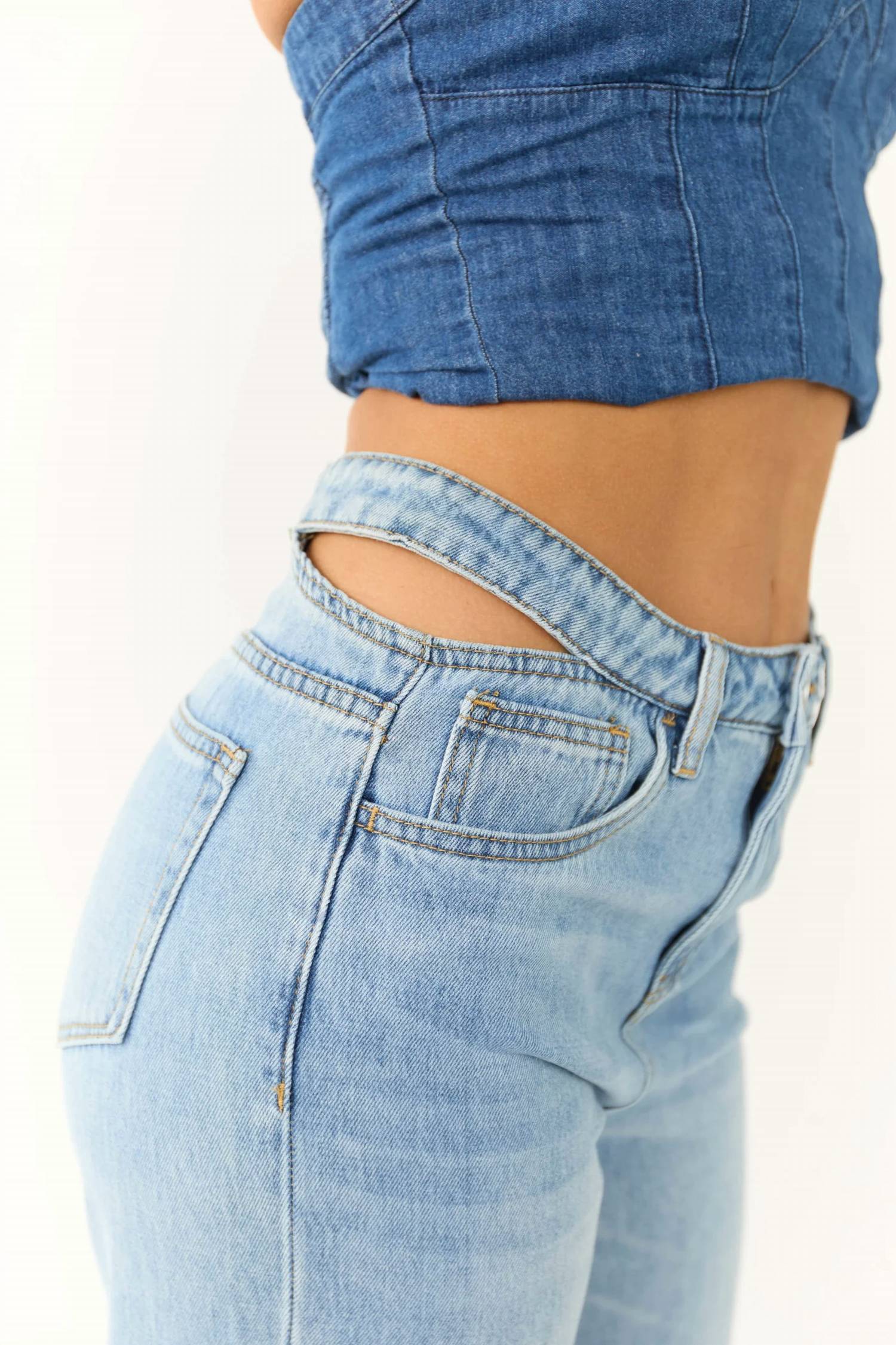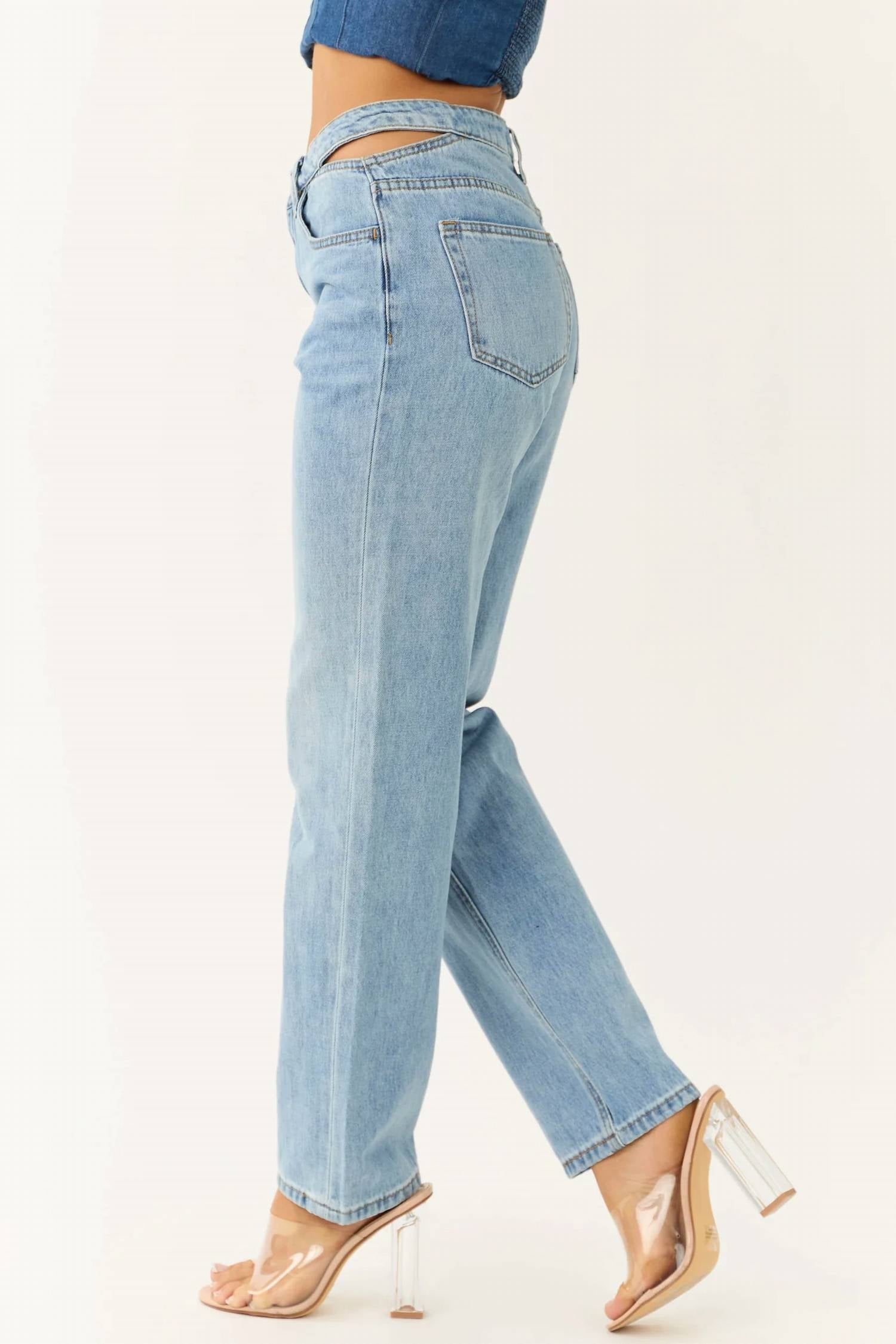 Ceros - Cutout Waistband Detail Straight Leg Jeans
