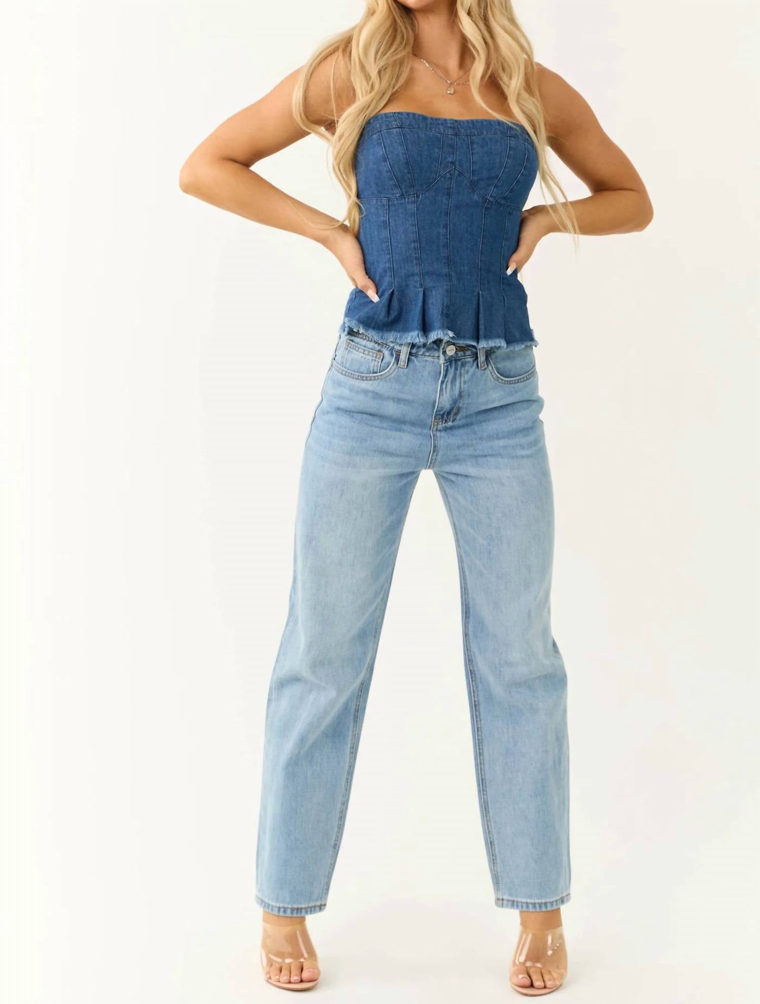 These must-have jeans are fit to perfection. Designed for women who appreciate comfort and style. Crafted from 100% non-stretchy cotton. High-rise jeans feature a straight-leg cut and a loose-fitting waistband. Ensuring a comfortable fit. Include convenient belt loops, a classic five-pocket design, and a zipper fly with a button closure. For best care, machine wash cold inside out with like colors, and tumble dry on low heat.