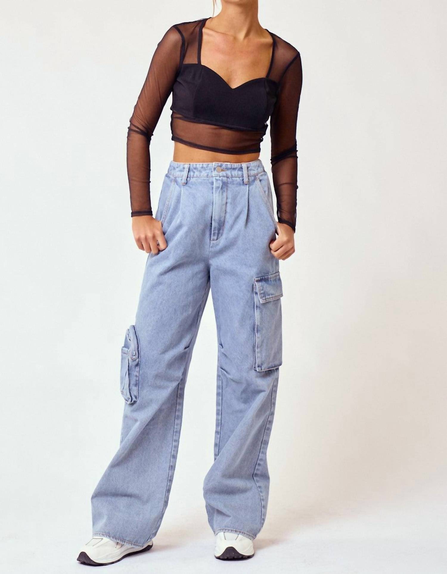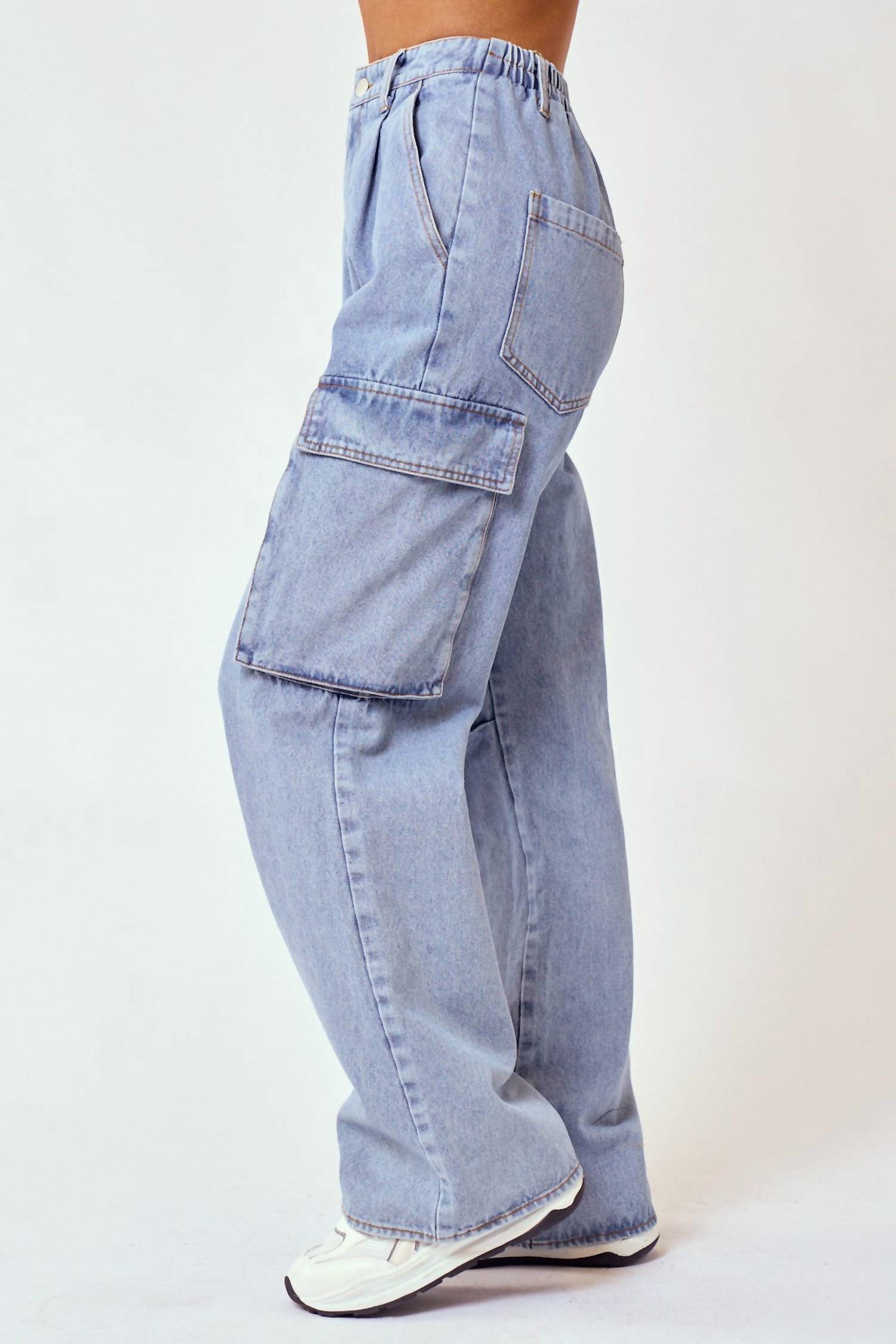 Blue Blush - Women's Denim Cargo Long Pants
