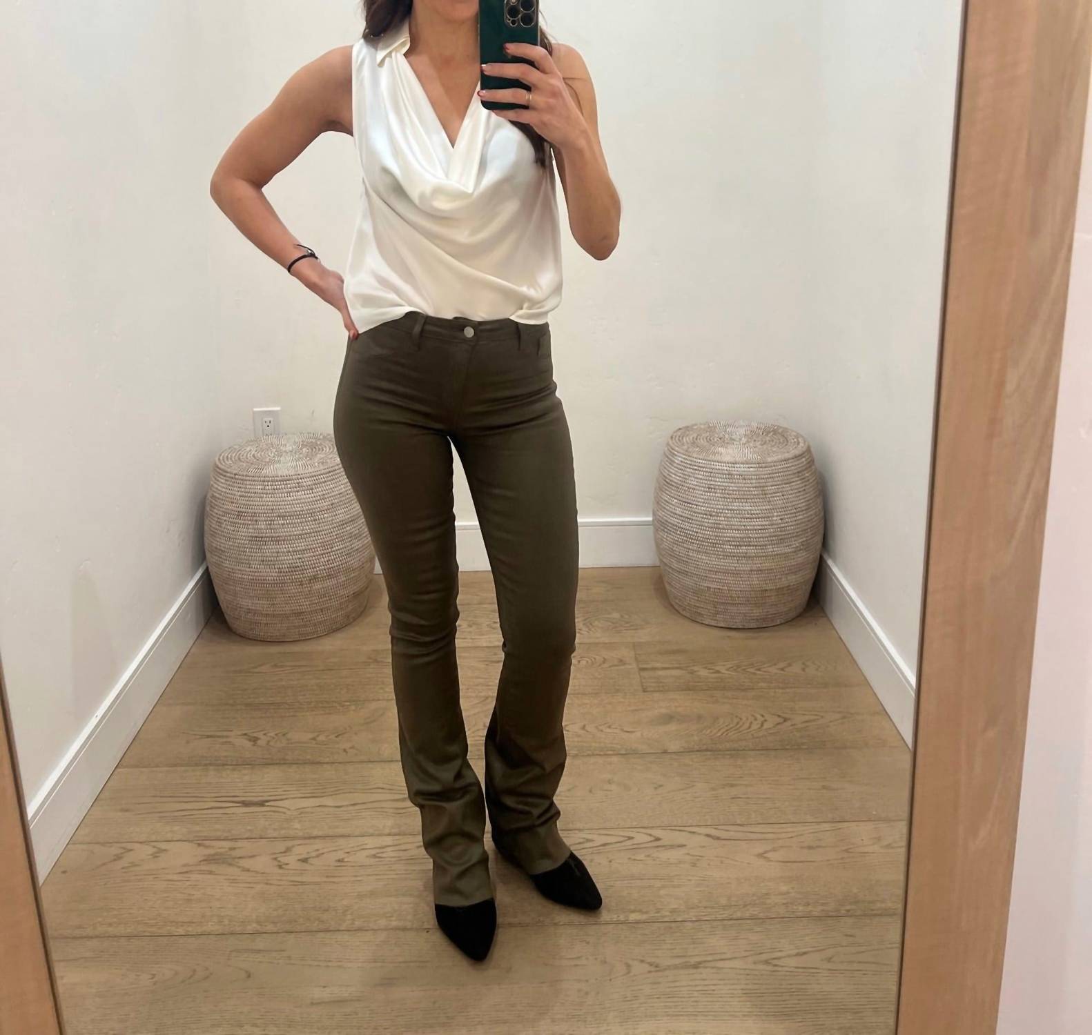 Pair these straight leg jeans with flats, sandals or even heels! You can't go wrong. Discover the Women's Ruth Highrise Straight Raw Hem Jeans by L'Agence, crafted in premium coated stretch denim in a sophisticated slate grey. Featuring a high-rise design with a contoured waistband, these jeans fit snugly through the hip and thigh, transitioning to a straight leg with a chic raw hem. This classic fit includes a practical five-pocket construction and a front zip closure, ideal for your spring streetwear or vacation wardrobe. Enjoy versatile styling with this timeless and solid patterned piece.