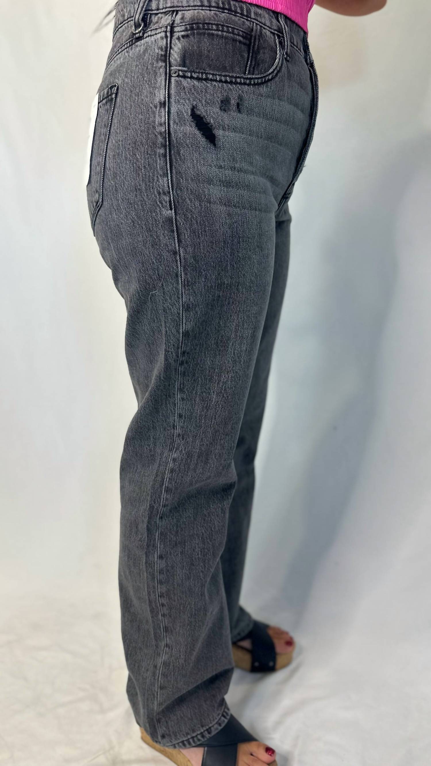 Pair these straight leg jeans with flats, sandals or even heels! You can't go wrong. Introducing the Shadow Jeans by KanCan, a timeless piece in versatile grey that will effortlessly elevate your wardrobe. These high-rise, 90's-inspired straight-leg jeans feature a slight distress detail by the front pockets, adding a touch of edge to your look. The solid pattern and comfort fit make them a reliable choice for any casual outing. Closure: Button closure. Care: Wash with colors on cold, low tumble, hang to dry. Fit: True to size, with the model wearing a size 5/26.