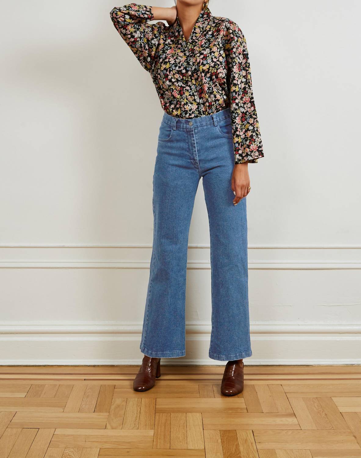 High waisted wide straight leg jean, zip fly