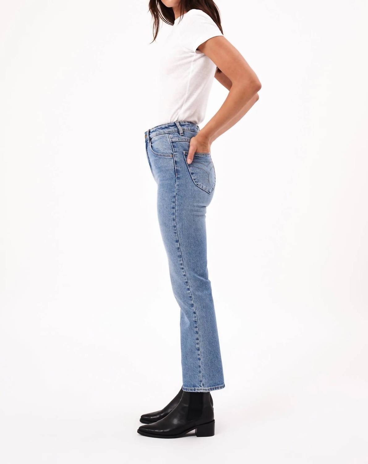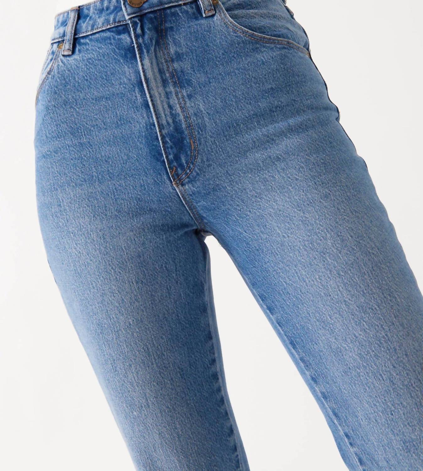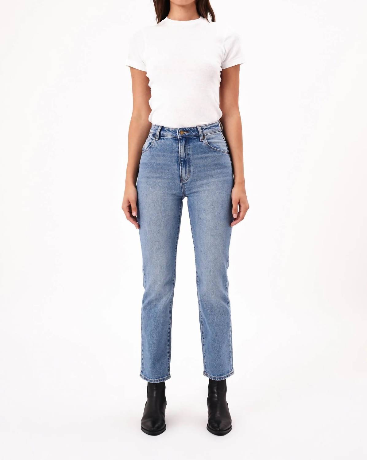 These must-have jeans are fit to perfection. Introducing the Original Straight Jean by Rolla's in Brad Blue, perfect for a chic streetwear look with a feminine flair. These high-rise jeans boast a regular fit with a slightly relaxed seat, featuring Rolla's signature back pocket stitching for a flattering silhouette. Crafted from a 99% Cotton and 1% Elastane blend, they offer comfort and style with light wash finish and signature gold-toned trims. Closure: Zip closure. Care: Machine wash. Dimensions: Rise - 28 cm / 11 inch, Inseam - 72 cm / 28 inch, Hem - 38 cm / 15 inch. Model is 167.5 cm tall, wearing size 9/27.