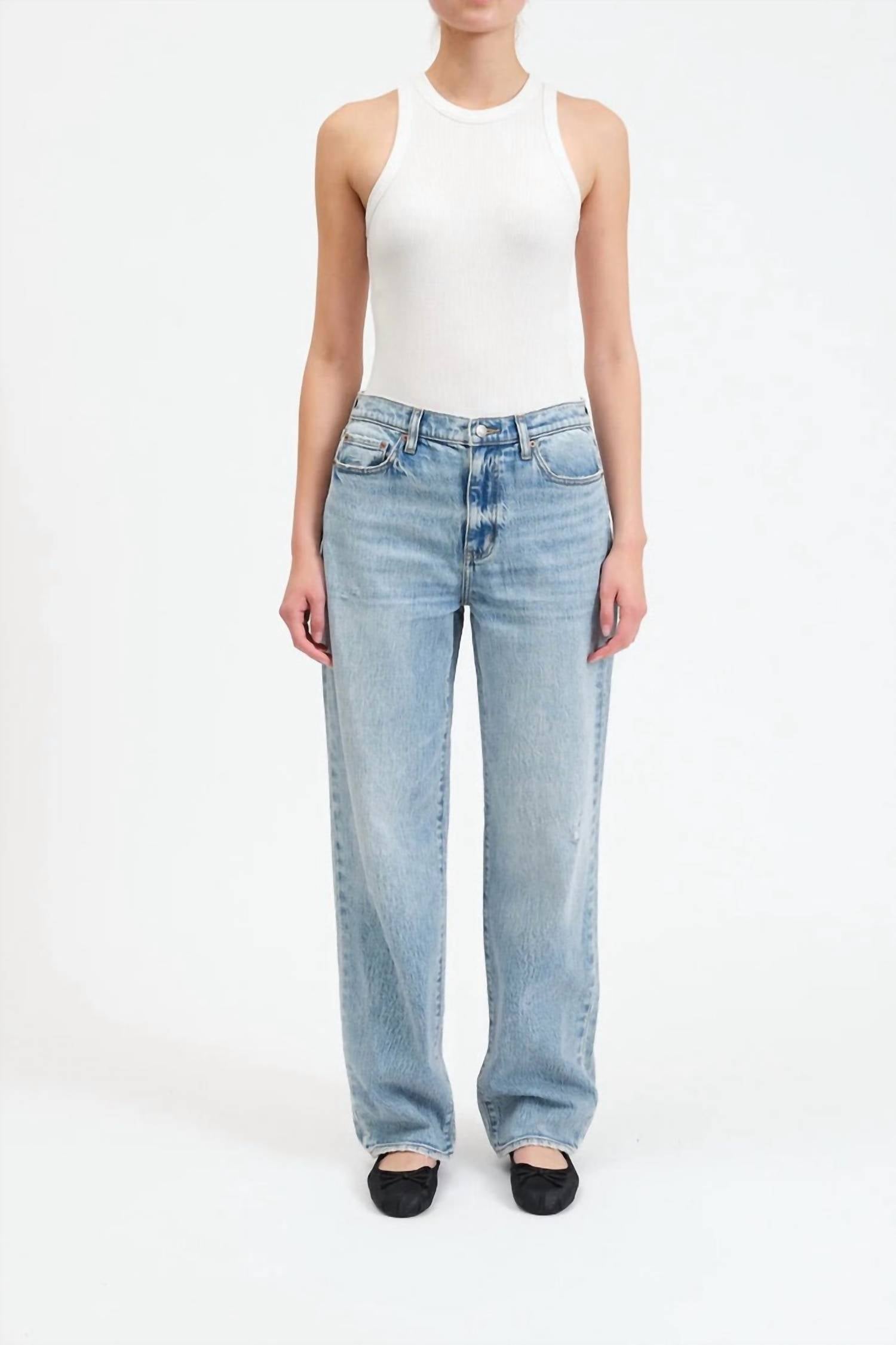 These must-have jeans are fit to perfection. Introducing the 1999 Slouch Jean by DAZE, the ultimate embodiment of '90s-inspired fashion with a relaxed fit. These light wash jeans in First Place Vintage color feature a mid-rise waist, a loose-fitting leg with an inseam of 32 inches, and an 18.5-inch leg opening, offering a comfortable yet stylish silhouette. Crafted from a cotton blend that incorporates organic cotton, these jeans have a unique "Tough Love" fabric that provides a vintage, rigid feel with a hint of stretch. Equipped with a zip closure and pockets, these straight-leg jeans are easy to maintain with machine wash care instructions.