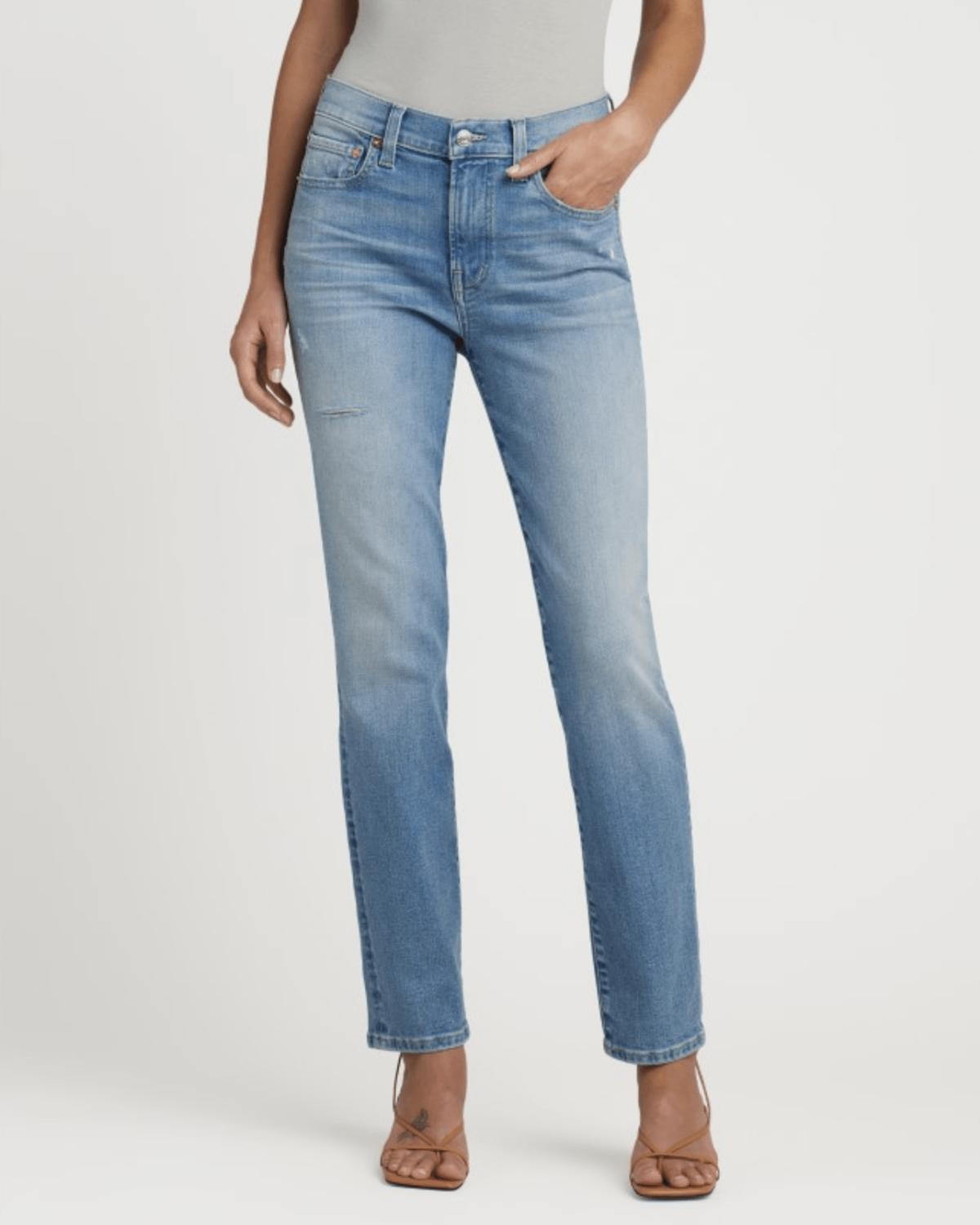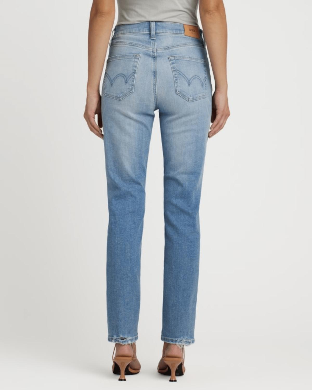 This classic straight leg jean has a perfect fit and goes with just about everything. Meet the Bree Regular Hem Jeans by EDWIN, an essential for every wardrobe with its relaxed fit and versatile straight leg design. Crafted from denim, these jeans feature a button closure and a flattering high rise of 9.75 inches. The ankle-length inseam of 27 inches ensures a sleek look that pairs perfectly with any footwear, from slides to heels. Care for these light wash, solid pattern jeans by machine washing and hanging dry, capturing the timeless vibe of '90s fashion.