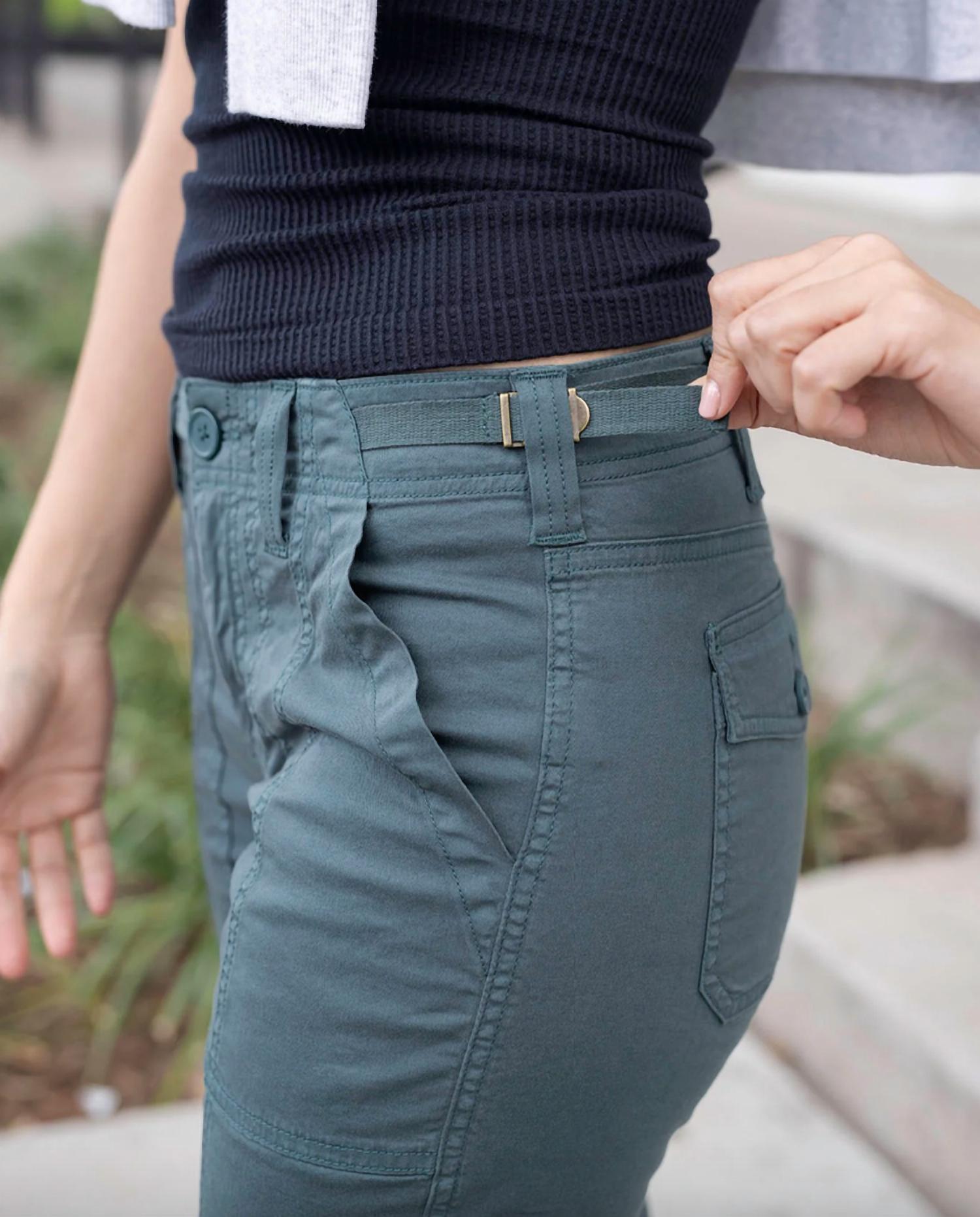 These must-have jeans are fit to perfection. Introducing the Camper Cargo Pants by Grace and Lace, designed to be your go-to for adventure-ready style. These green, solid-patterned straight-leg pants boast a relaxed fit and a mid-rise waist, made from a comfortable 98% cotton and 2% spandex poplin blend. With functional front pockets, button tab back pockets, and adjustable waist pull tabs, these pants offer both comfort and practicality. Closure: Button closure. Perfect for fall streetwear, they can be worn full length or cuffed for a trendy cropped look.
