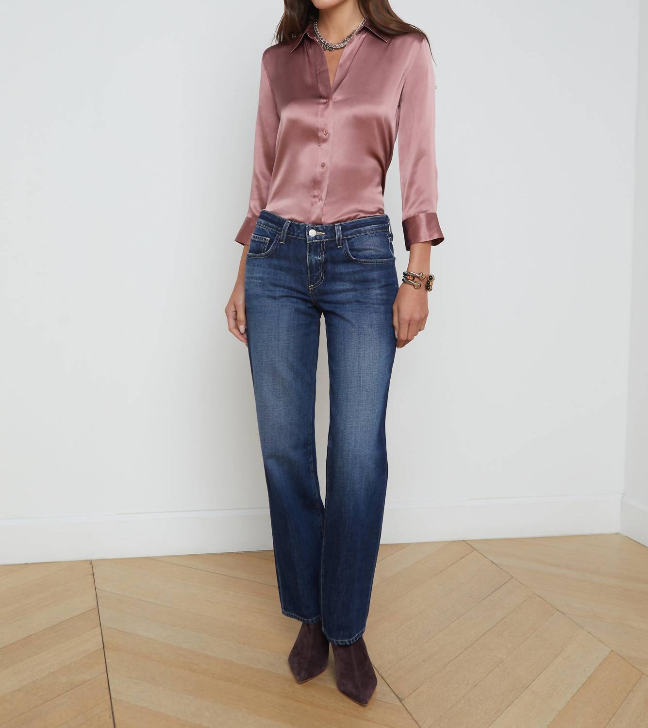 This classic straight leg jean has a perfect fit and goes with just about everything. Introducing the Women's Trenton Tatum Low Rise Stovepipe Jean by L'Agence, a must-have from the Fall '24 Collection for streetwear enthusiasts. Crafted from 100% Cotton, these dark blue wash jeans feature a classic fit with a straight leg style, accentuated by a zip closure and functional pockets. With a rise of 8.5", a 31" inseam, and a 16.5" leg opening, these jeans are designed for a cool, easy look. Model is 5'10" wearing size 25, making these a perfect addition to your spring vacation wardrobe.