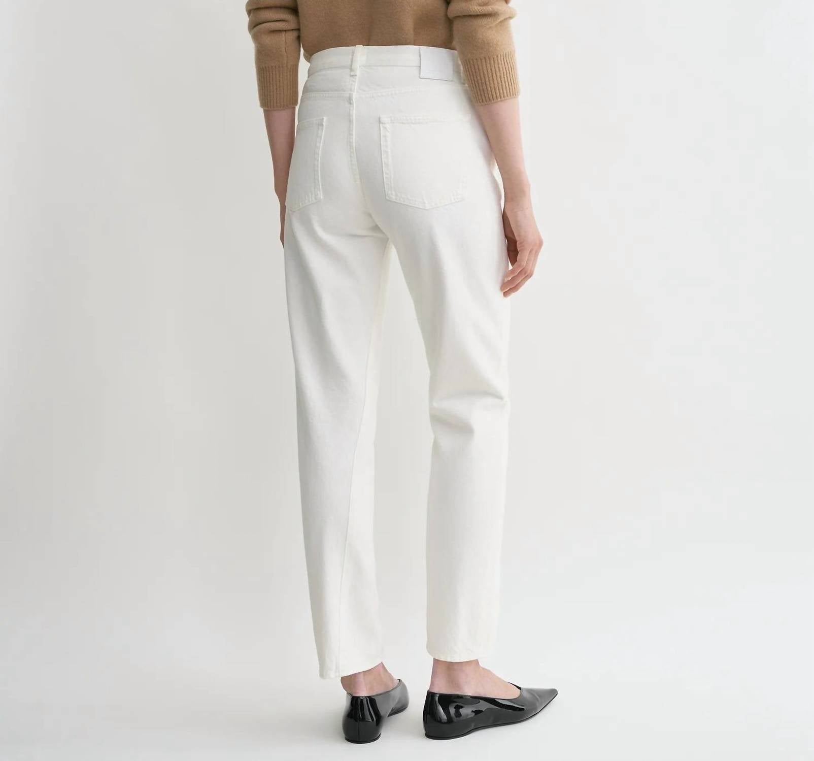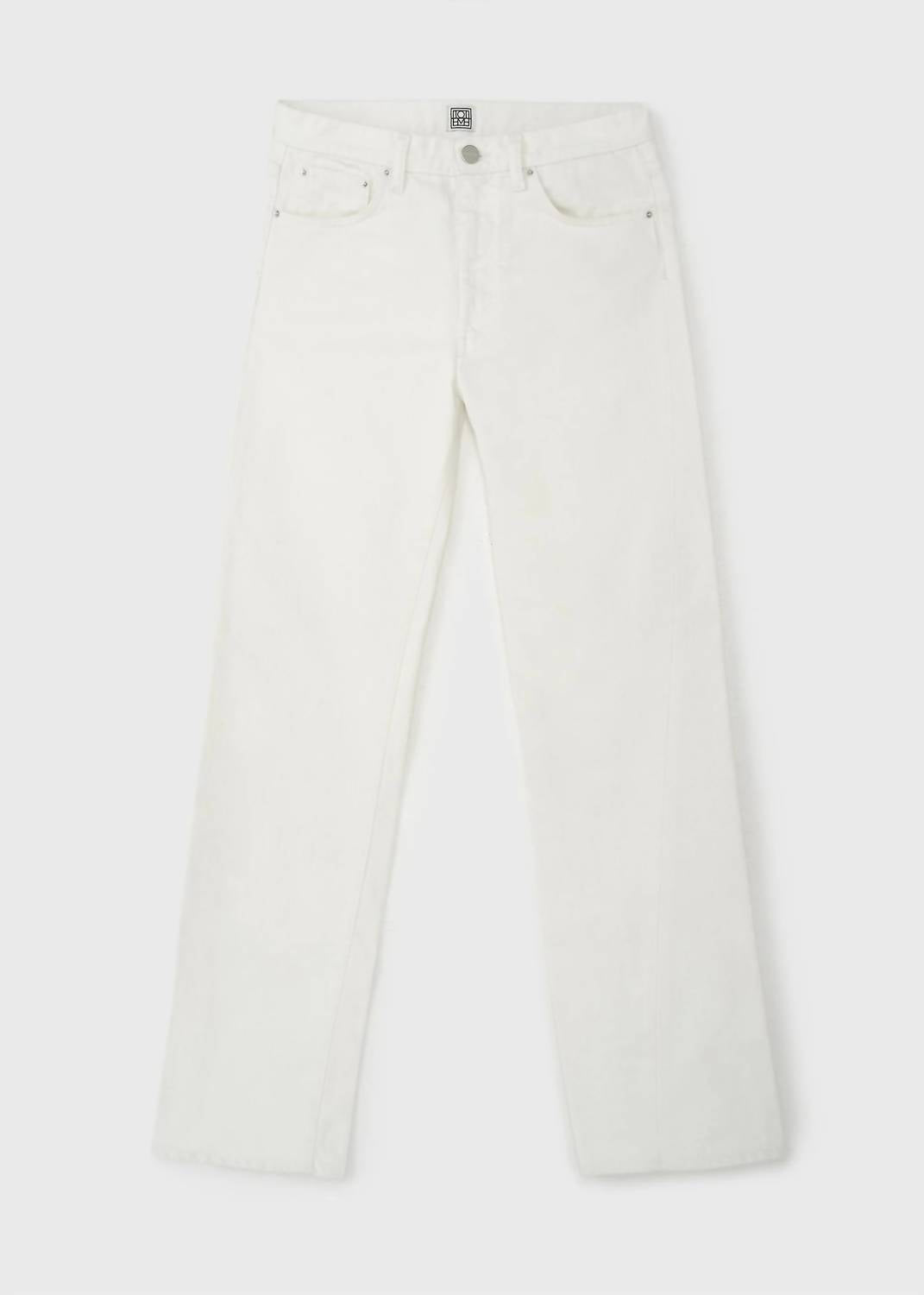 These must-have jeans are fit to perfection. Discover the Off-White Twisted Seam Denim Jeans by TOTEME, an exceptional piece crafted in Italy from 100% organic cotton for an eco-conscious choice. Featuring a high-rise and regular fit, these jeans are styled with twisted side seams that lead to slightly tapered, cropped straight legs. The design includes classic five-pocket styling with a zipper fly and monogram leather patch for added elegance. For care, machine wash at 30°C and tumble dry.