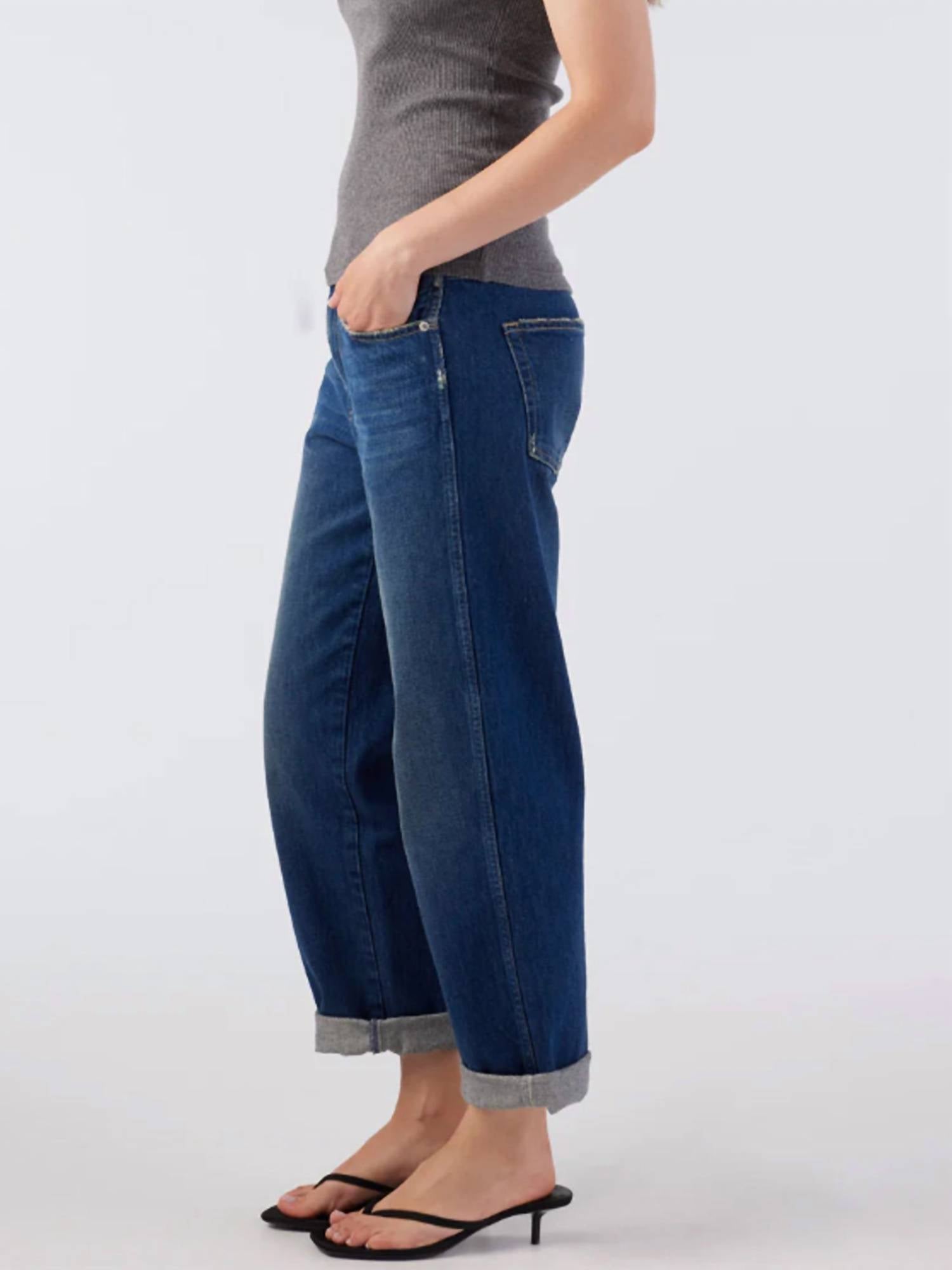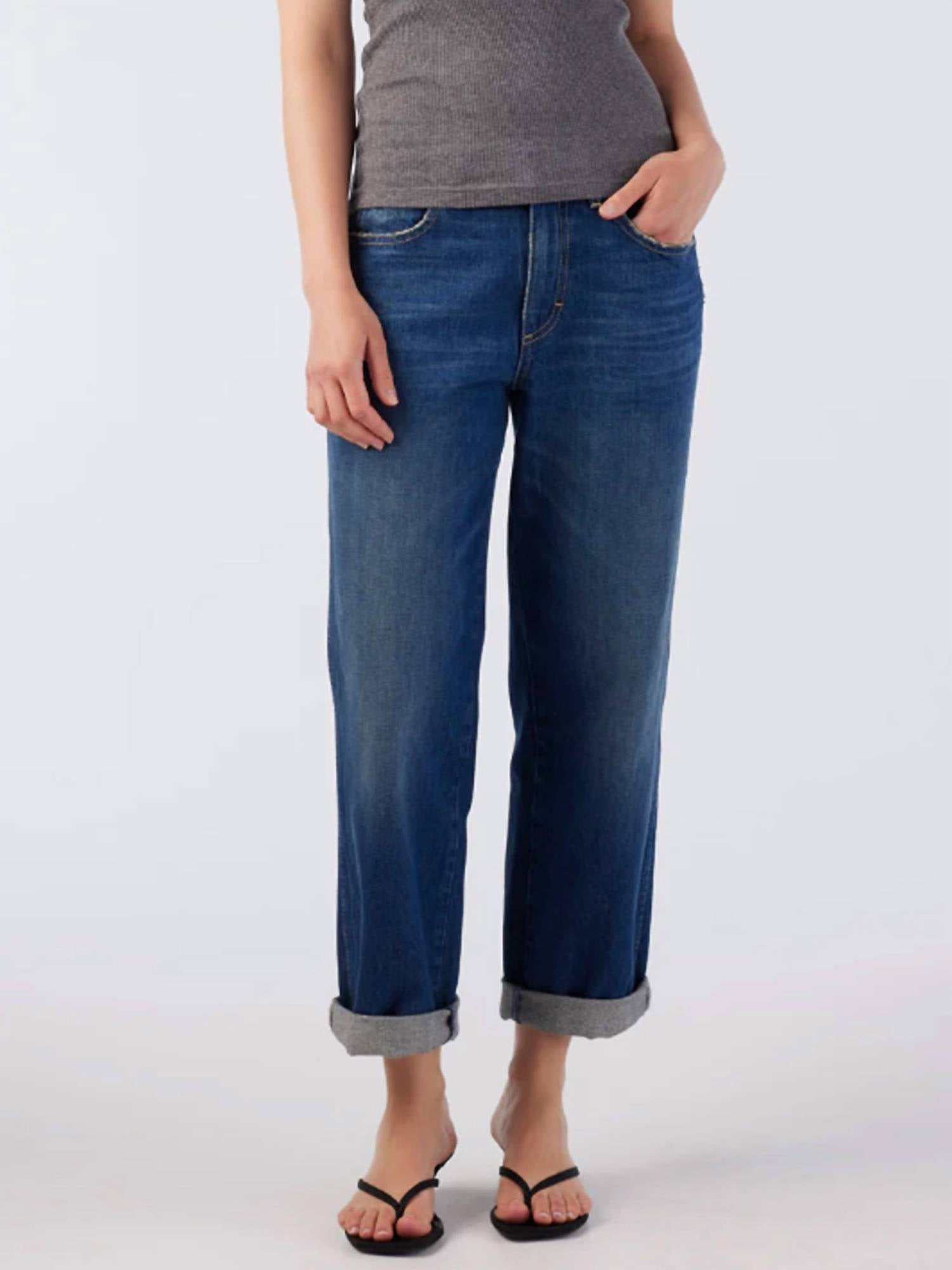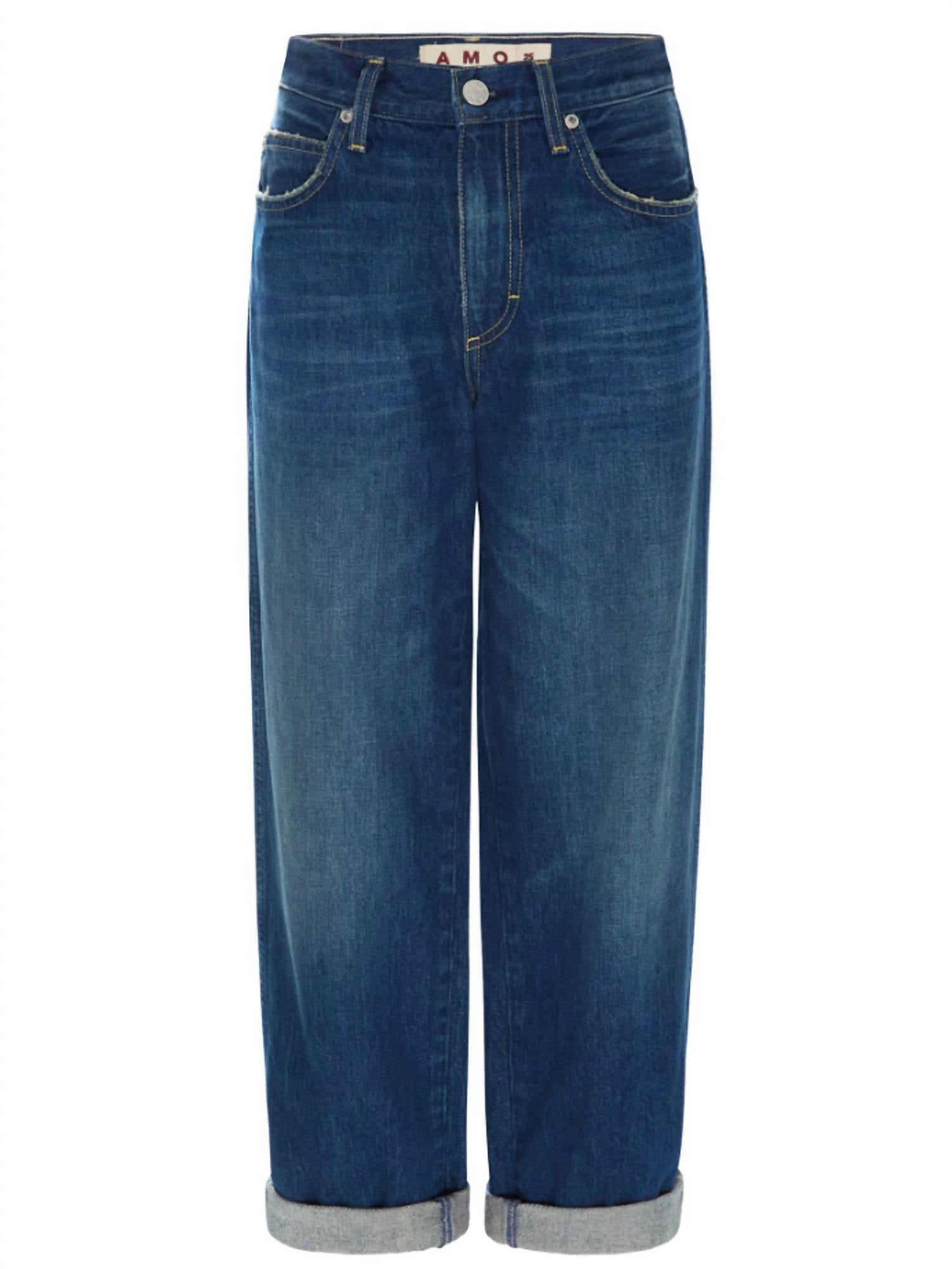 Pair these straight leg jeans with flats, sandals or even heels! You can't go wrong. Introducing the Valentina Straight Jeans by AMO in the color Dreamboat, a stylish addition to your wardrobe for that relaxed fit vibe. Crafted from 100% Cotton, these jeans have a mid-rise and feature a classic straight leg that's slightly tapered and rolled for a fresh twist on a classic fit. The jeans are made in Los Angeles and include key measurements: a 27 1/2" inseam, 11" front rise, 15" back rise, and a 17" leg opening, highlighted by a convenient zip closure. Care instructions recommend machine washing cold and tumble drying, making them versatile for any occasion, from streetwear to a dinner party.