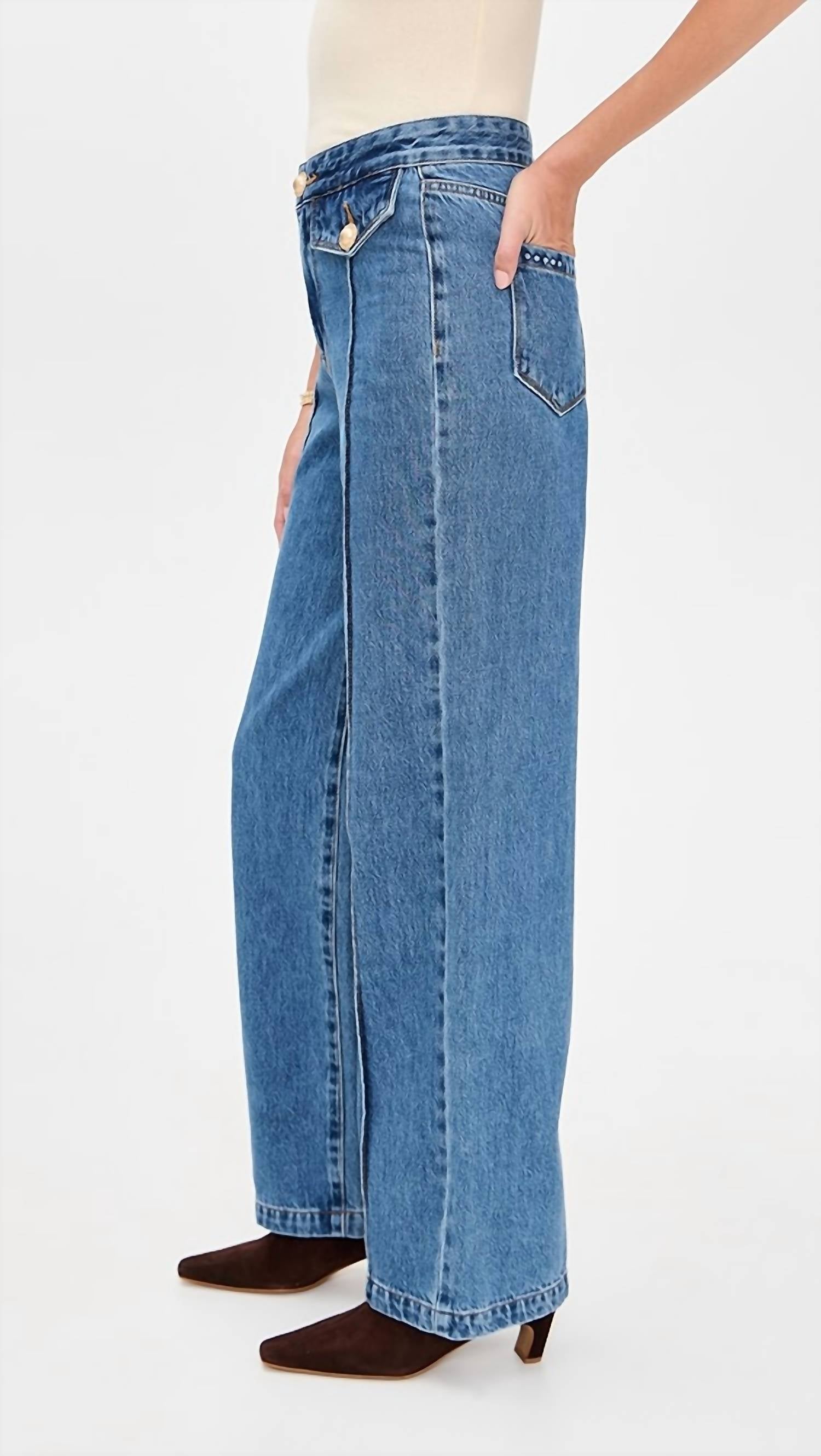 This classic straight leg jean has a perfect fit and goes with just about everything. Introducing the Hands Down Jeans by BLANKNYC in a versatile Medium Indigo, perfect for enhancing your denim collection. These jeans are tailored with a high rise and wide leg, featuring a stylish front seam detail and functional gold buttons. Made from 100% cotton, they provide a flattering regular fit, combining comfort with chic streetwear appeal. Designed for vacation-ready style, they are machine washable for easy care.