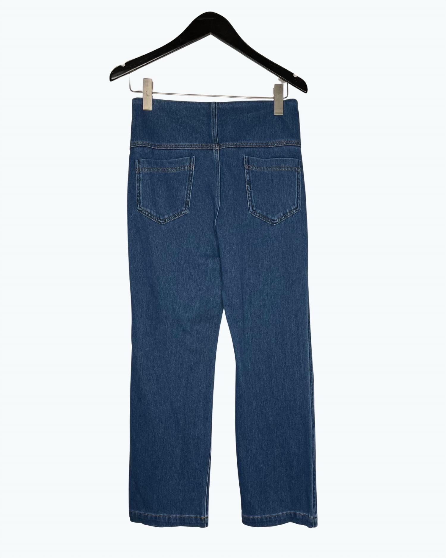 This classic straight leg jean has a perfect fit and goes with just about everything. Discover effortless style with the Women's Pull On Stretch Denim Pant by Elliott Lauren, crafted in a classic medium blue wash. These straight-leg pants feature a comfortable pull-on closure, with a composition of 95% Cotton and 5% Spandex for added stretch and soft comfort. Made in Vietnam, they're an ideal choice for streetwear or vacation, offering a simple and versatile design without zippers or buttons. Care instructions include hand washing cold separately, reshaping, and laying flat to dry, with low ironing if necessary.
