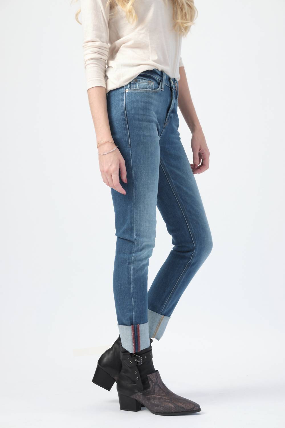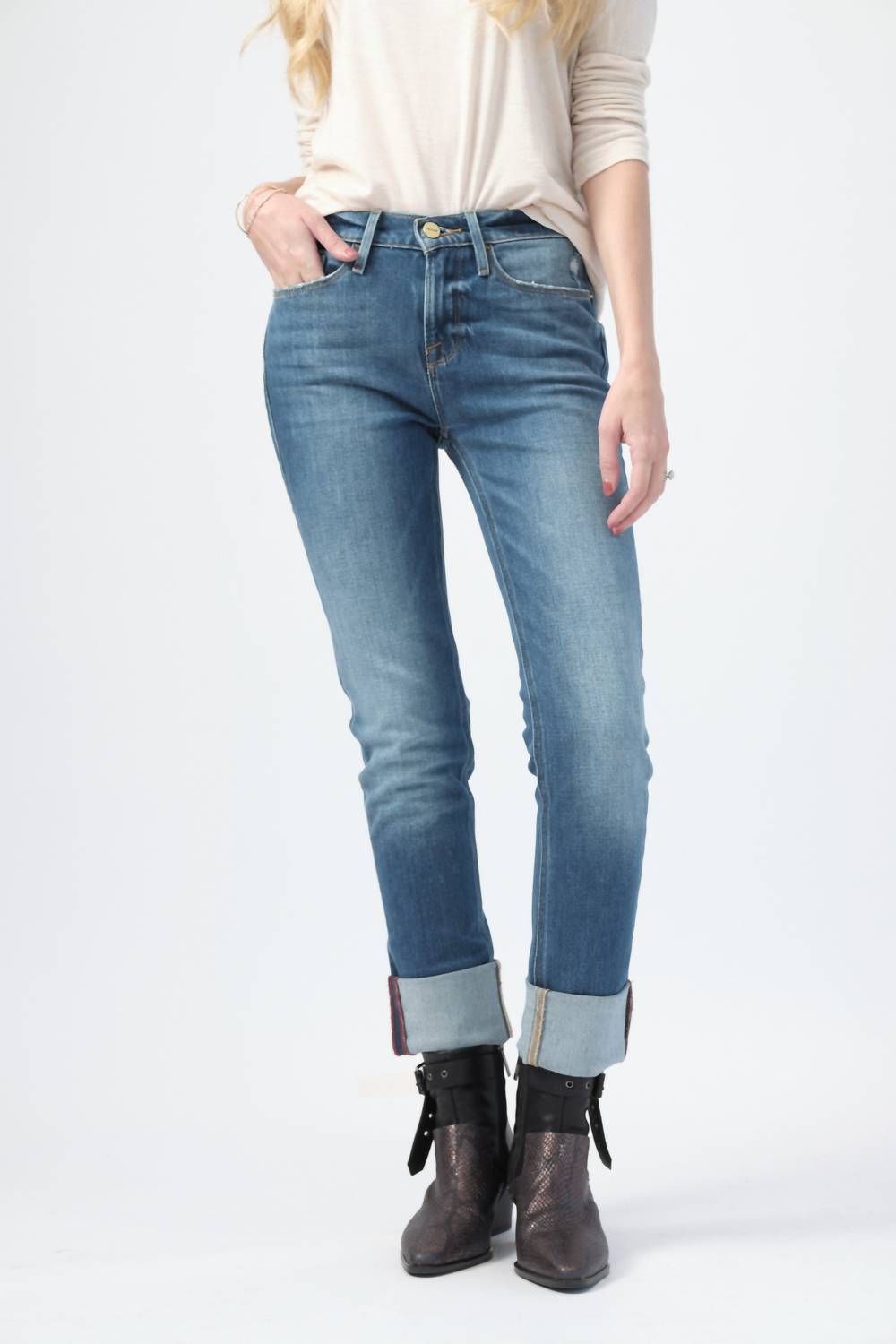 This classic straight leg jean has a perfect fit and goes with just about everything. Discover the effortless style of the FRAME Le Nik Low Slung Jean in Moma, a staple for any wardrobe. These comfort stretch denim jeans feature a relaxed fit with a mid-rise designed to sit comfortably on the hips. Stylish details include a straight leg with a toothpick leg and a 3" double cuff that sits above the ankle, enhanced by light fading and destroyed detailing for an authentic vintage wash. Made in the USA, they offer five-pocket styling with a convenient zip fly and button closure. Composition: 97.5% Cotton, 2% Polyester, 0.5% Elastane. Care: Machine wash cold, tumble dry.