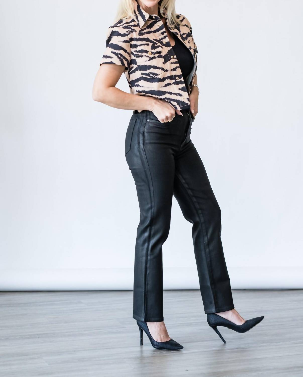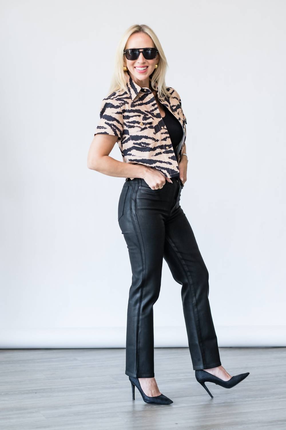 This classic straight leg jean has a perfect fit and goes with just about everything. Introducing the Le Sleek Straight Jeans by FRAME, a perfect blend of style and comfort in a chic Mood Ring Coated shade. Featuring a high rise with a relaxed straight leg that hits at the ankle, these jeans are crafted from a cotton blend of 77.5% cotton, 14% modal, 6% polyester, and 2.5% elastane. Closure: Zip closure. Care: Machine wash cold. With a 11.0" front rise, 28" inseam, and 15.75" leg opening, these jeans are designed for effortless elegance in any minimalist spring evening event.