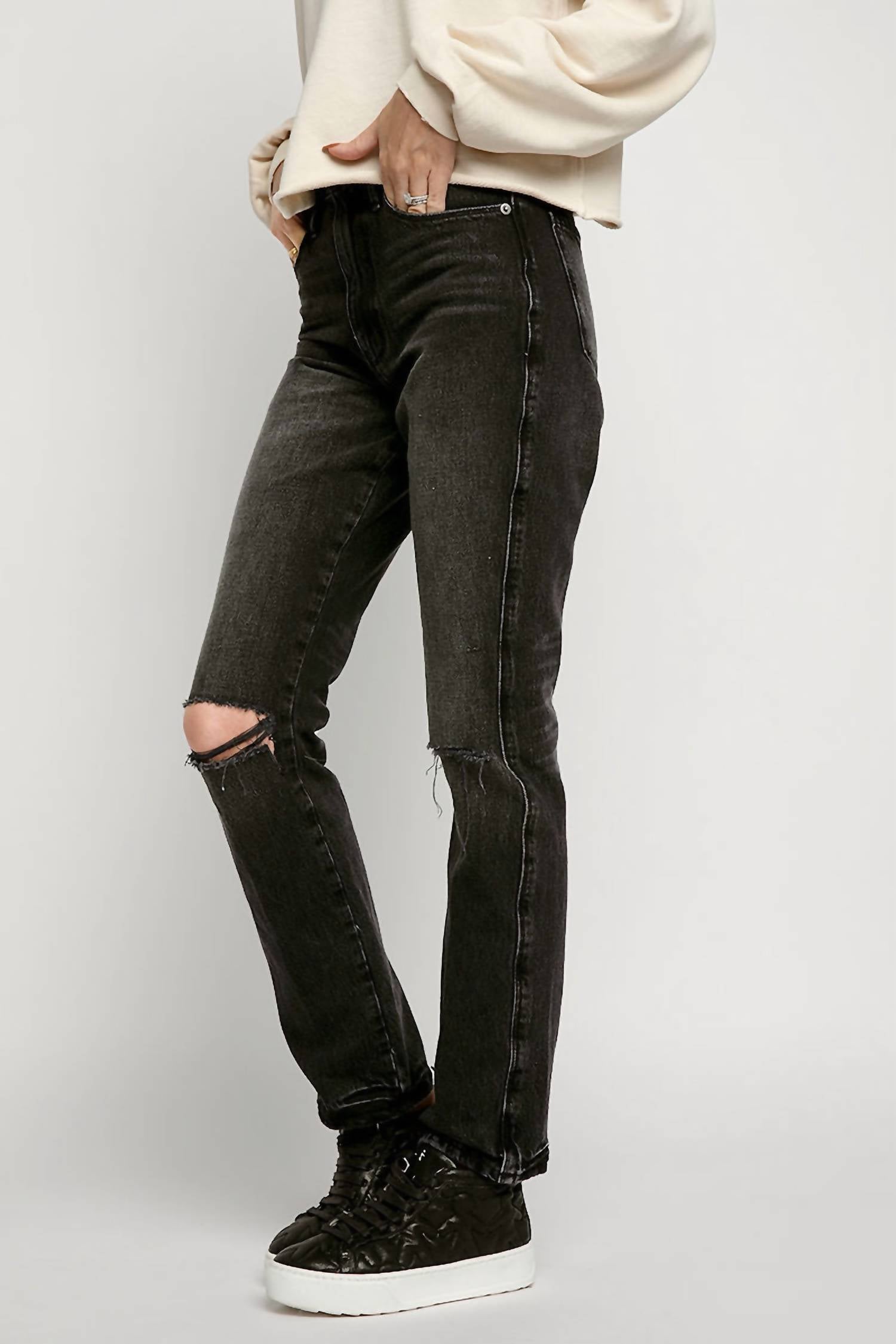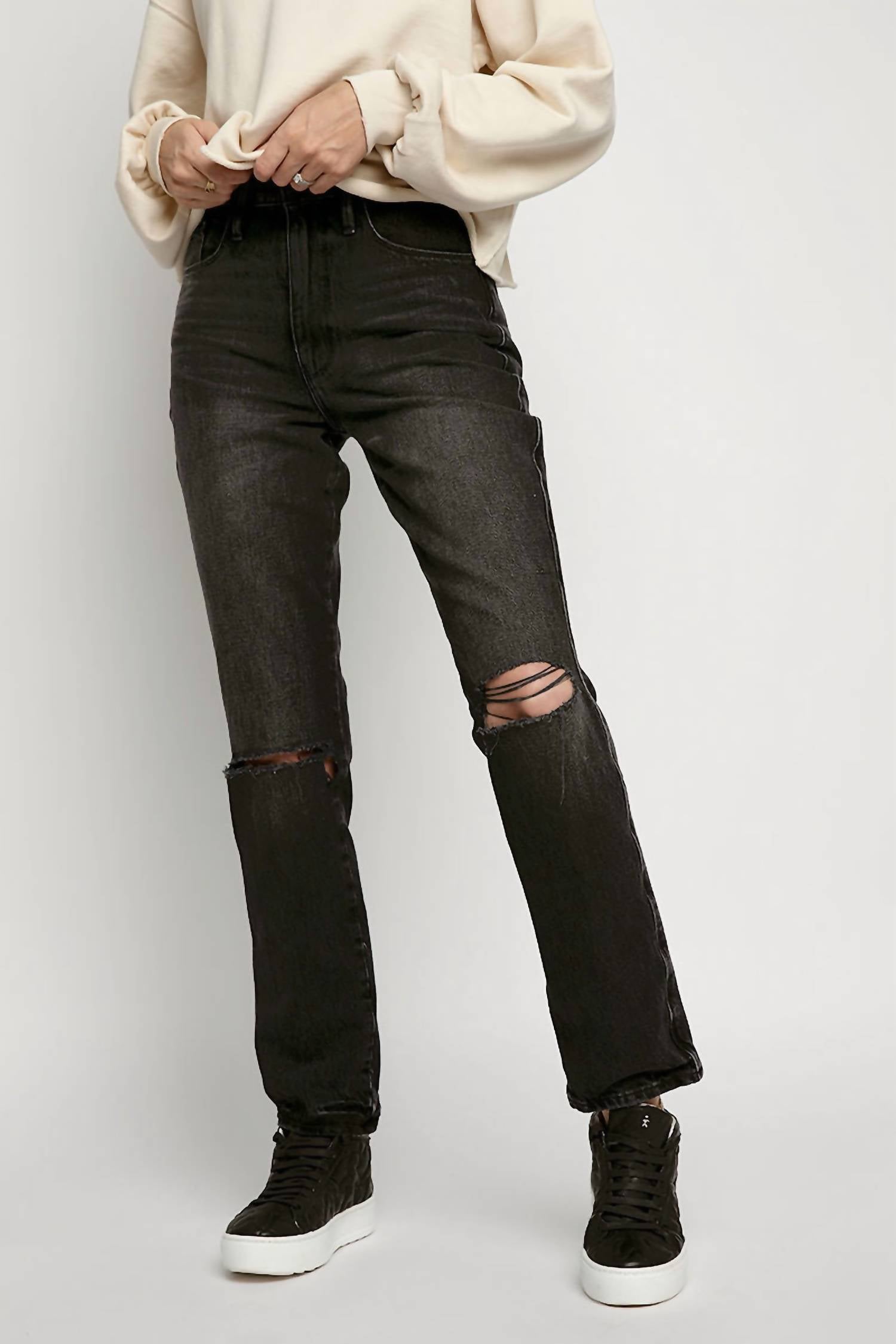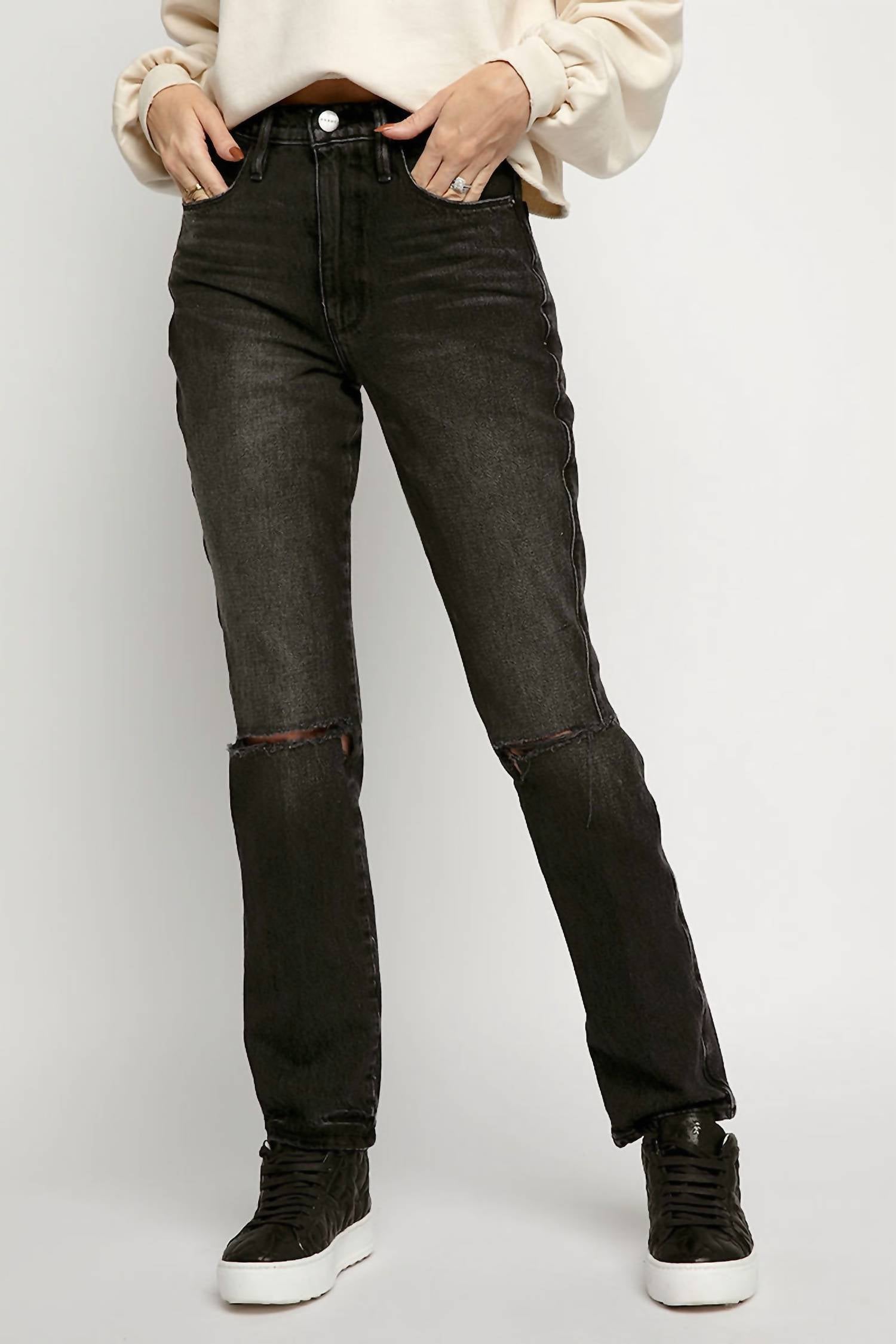 Pair these straight leg jeans with flats, sandals or even heels! You can't go wrong. Discover the FRAME Le Sylvie Jean in Wilkinson Rips, a fashion staple with a high-rise waist that effortlessly contours your figure. These straight-leg jeans are crafted from a sustainable black denim blend consisting of 99% cotton and 1% elastane, ensuring both comfort and style. Characterized by a boot-cut silhouette and five-pocket styling, they promise a relaxed yet polished fit. Made in Mexico and available with a button closure, they are easy to care for with a simple machine wash in cold water.