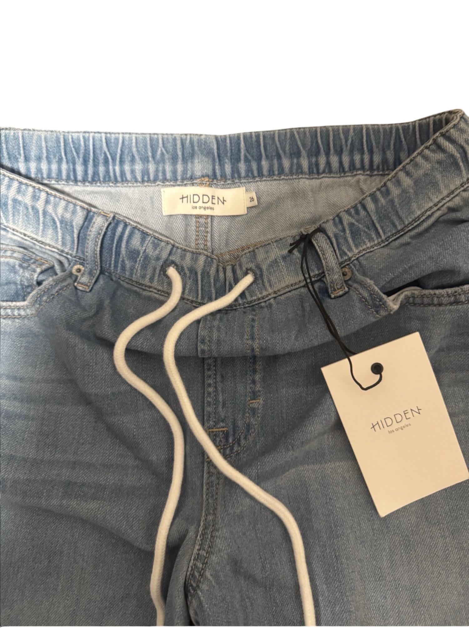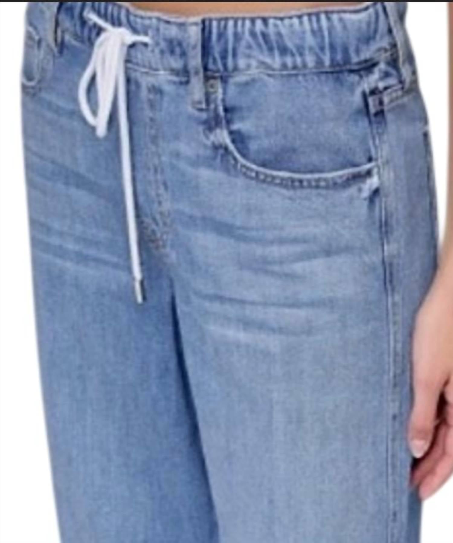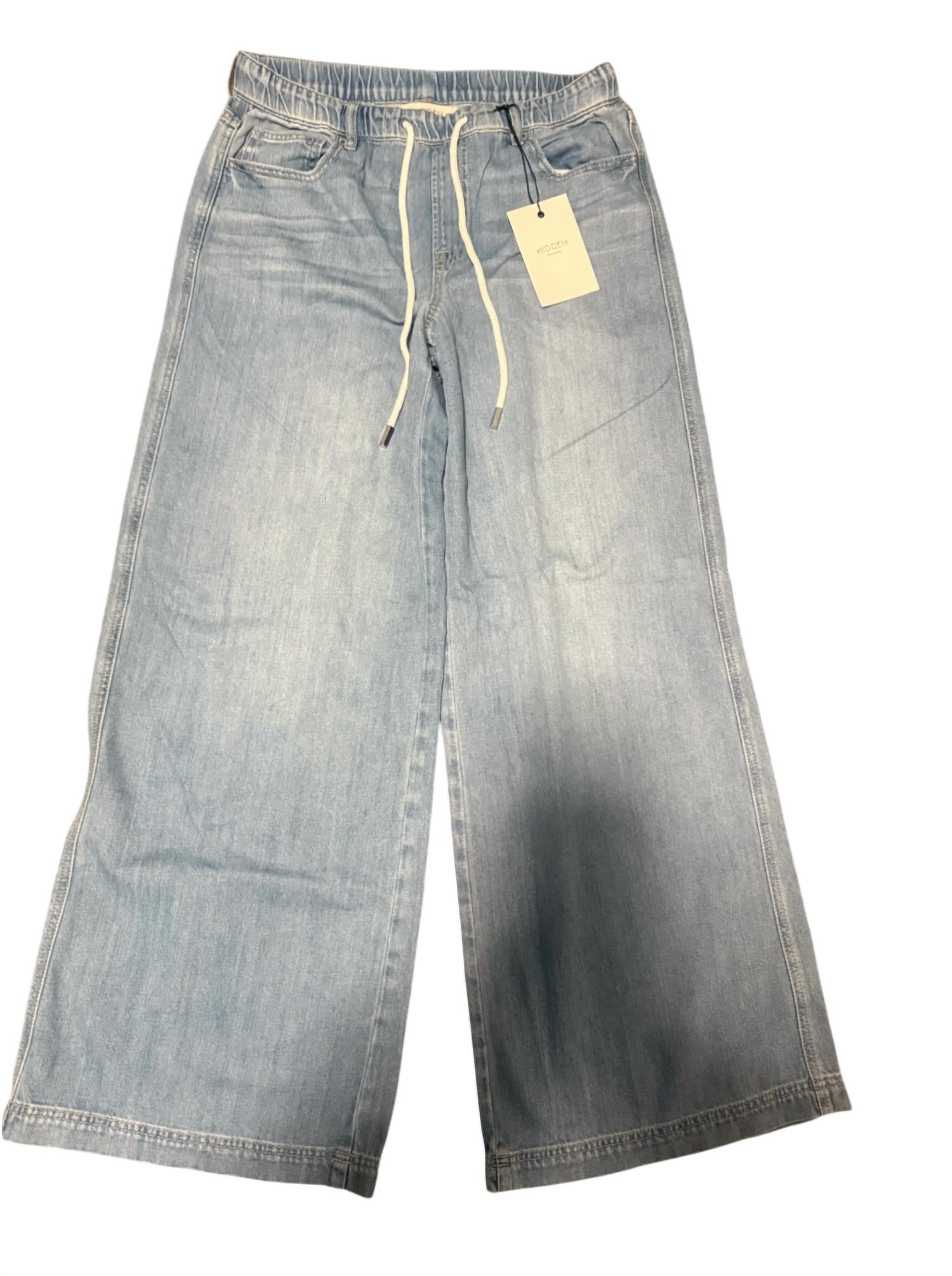 These must-have jeans are fit to perfection. The Hidden Nori Straight-Leg Jeans HD9497-LT in light wash feature a relaxed, straight-leg fit with an elastic waistband and a white drawstring for adjustable comfort. They have a classic five-pocket design and a casual, easygoing style. The jeans are made from denim with a soft, worn-in look, suitable for everyday wear.