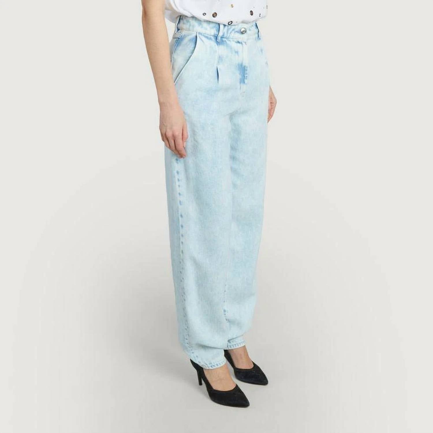This classic straight leg jean has a perfect fit and goes with just about everything. Elevate your denim collection with the Elide Jean by IRO, featuring a relaxed fit that is both comfortable and stylish. The light blue denim is finished with a light wash for a perfect preppy spring look. This high-rise, straight-leg jeans come with a convenient zip closure and practical pockets. Care instructions include a gentle machine wash to keep them looking fresh.