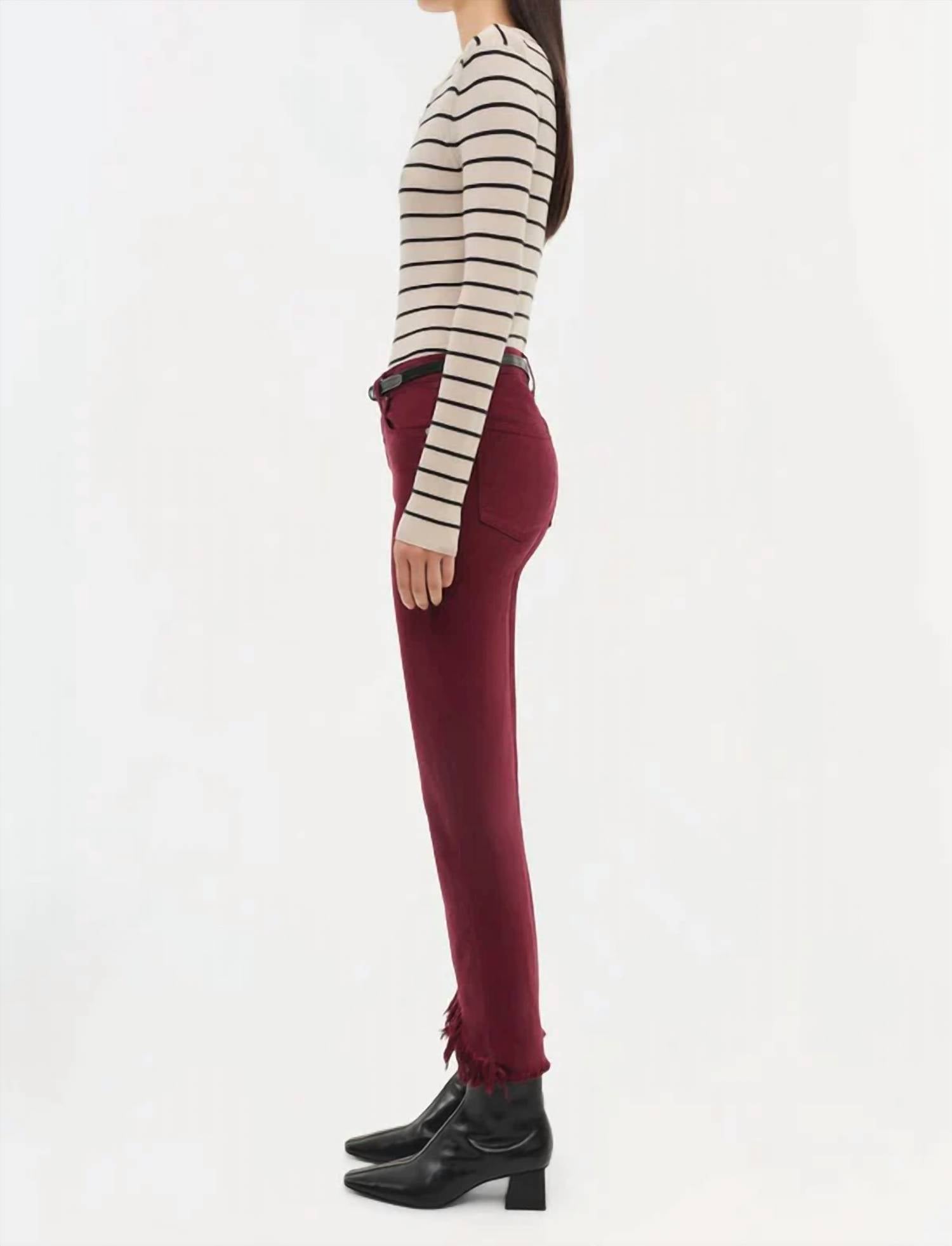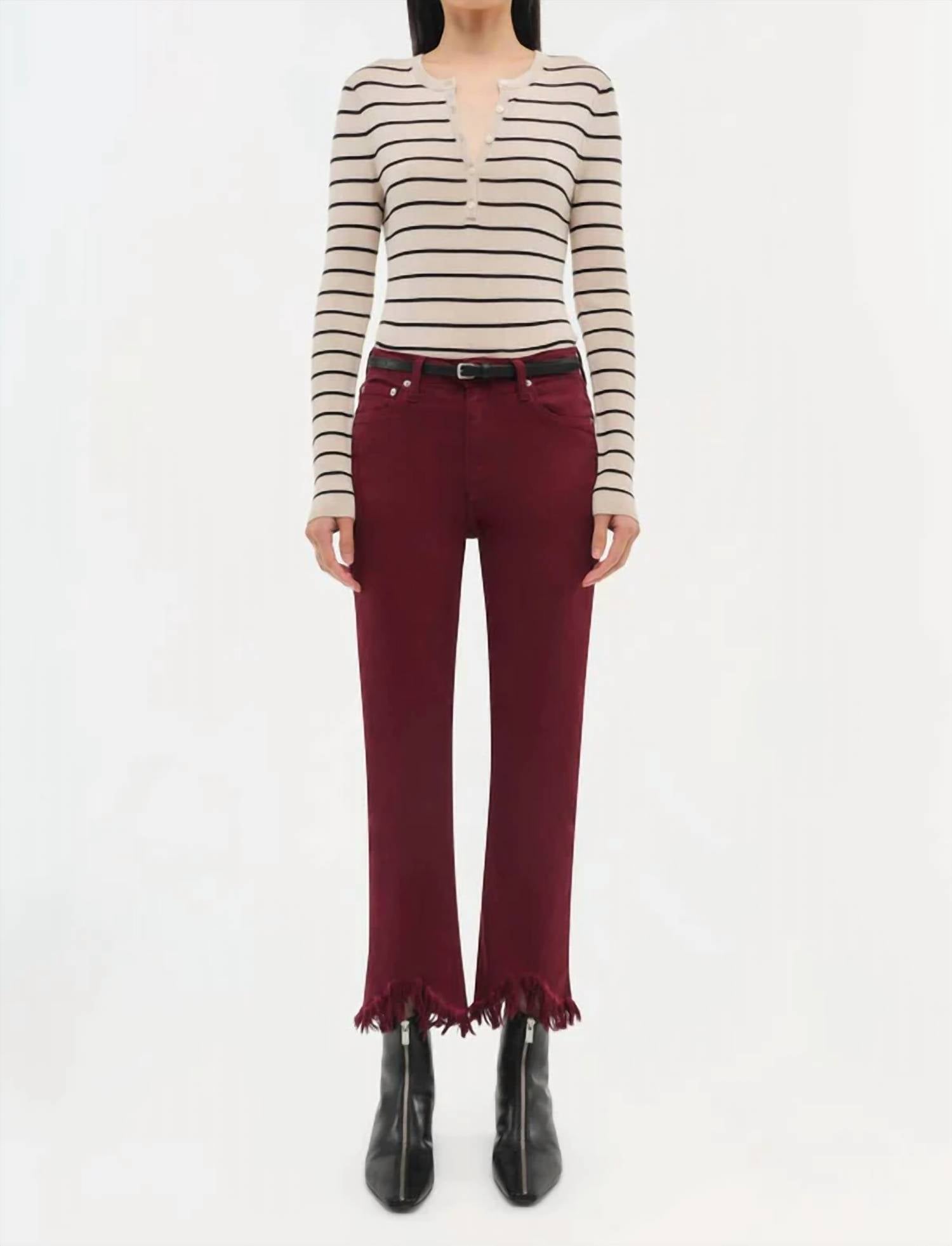 These must-have jeans are fit to perfection. These high-rise straight pants have a tailored fit with a slight flare at the hem. They feature a structured waistband and a sleek silhouette. Made of 97% cotton and 3% elastane. Care: machine wash cold or dry clean.