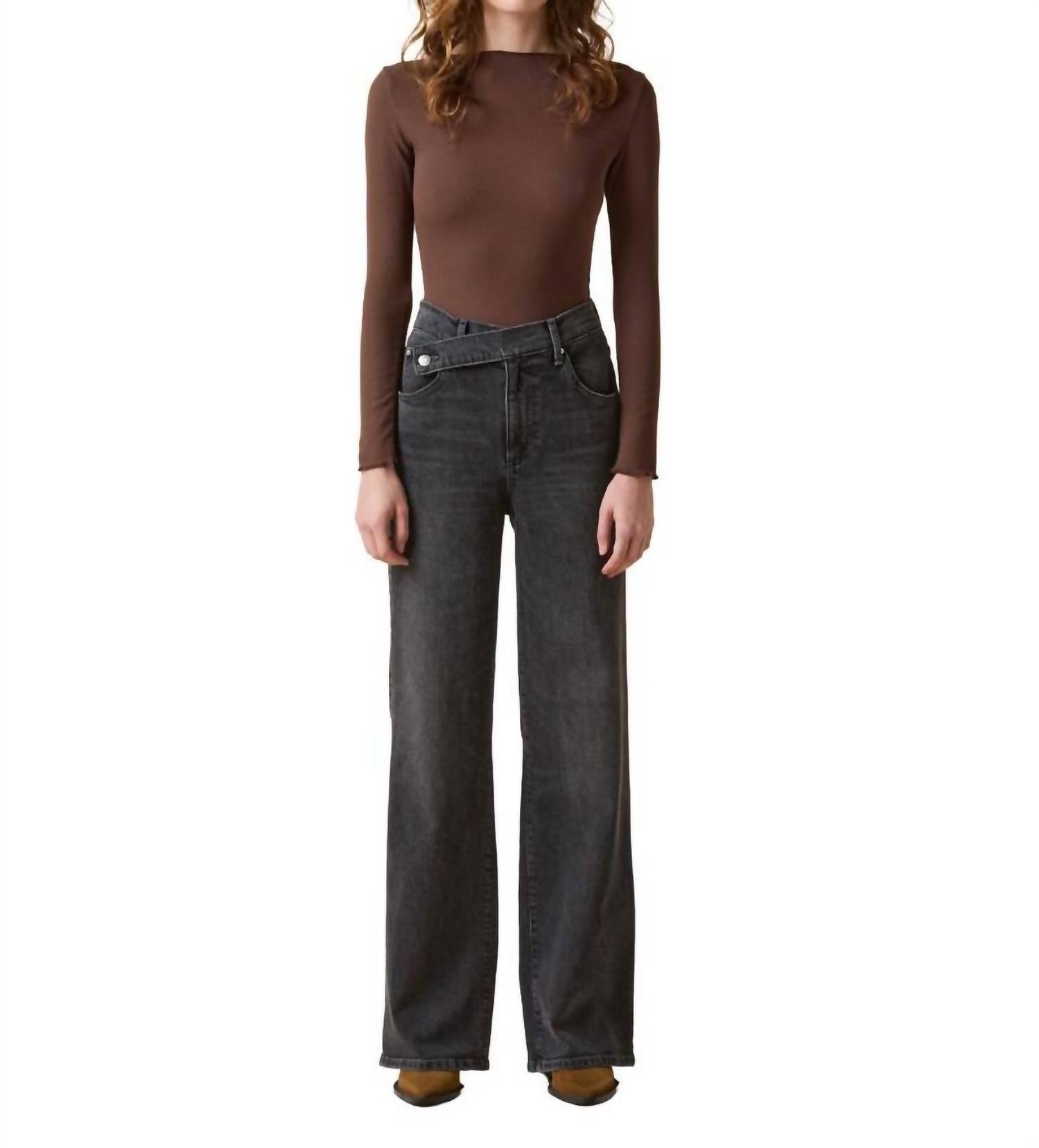 This classic straight leg jean has a perfect fit and goes with just about everything. Introducing the Cinched Waist Slim Wide Leg Jeans by Le Jean, crafted in a solid dark grey with a straight leg style that defines the season's streetwear trends. These women’s jeans, made from 94% cotton, 5% EME, 1% elastane, offer a regular fit with a universally flattering high rise of 11 inches and a 32-inch inseam. The crossover button at the waist and concealed zipper fastening provide a sleek finish. Care for these jeans is easy with machine wash cold and tumble dry instructions, making them perfect for spring travel occasions.